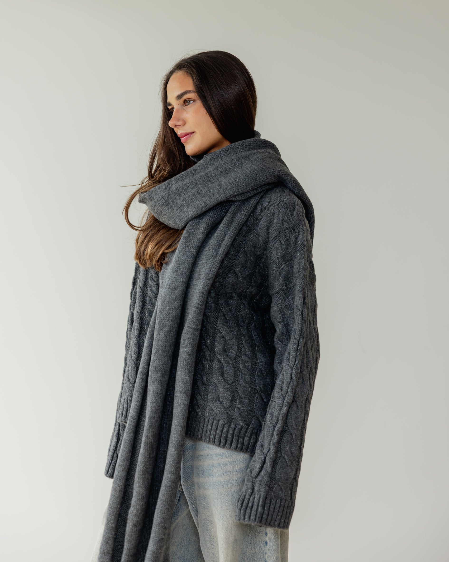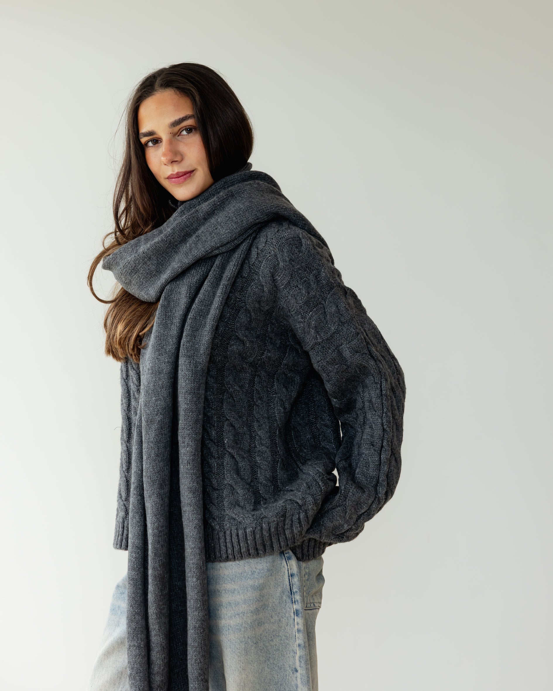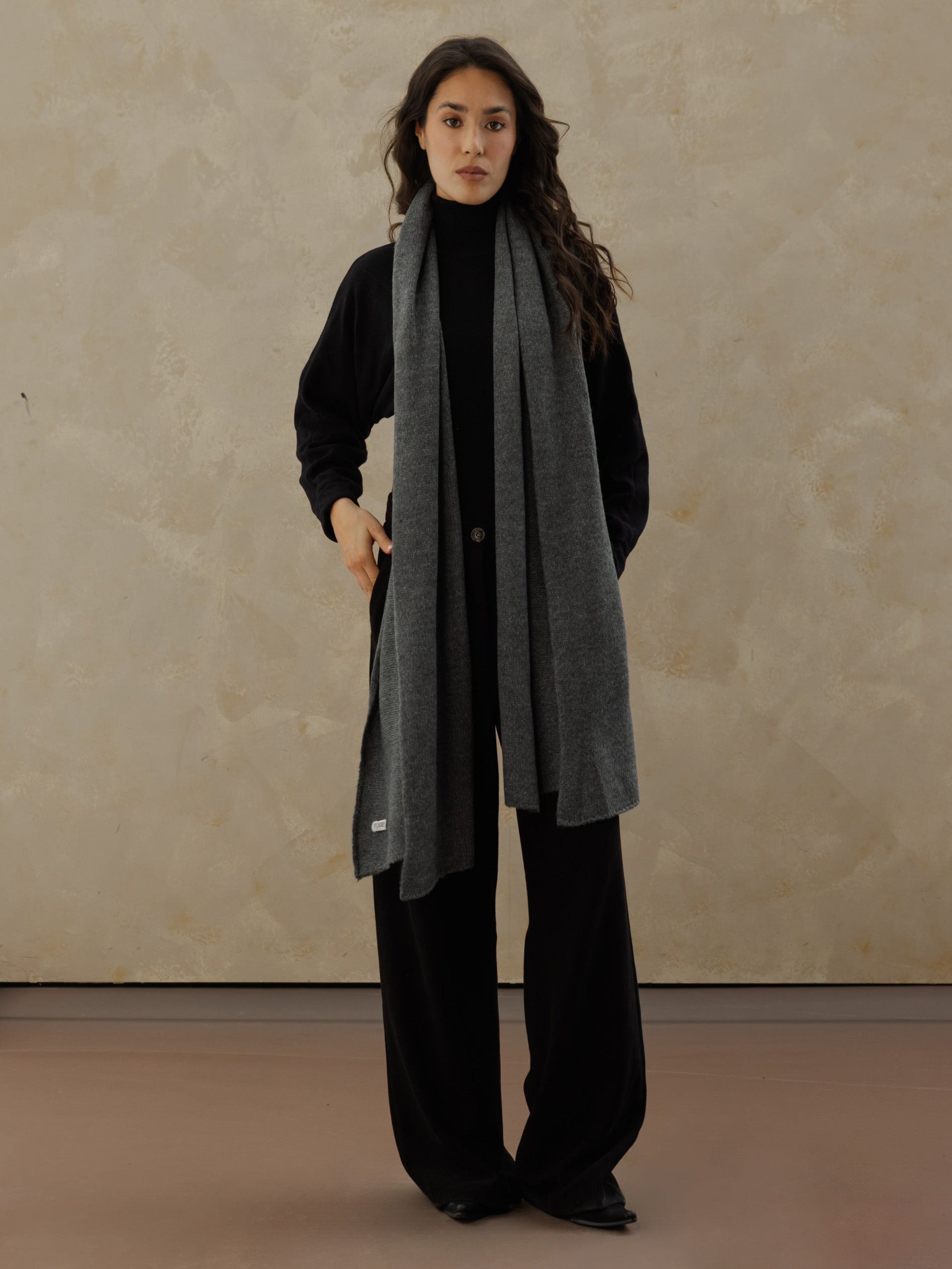 Fine Knit Scarf - Charcoal