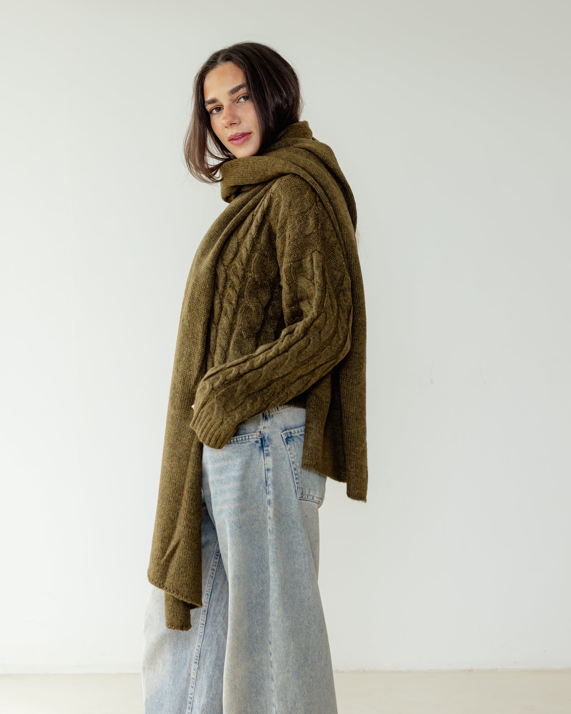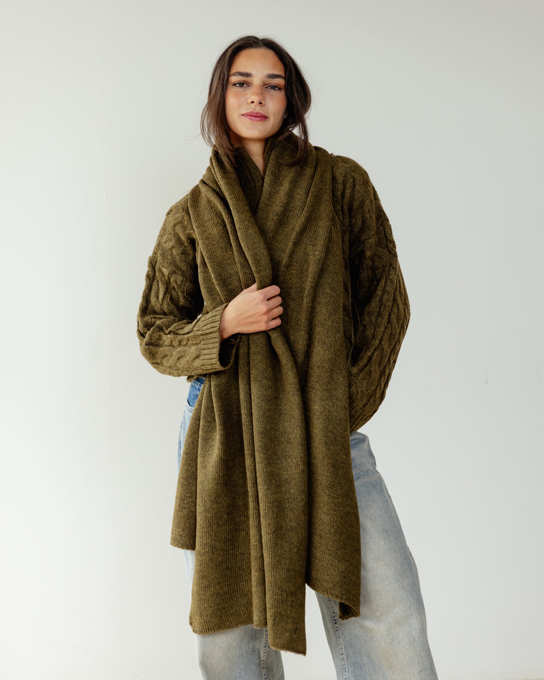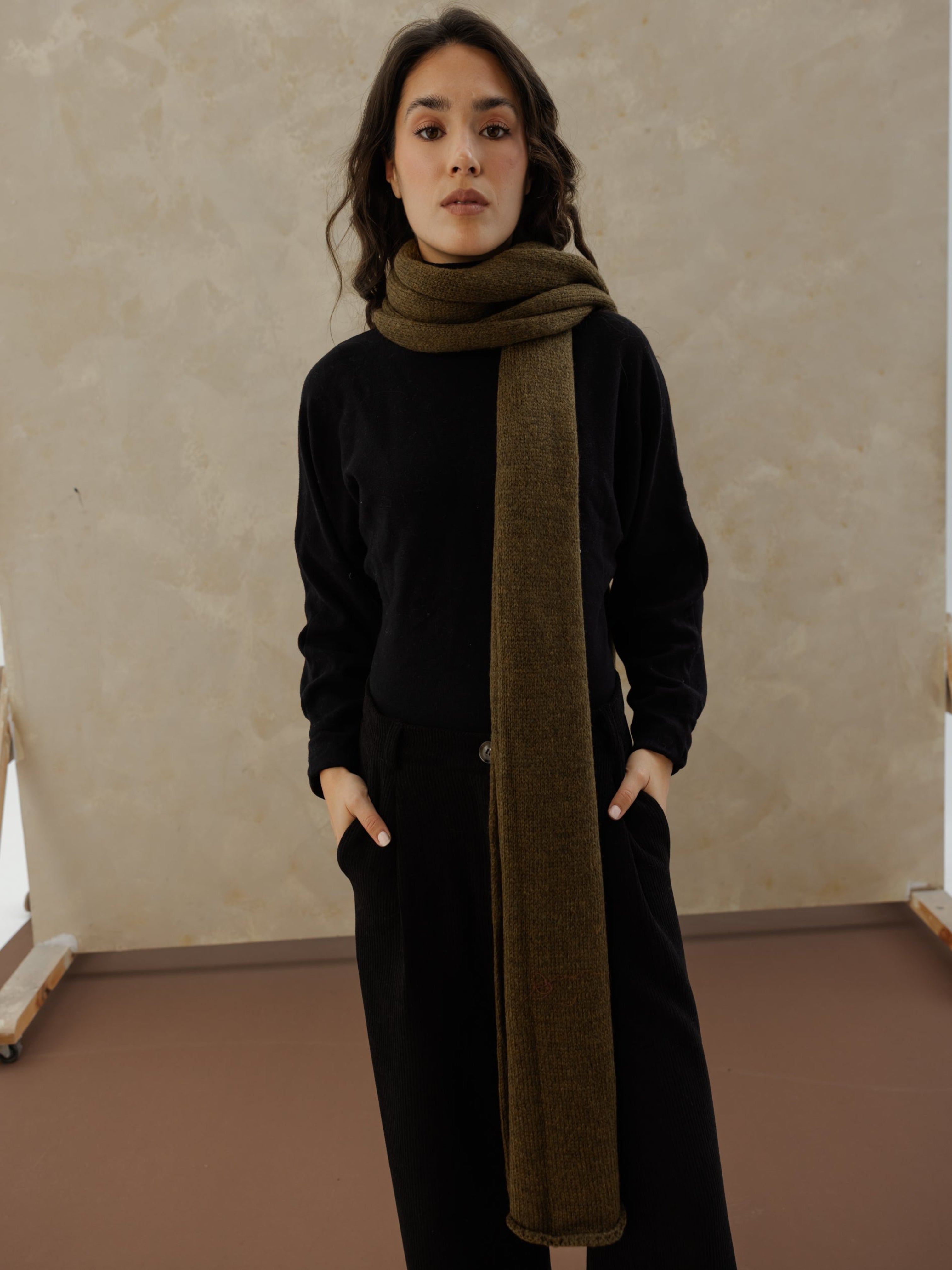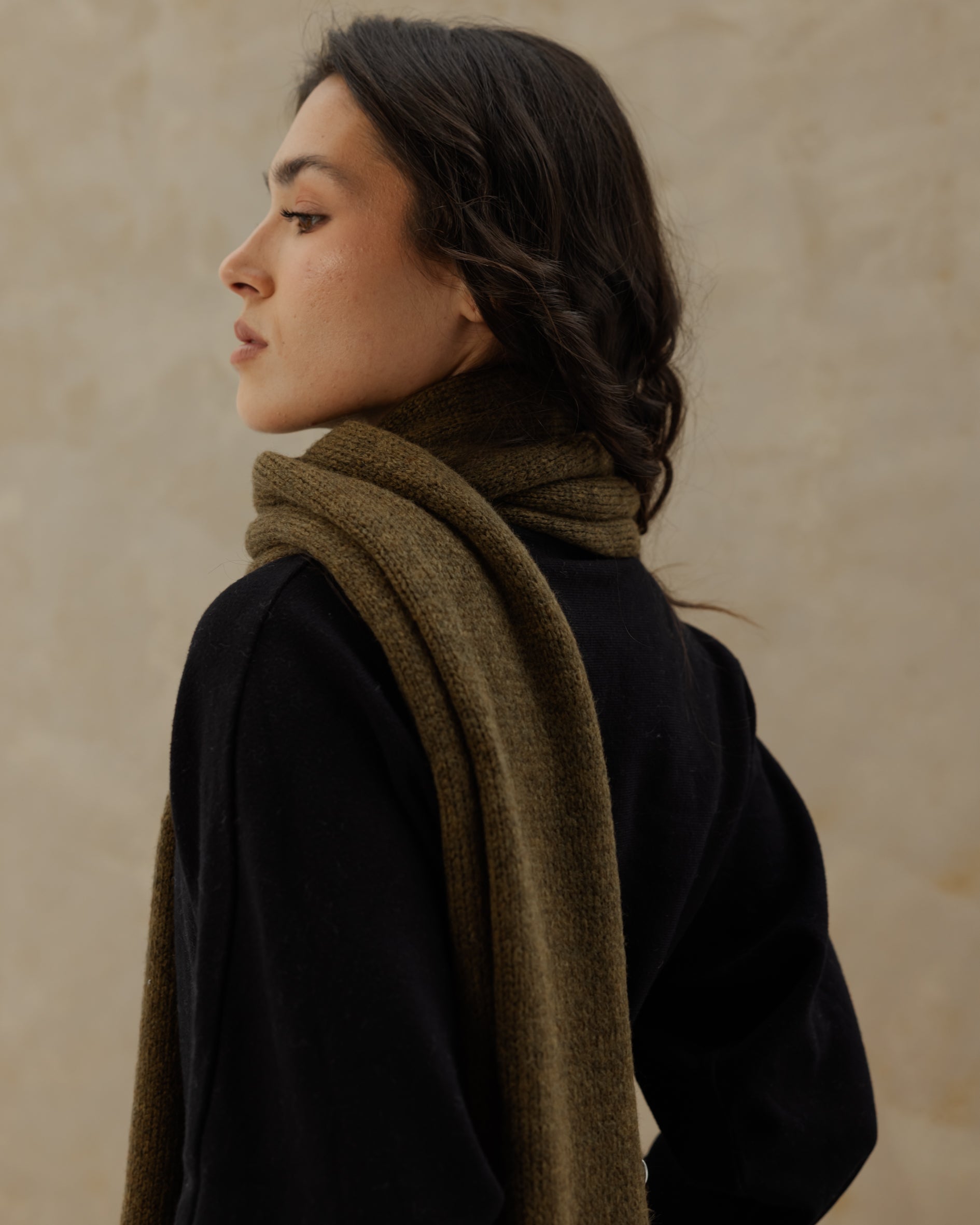 Fine Knit Scarf - Olive