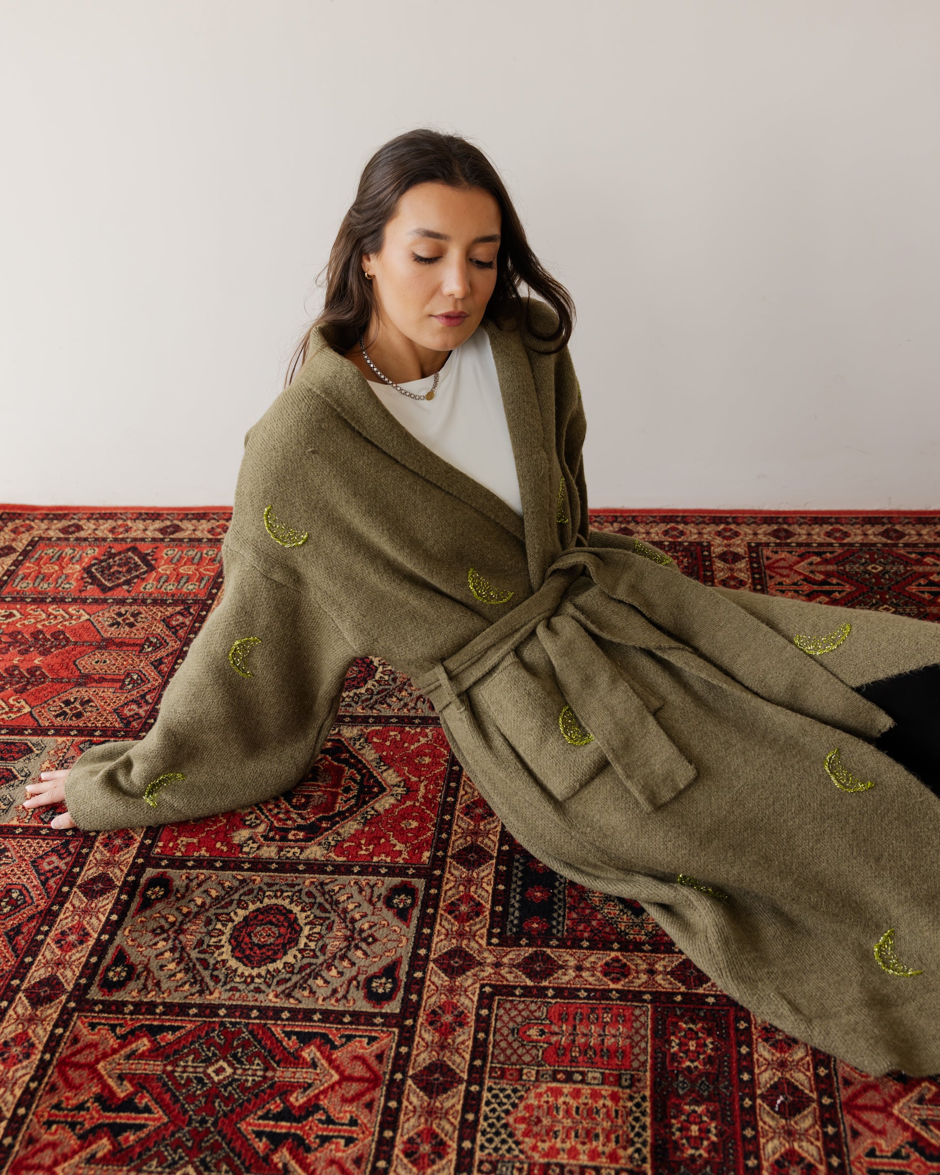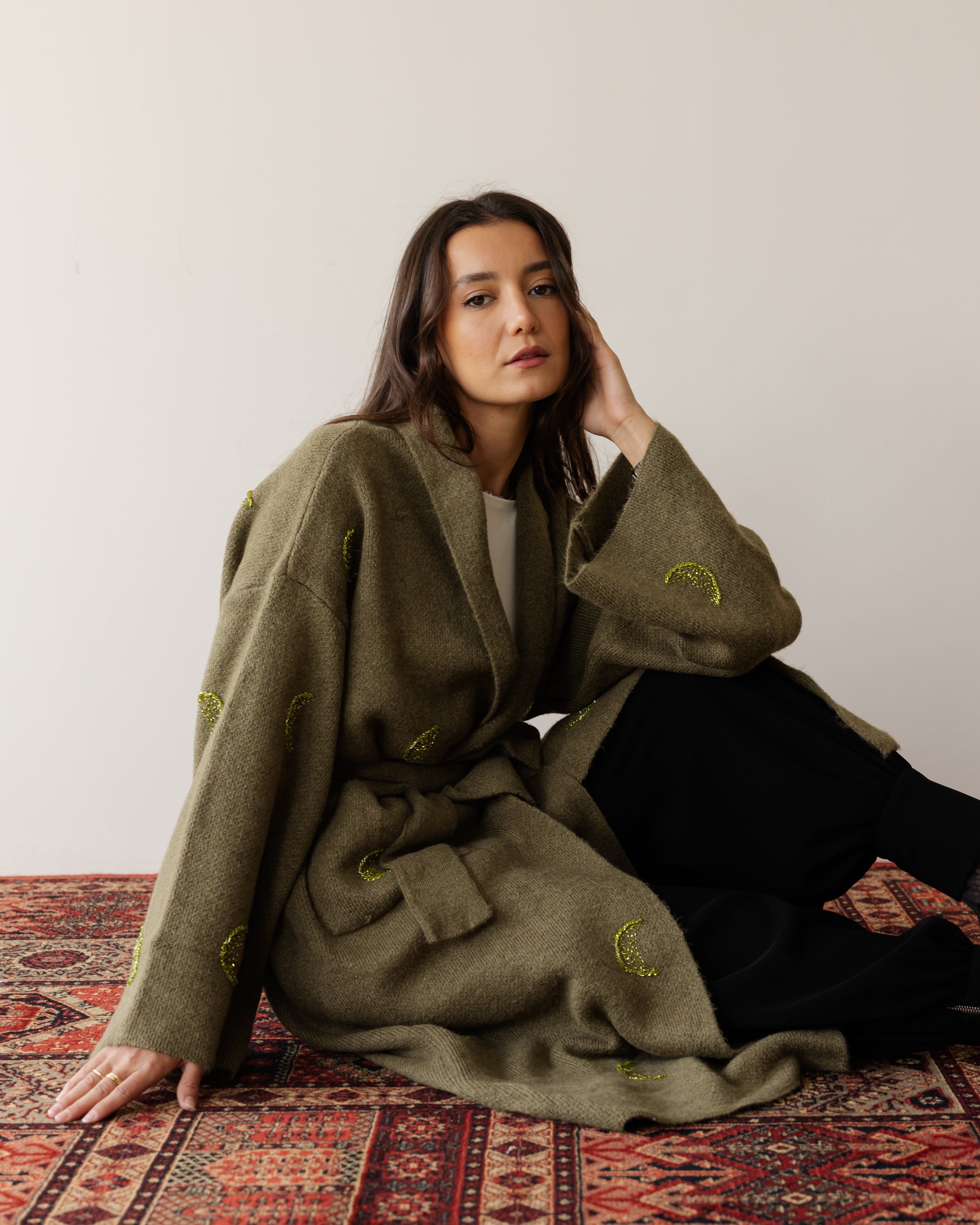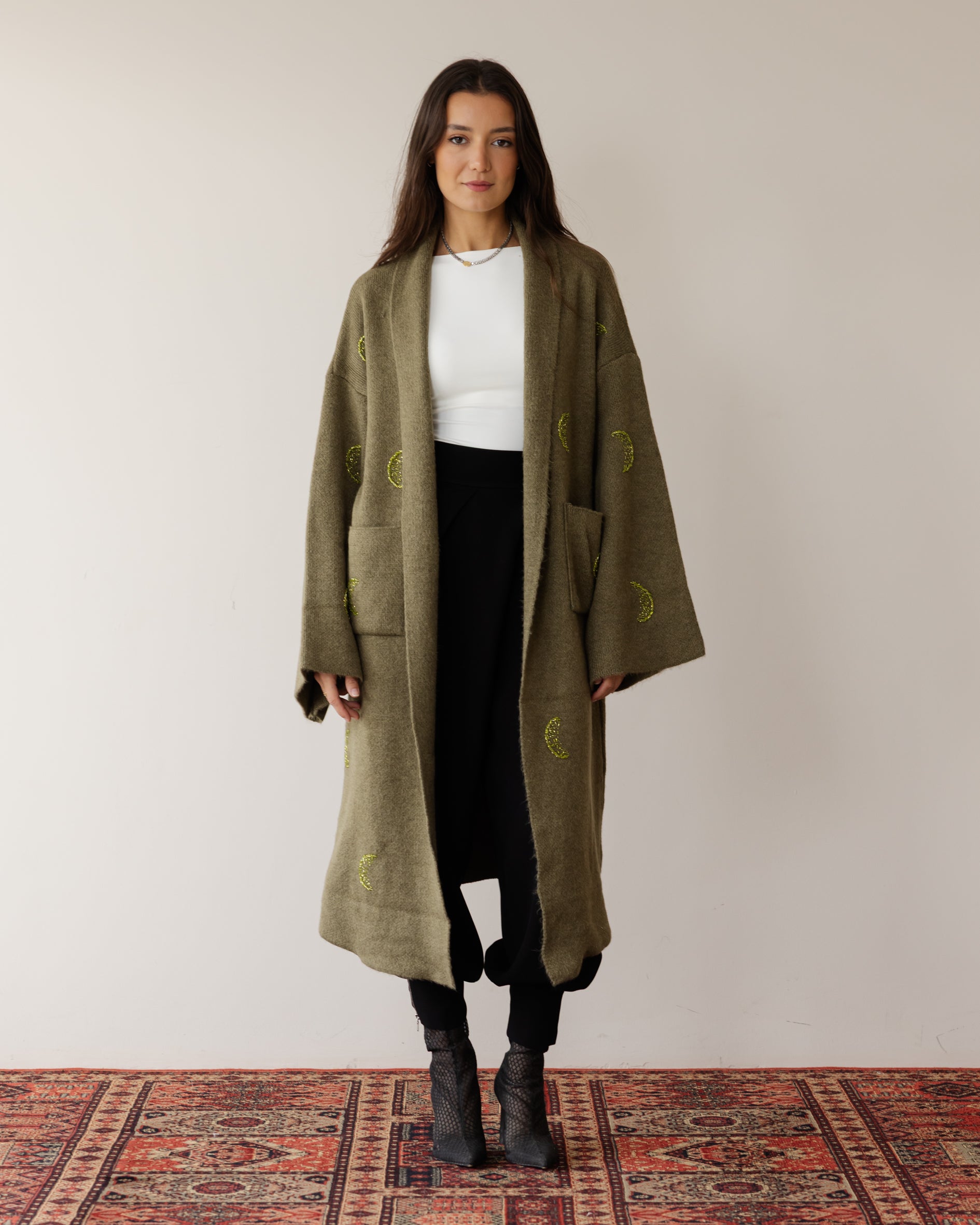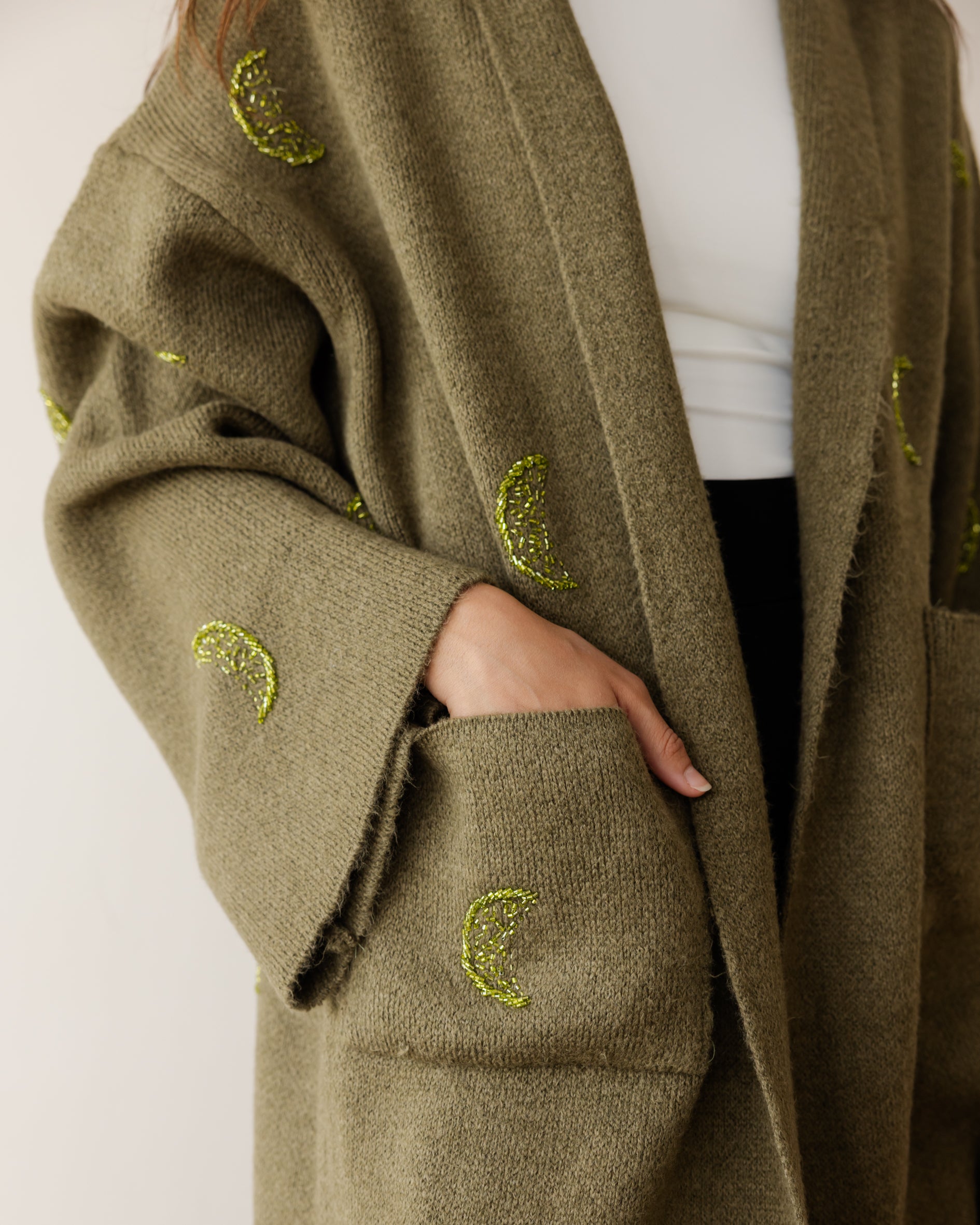Crescent Crafted Knit Cardi - Olive