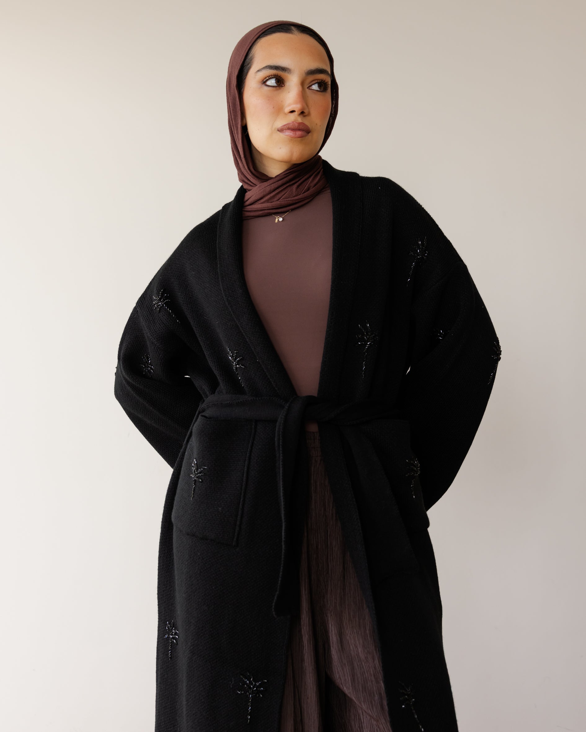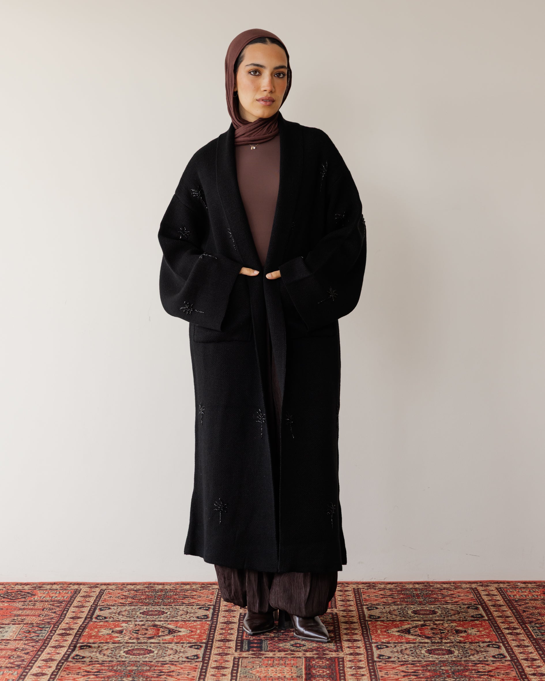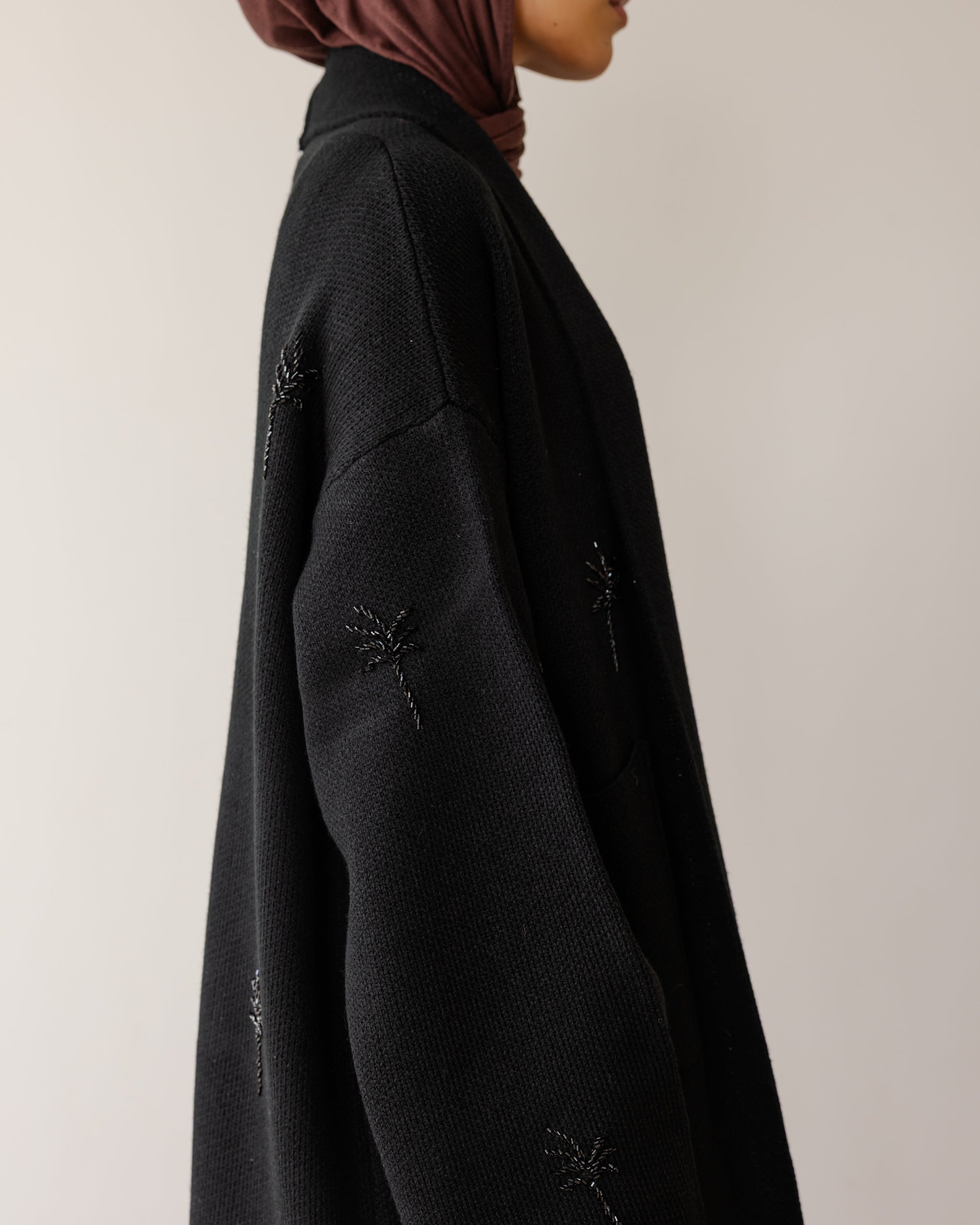 Embroidered Palm Knit Cardi - Black