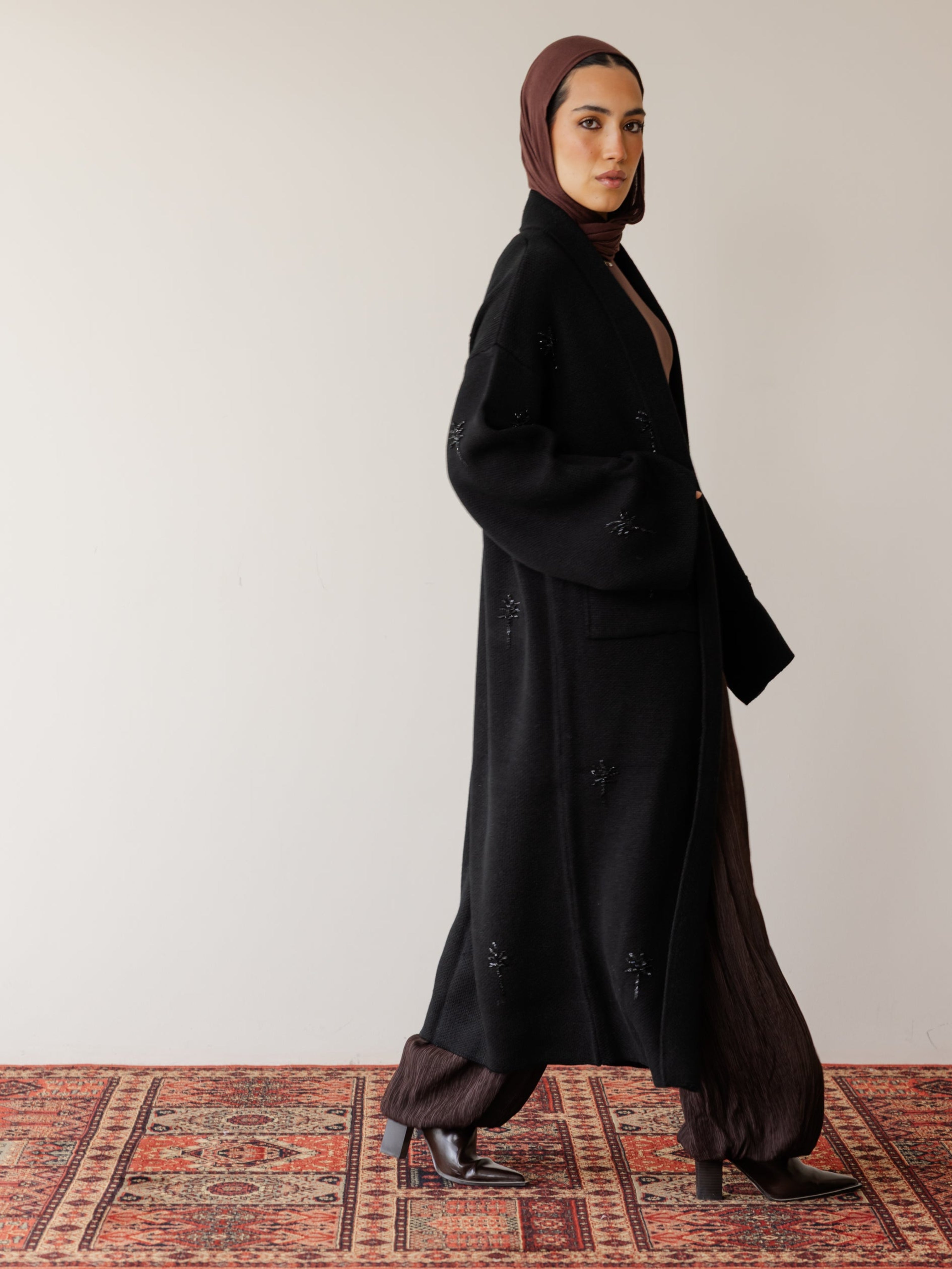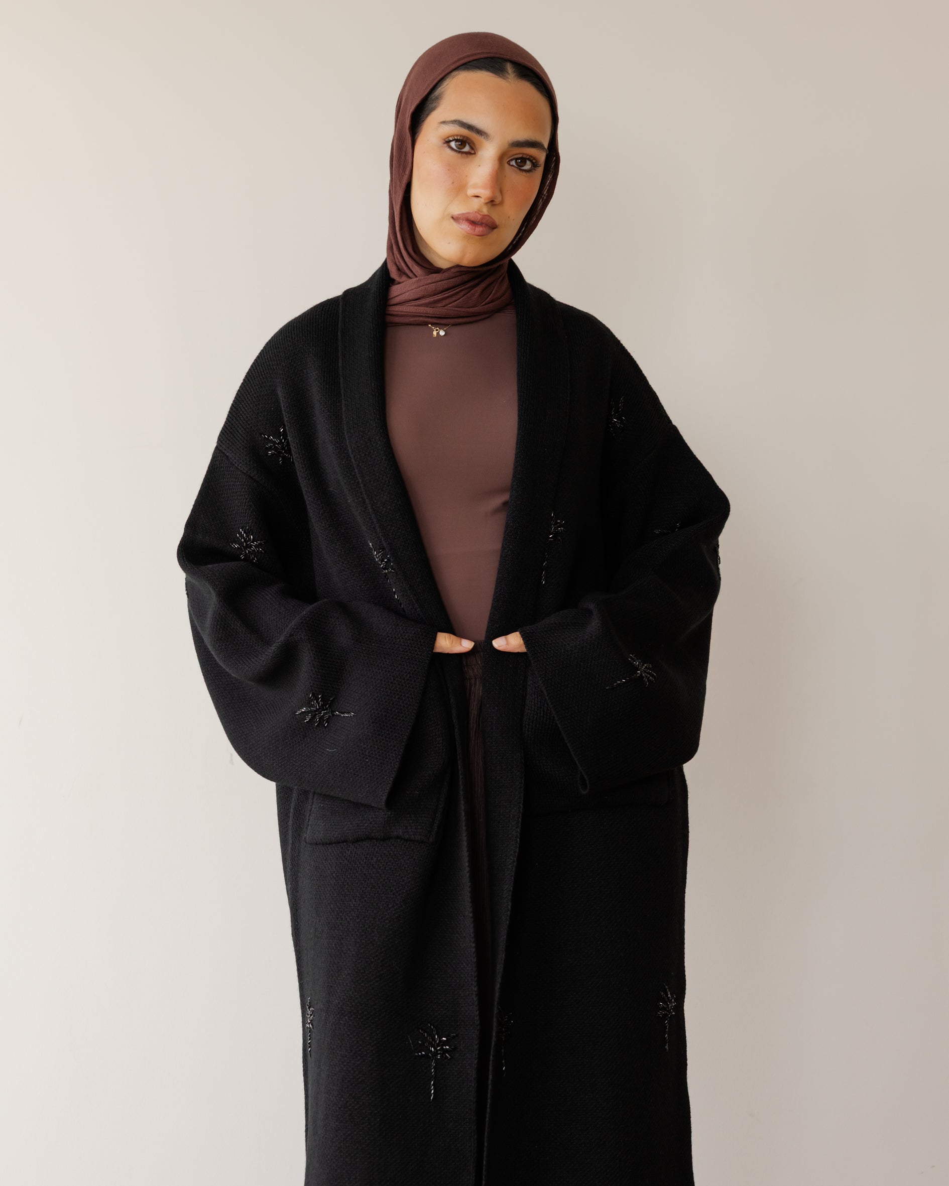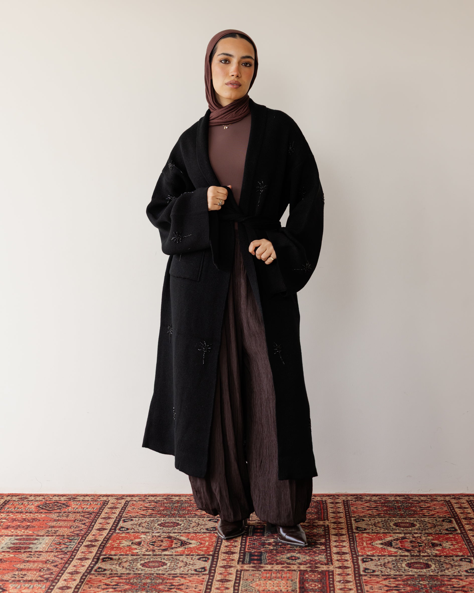 Embroidered Palm Knit Cardi - Black