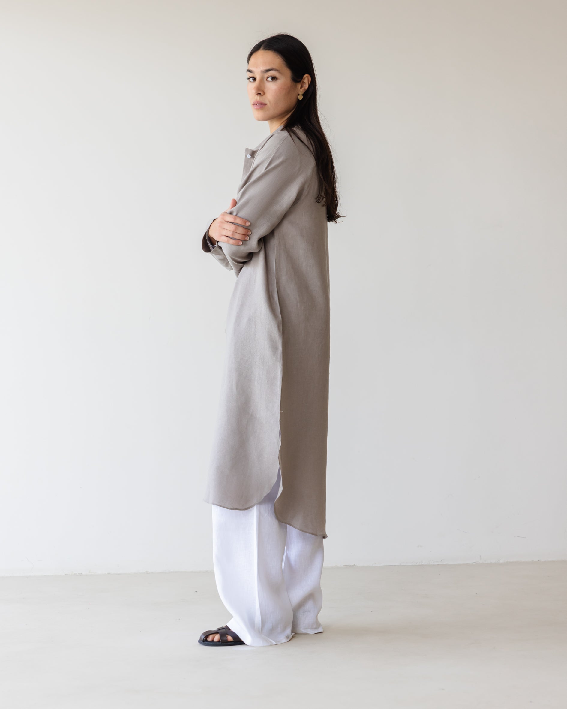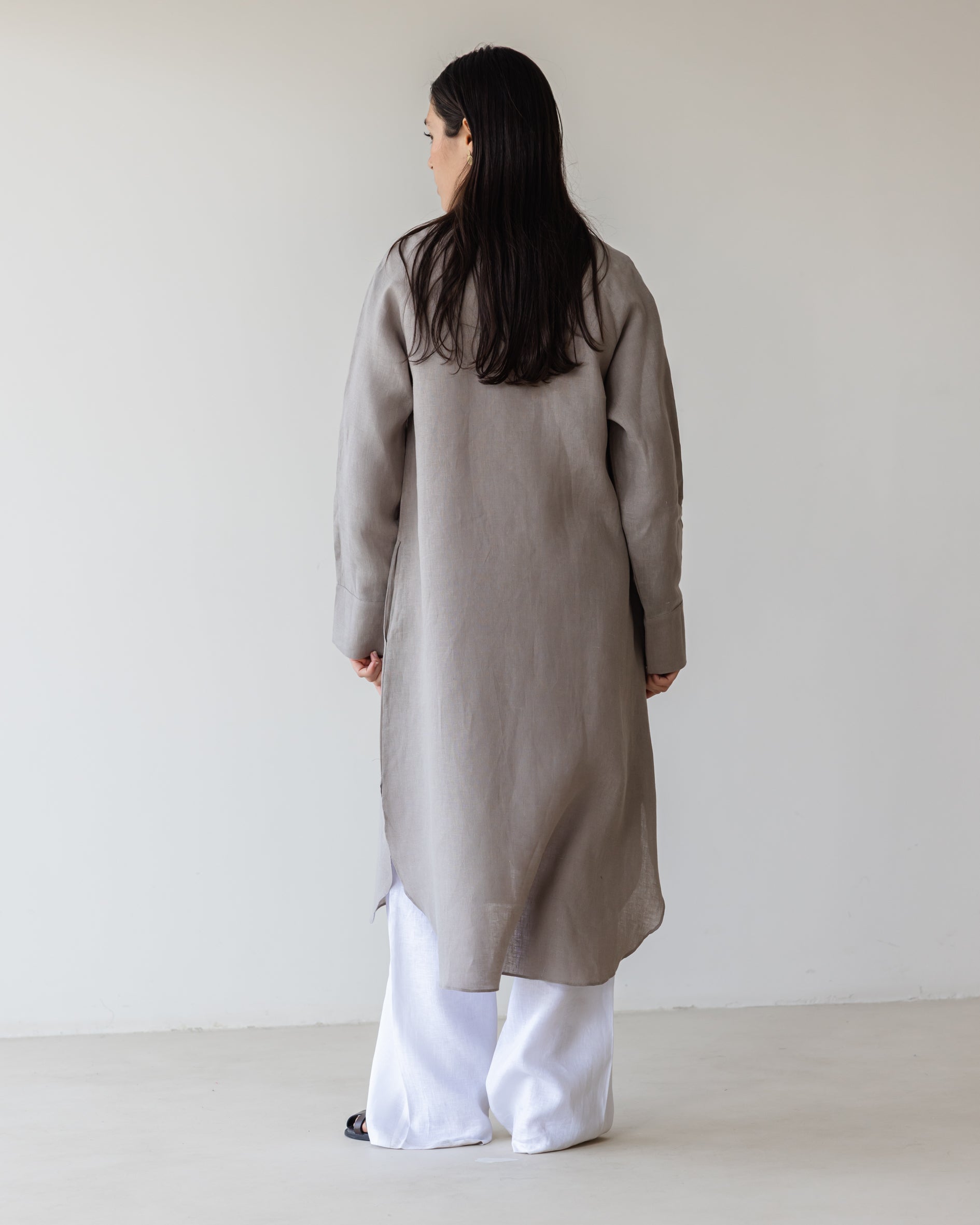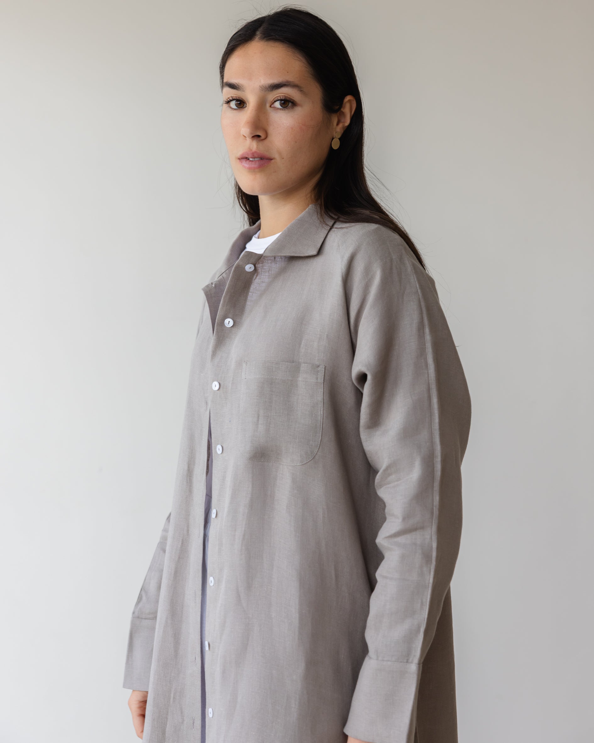 Relaxed Linen Maxi Shirt - Grey