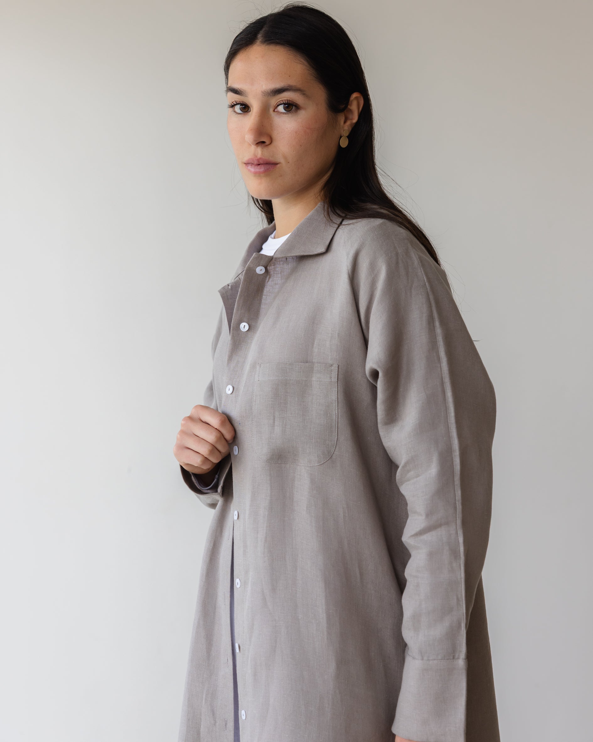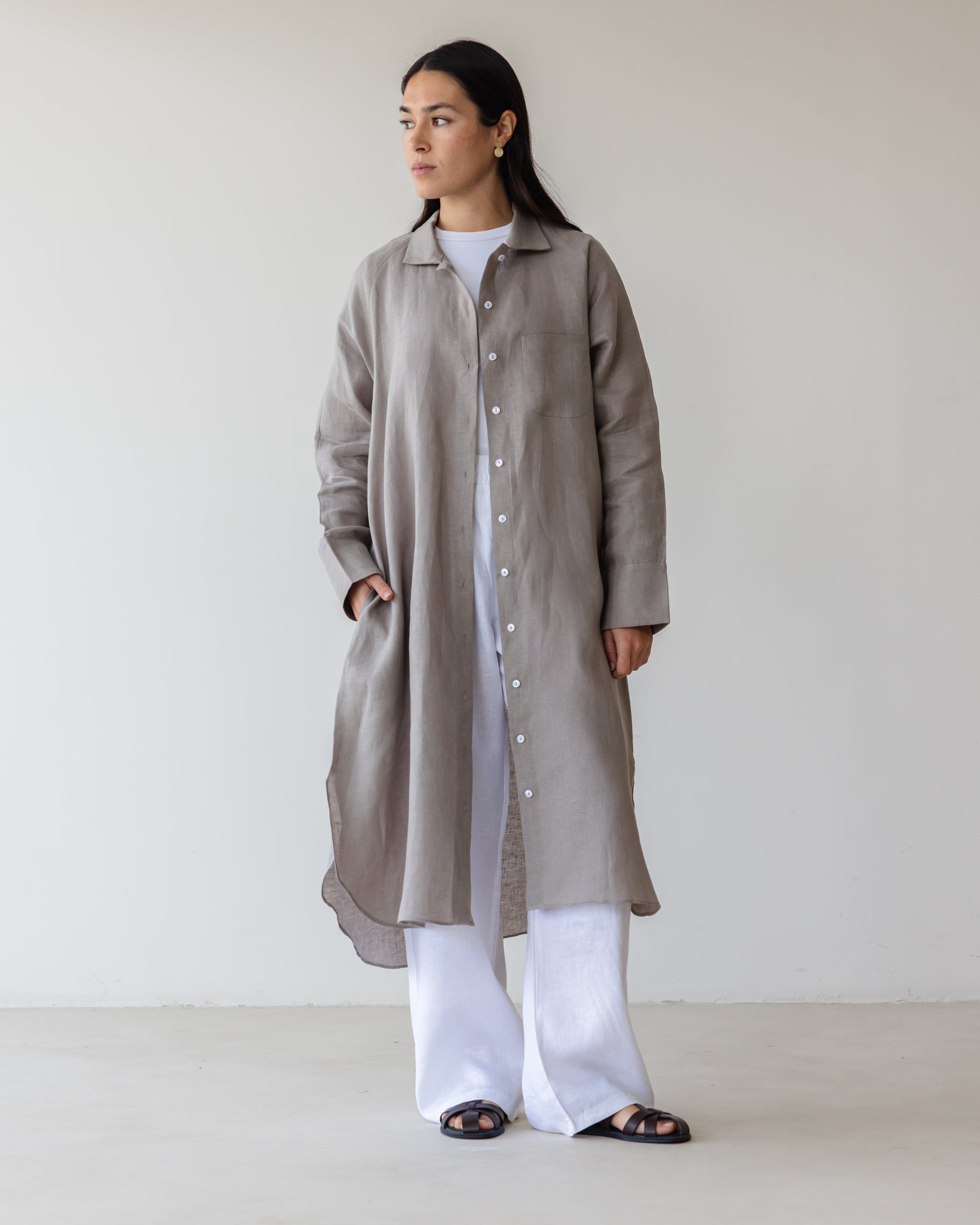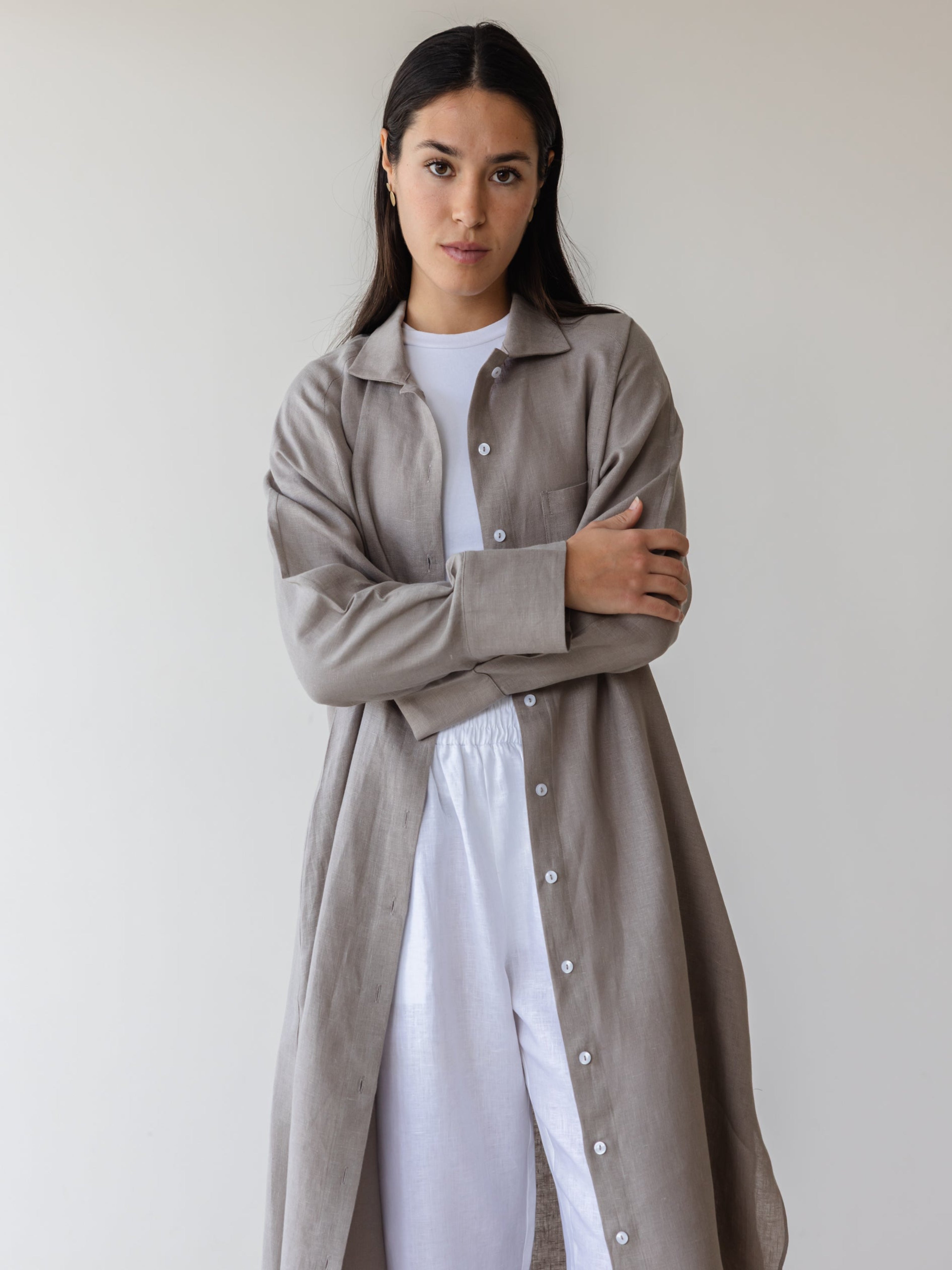 Relaxed Linen Maxi Shirt - Grey