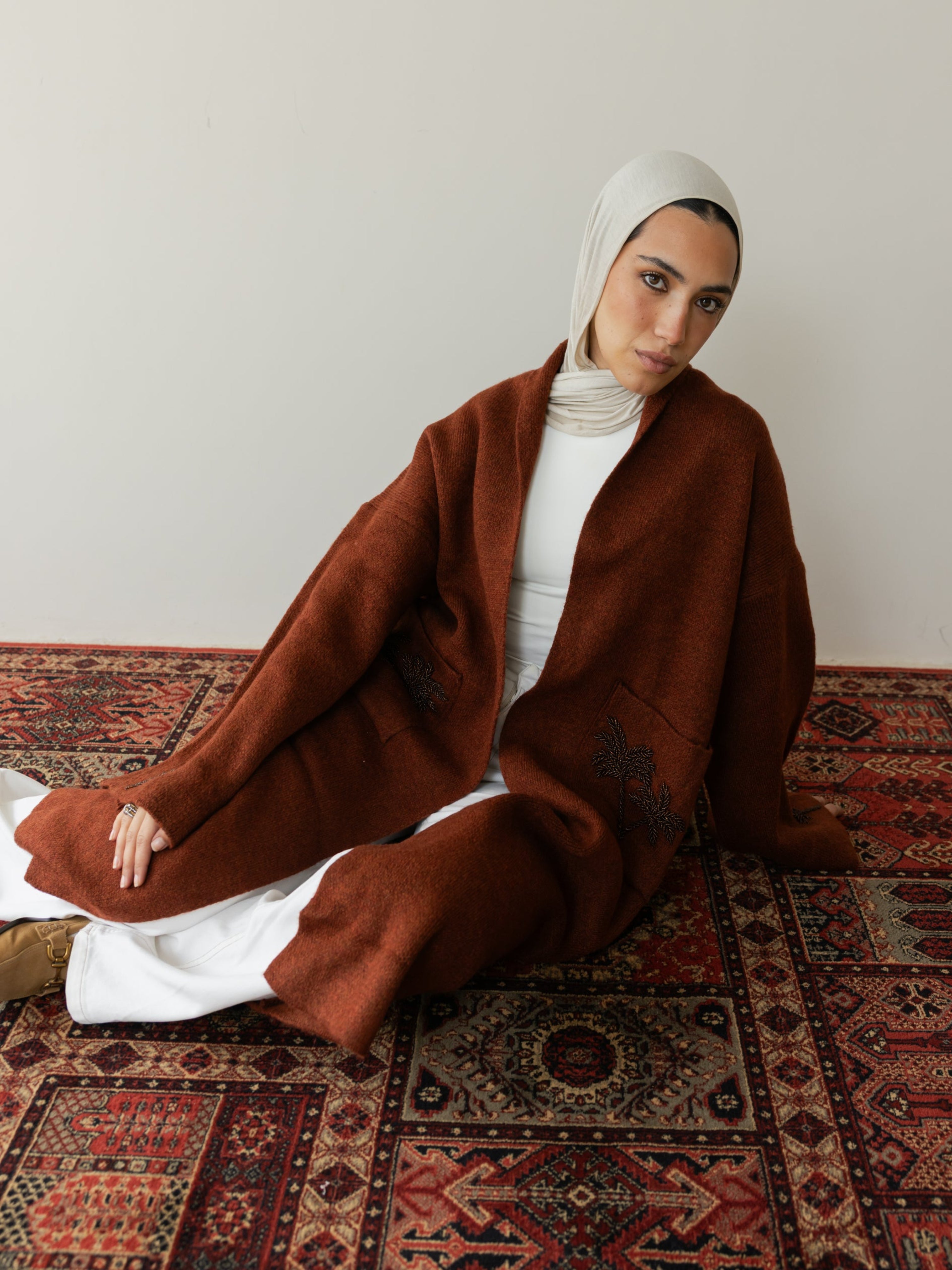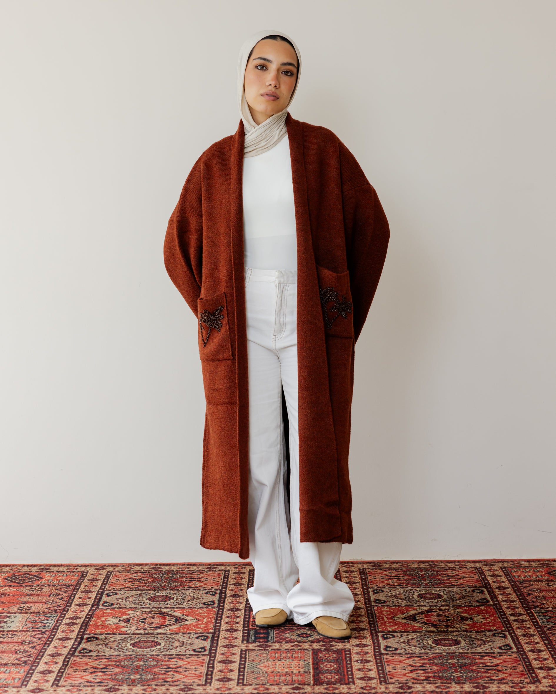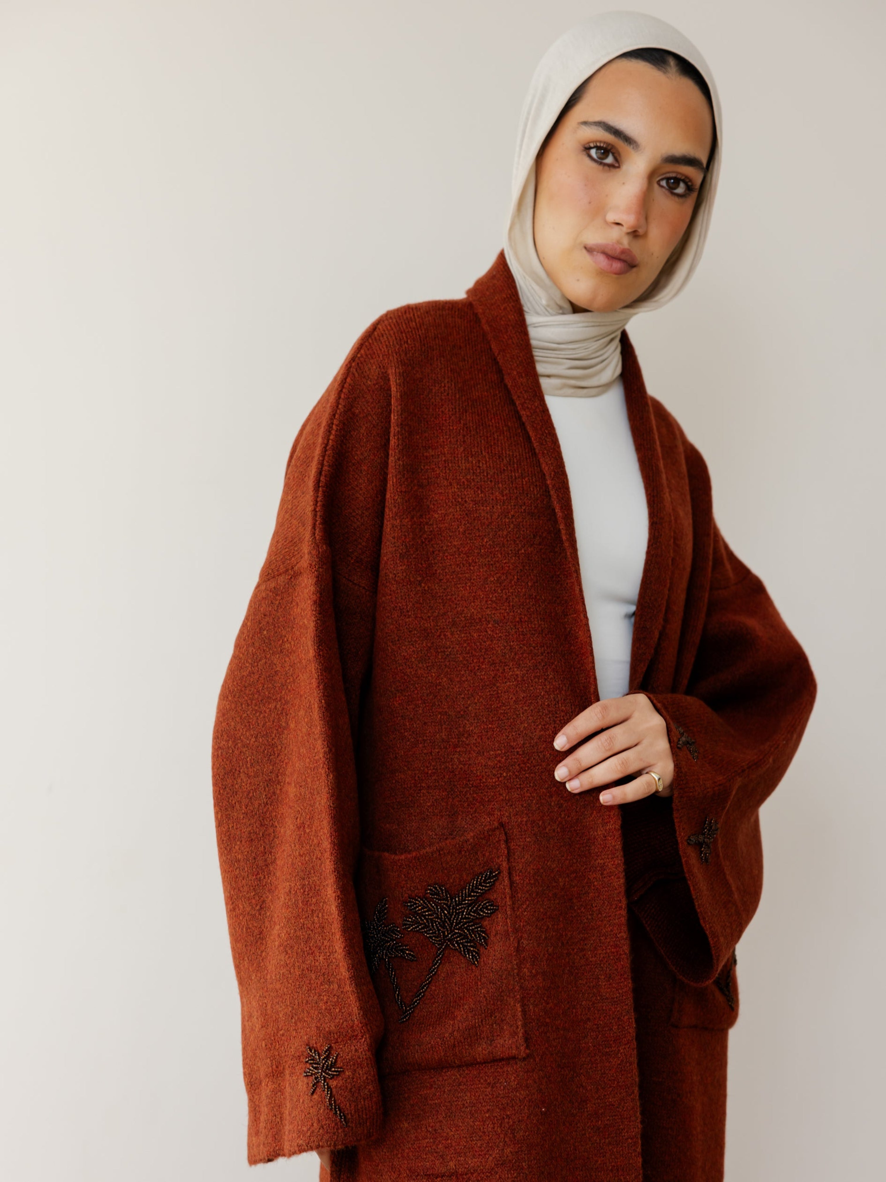 Palm Crafted Knit Cardi - Brick
