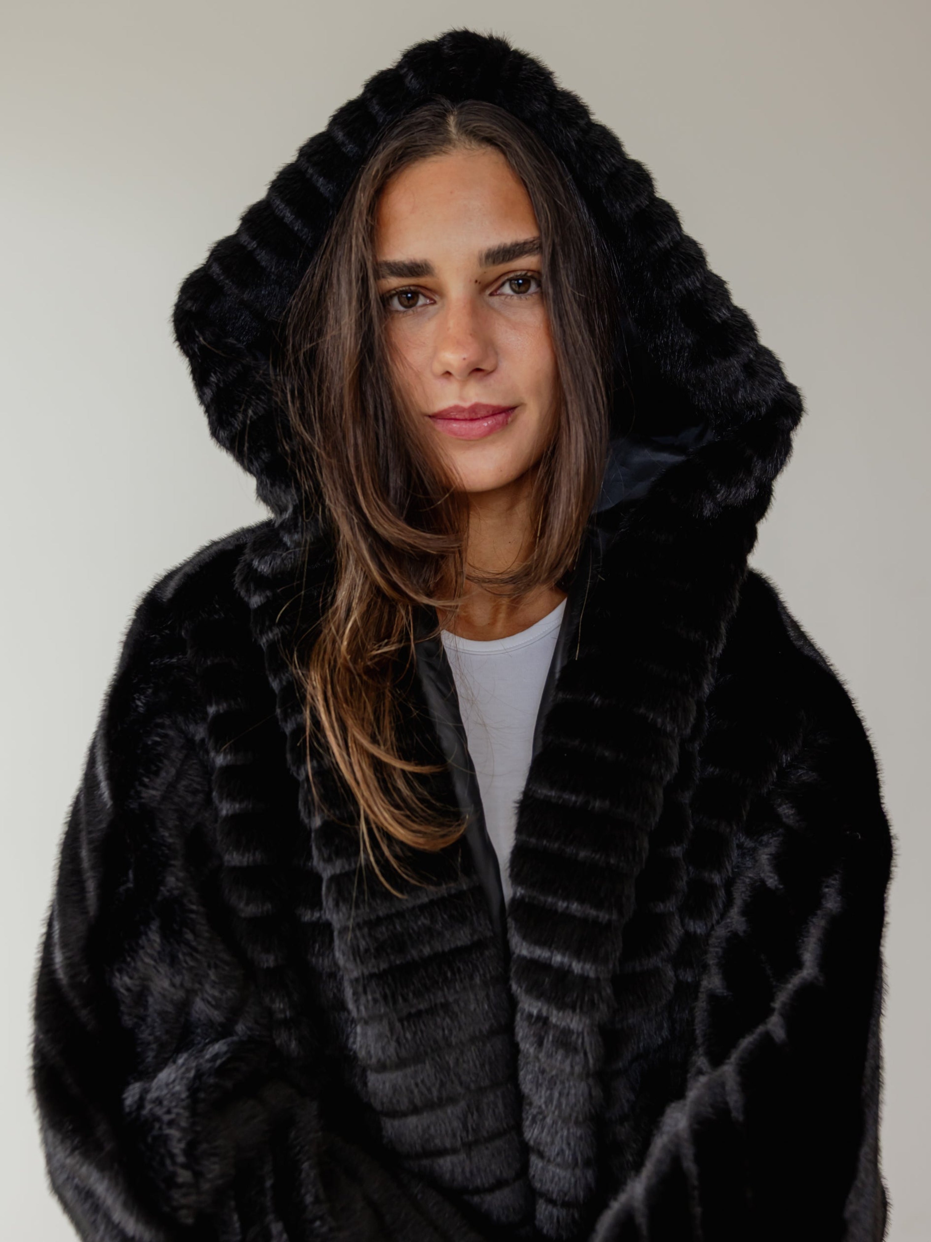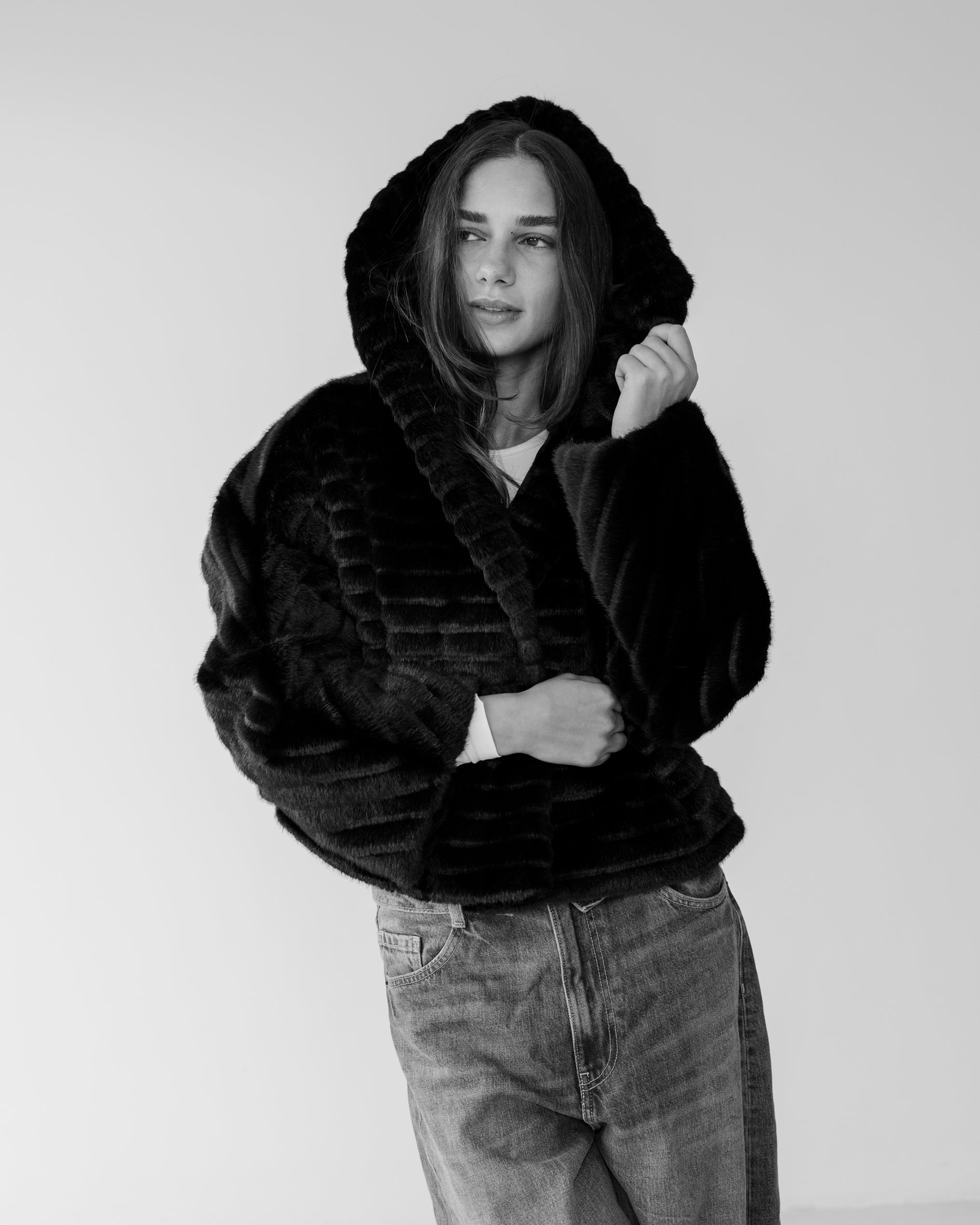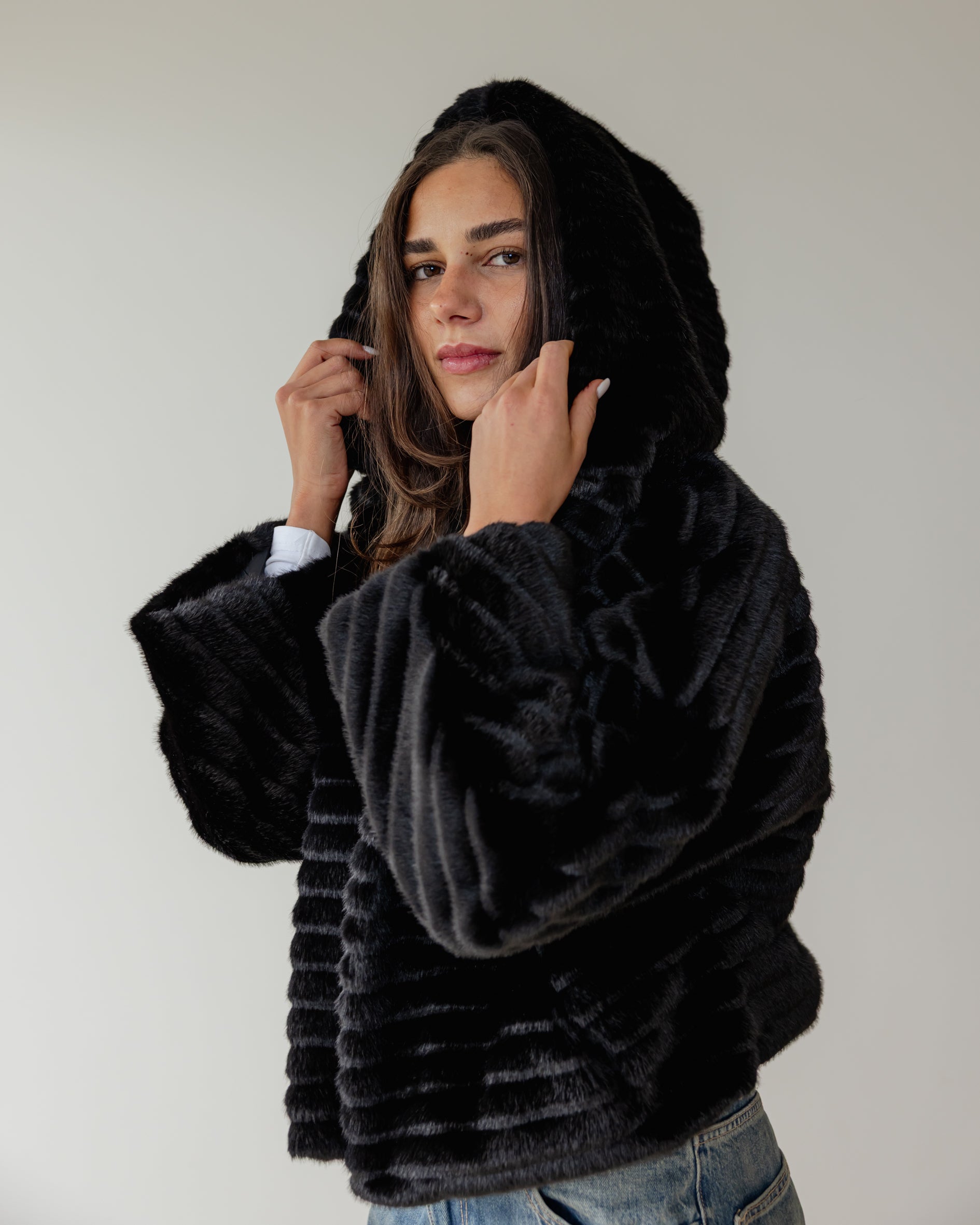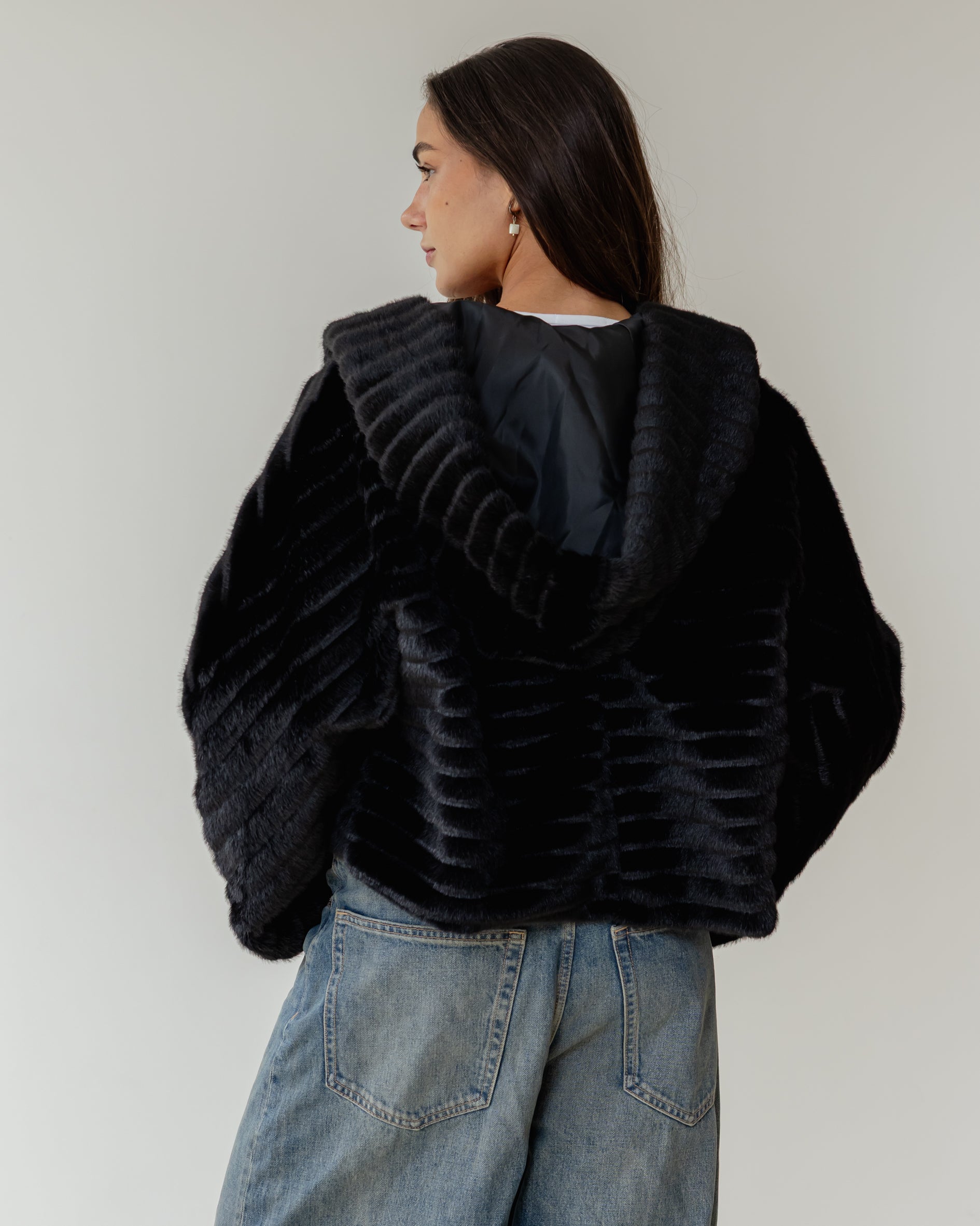 Ribbed Faux Fur Jacket - Black