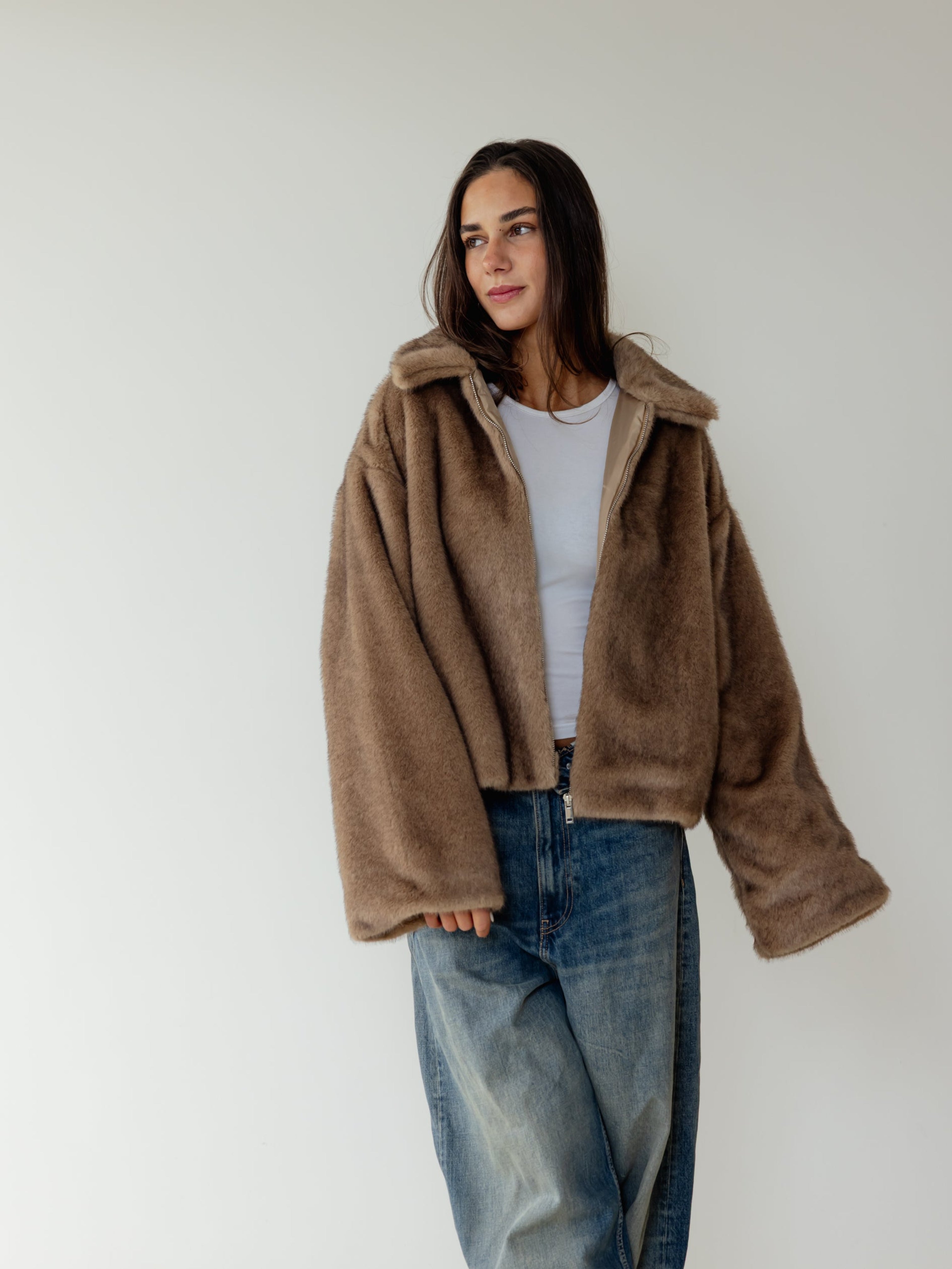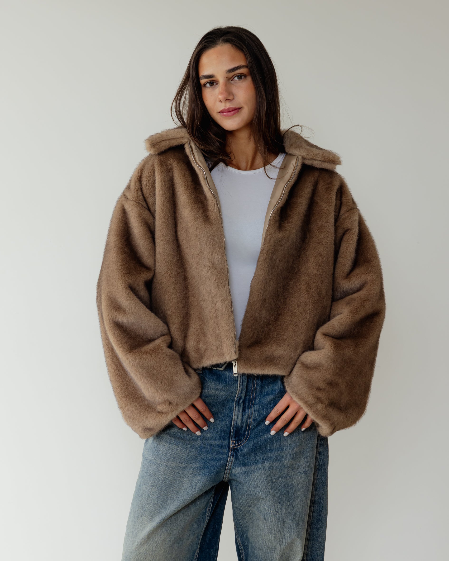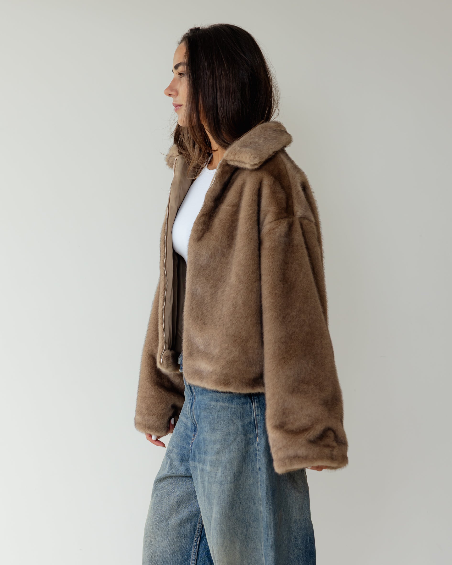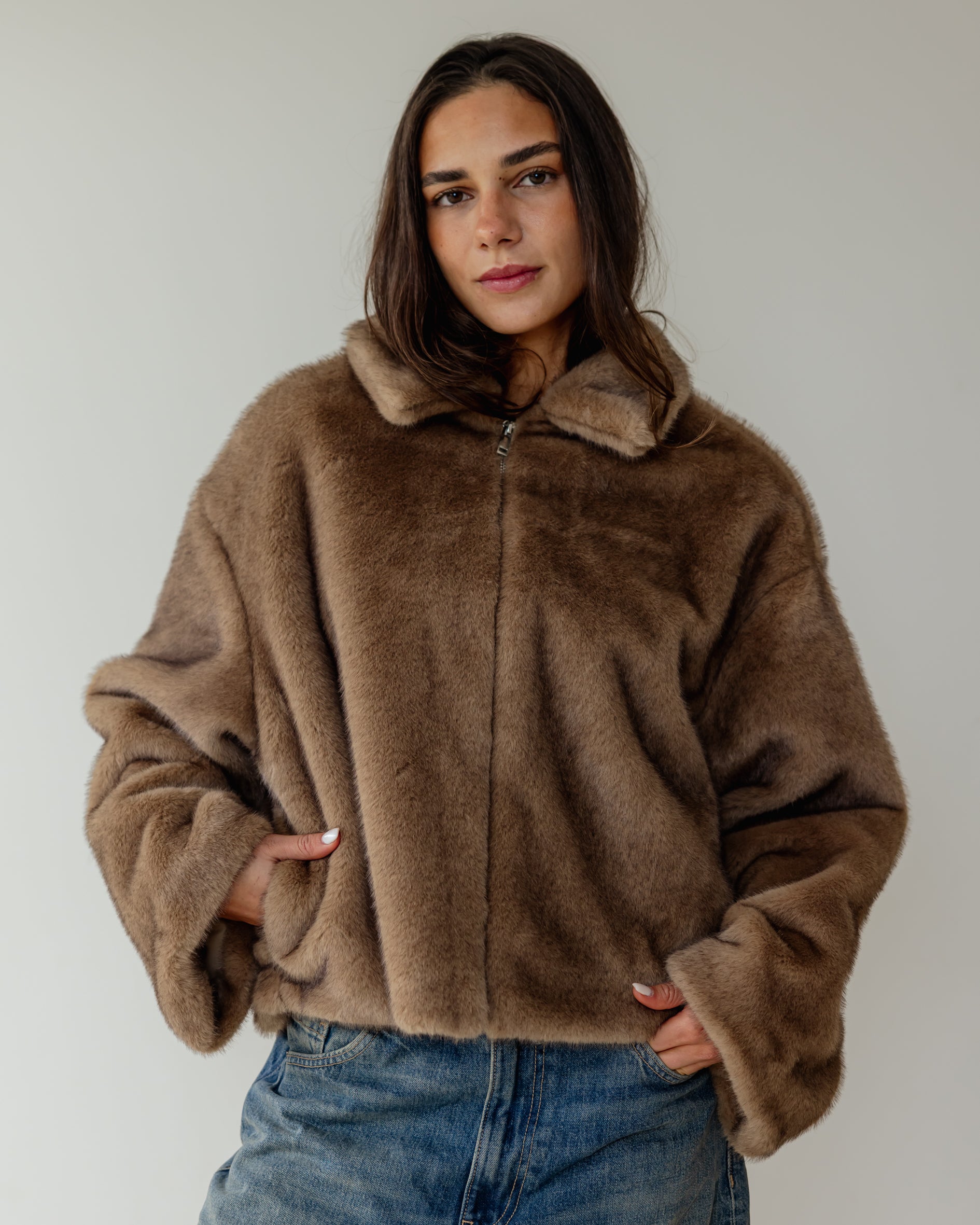 Short faux Fur Jacket - Cafe