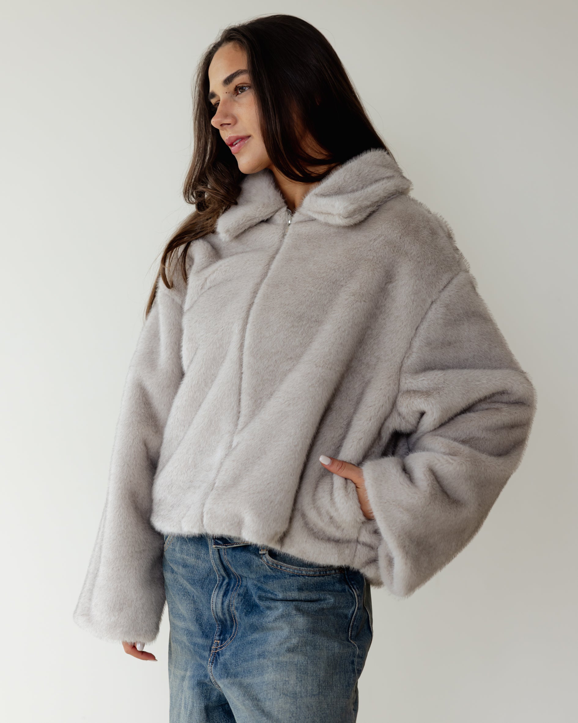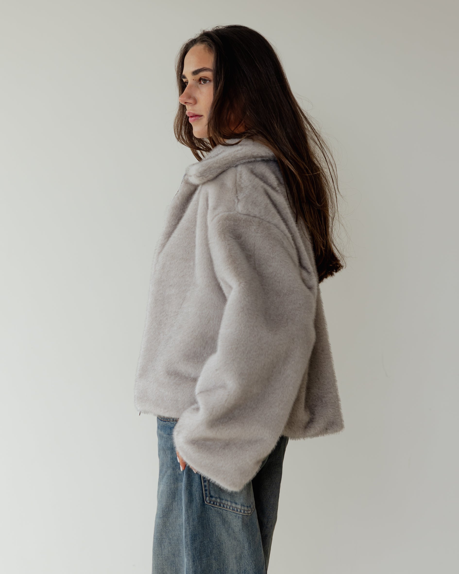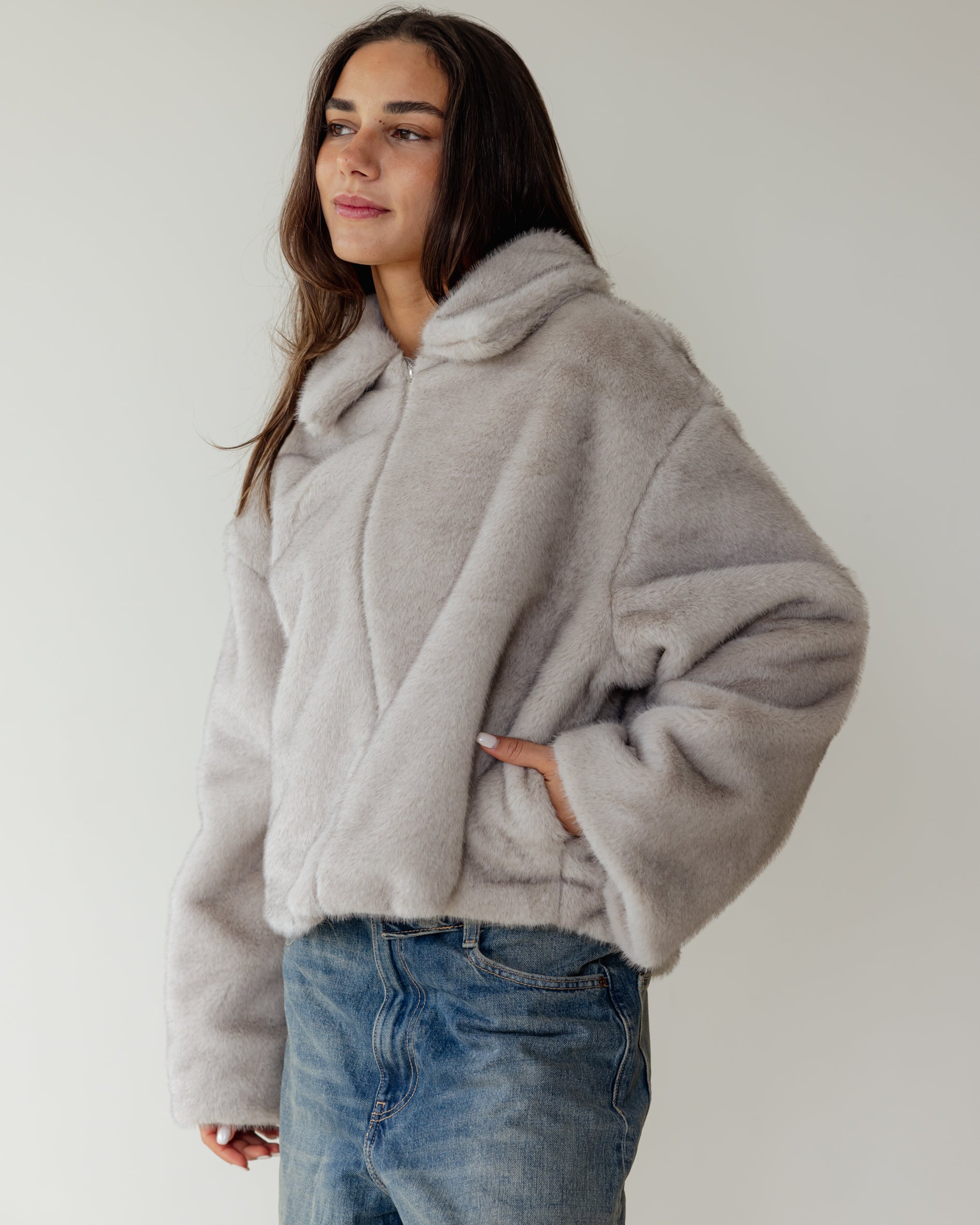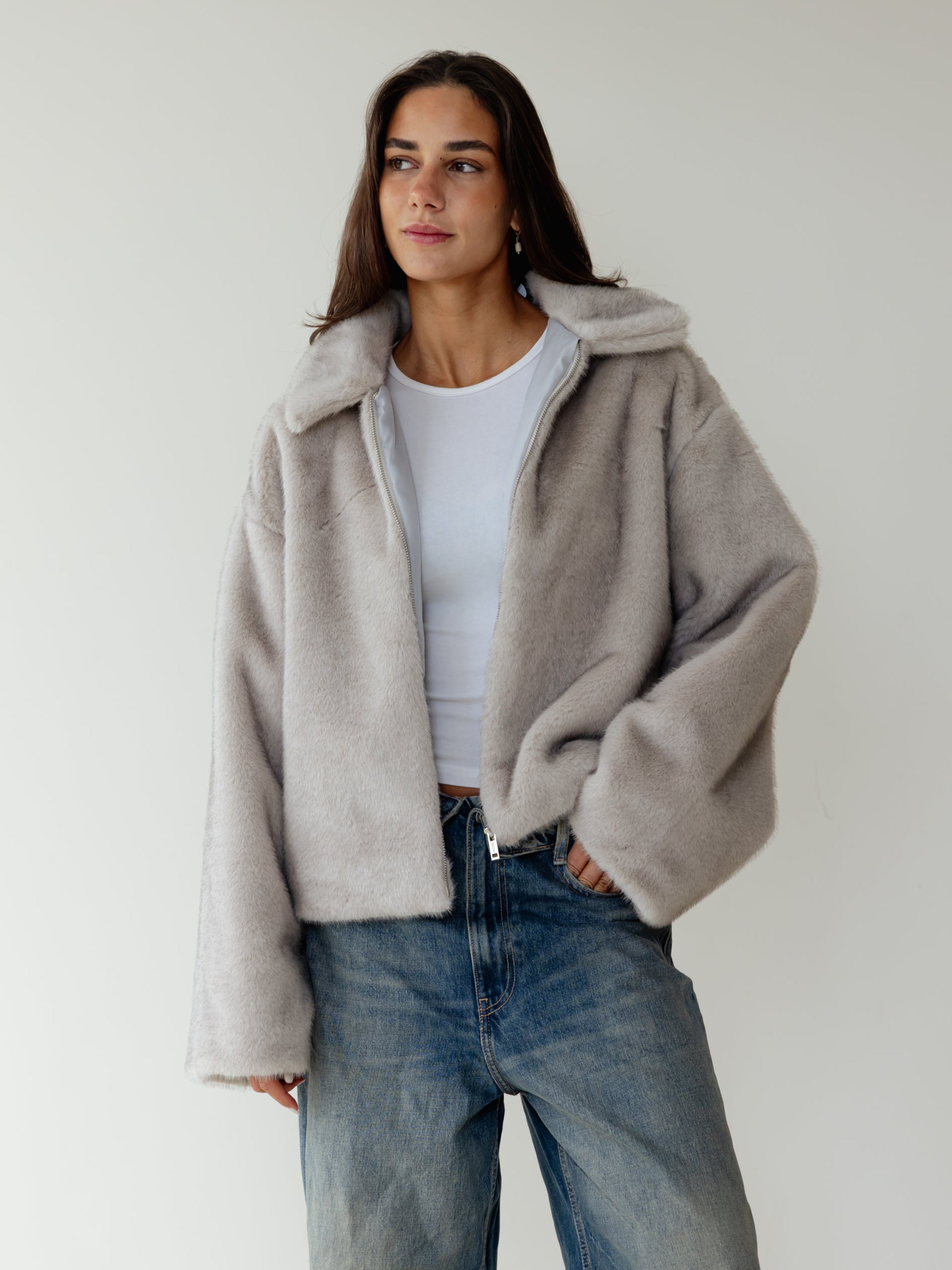 Short faux Fur Jacket - Grey
