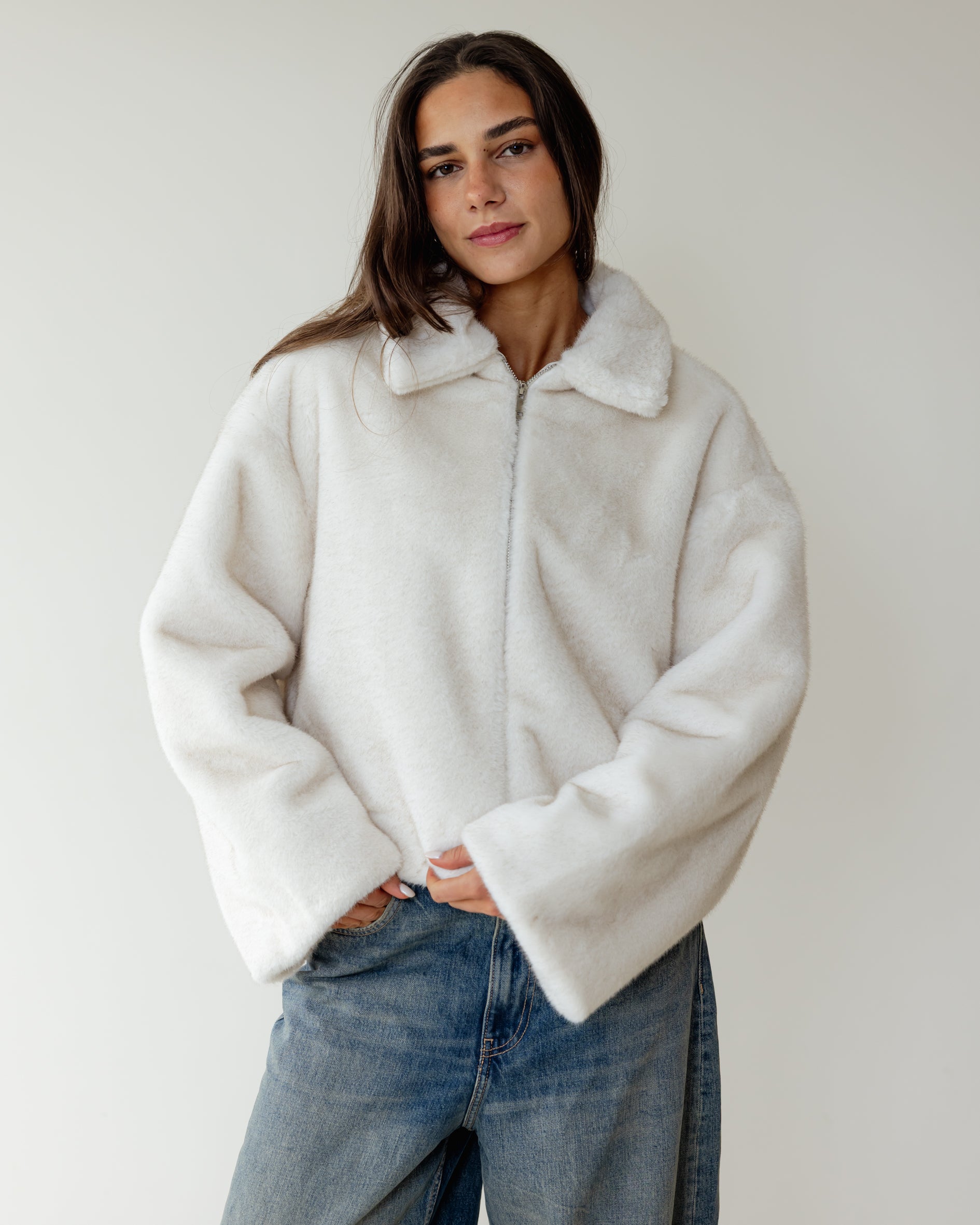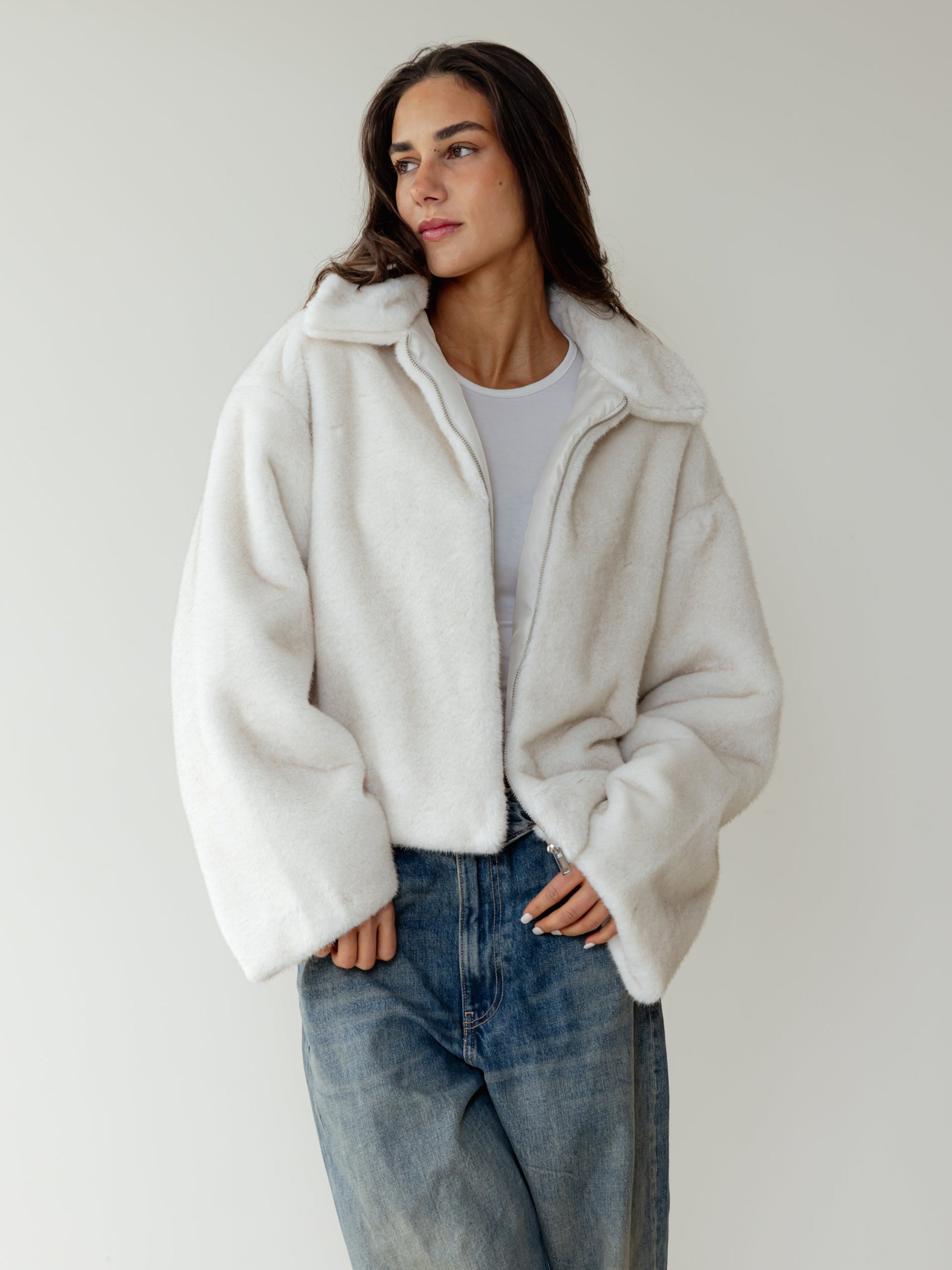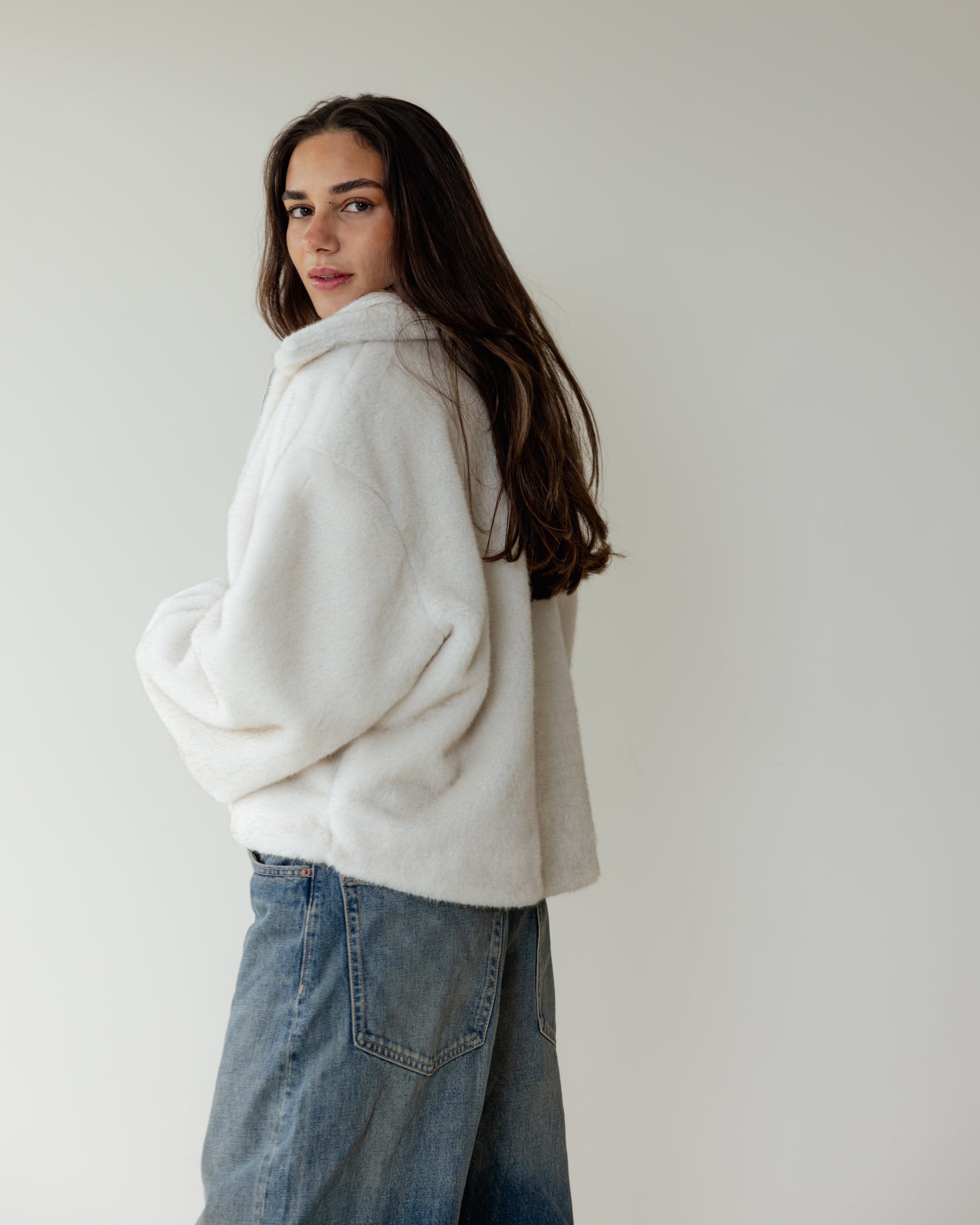 Short Faux Fur Jacket - Off White