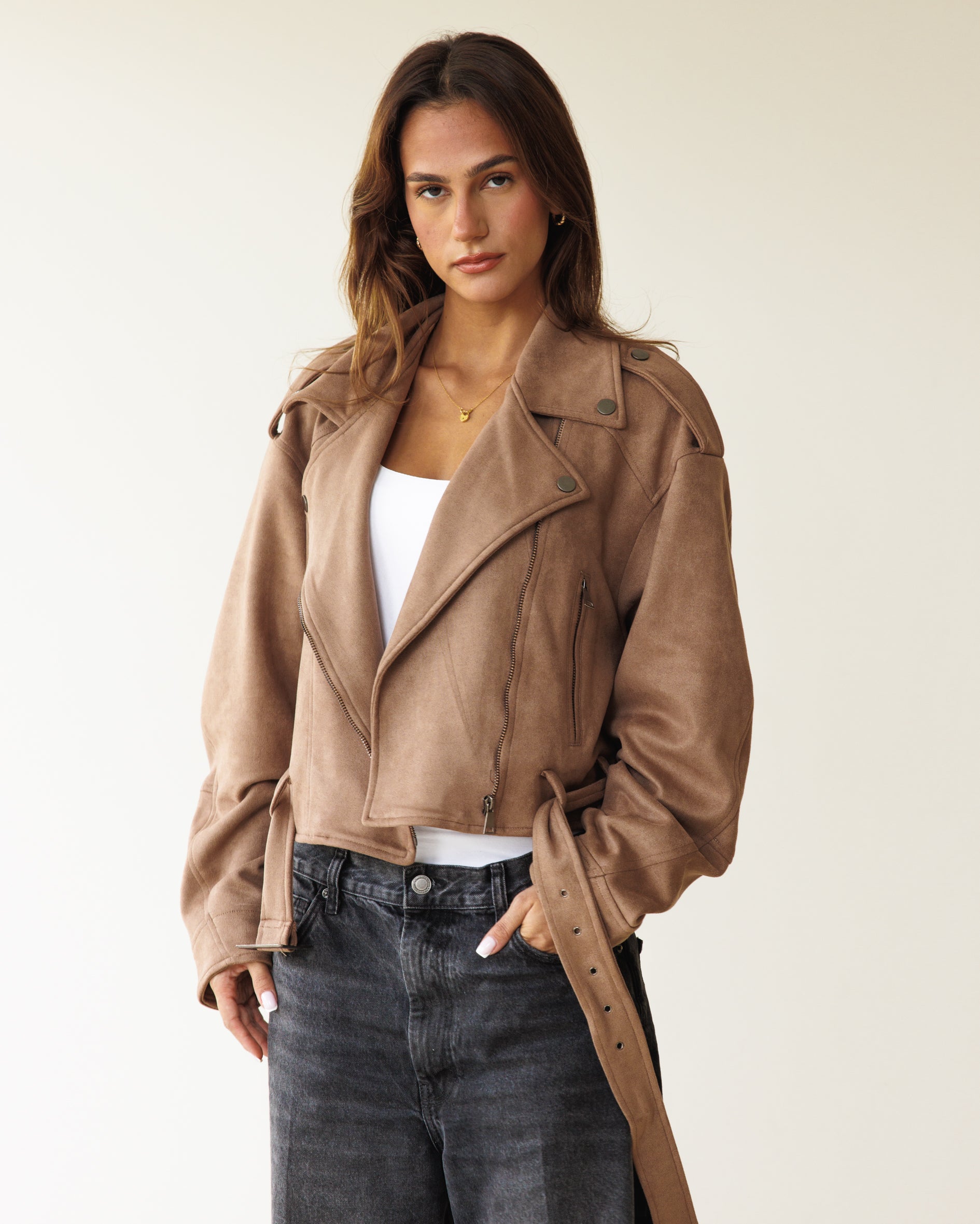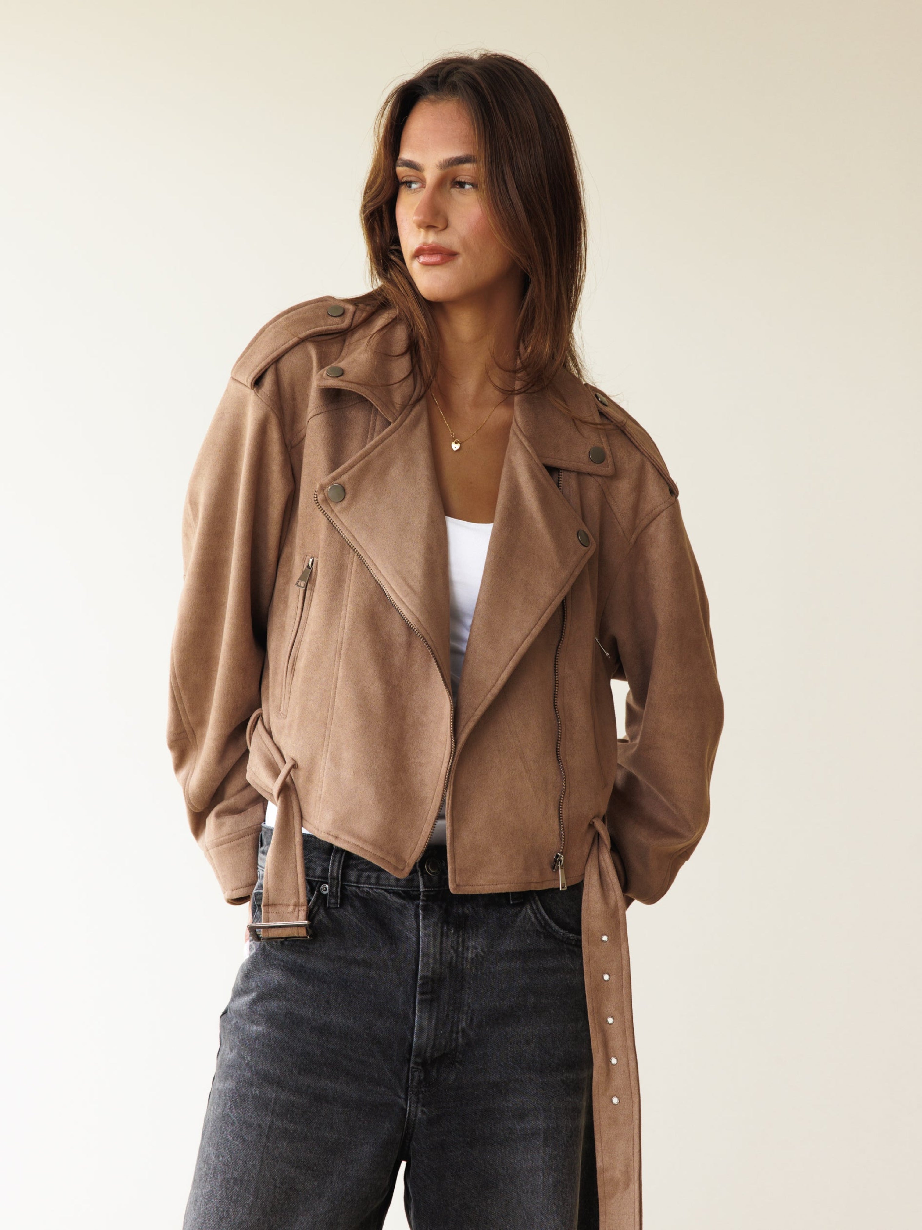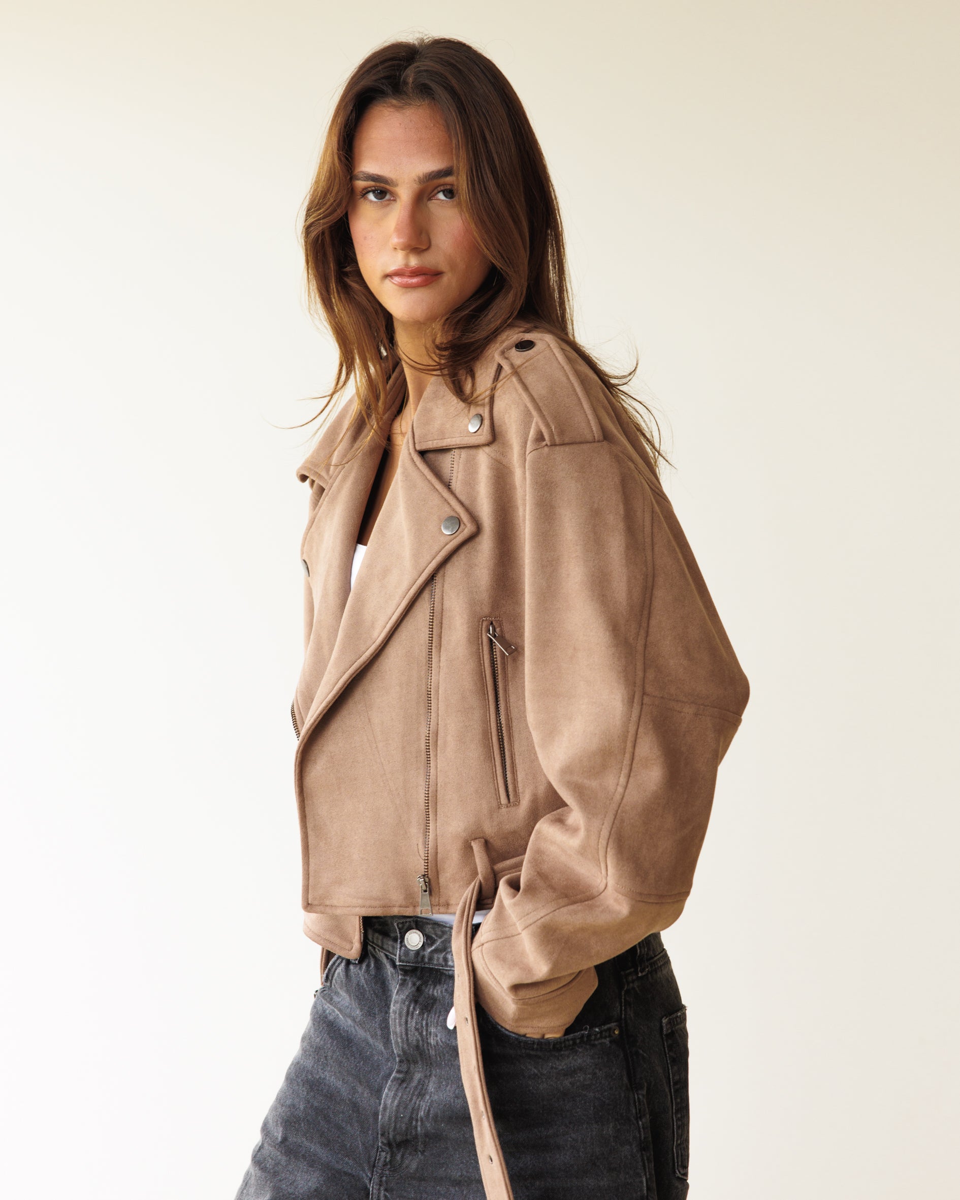 Suede Biker Jacket - Cafe