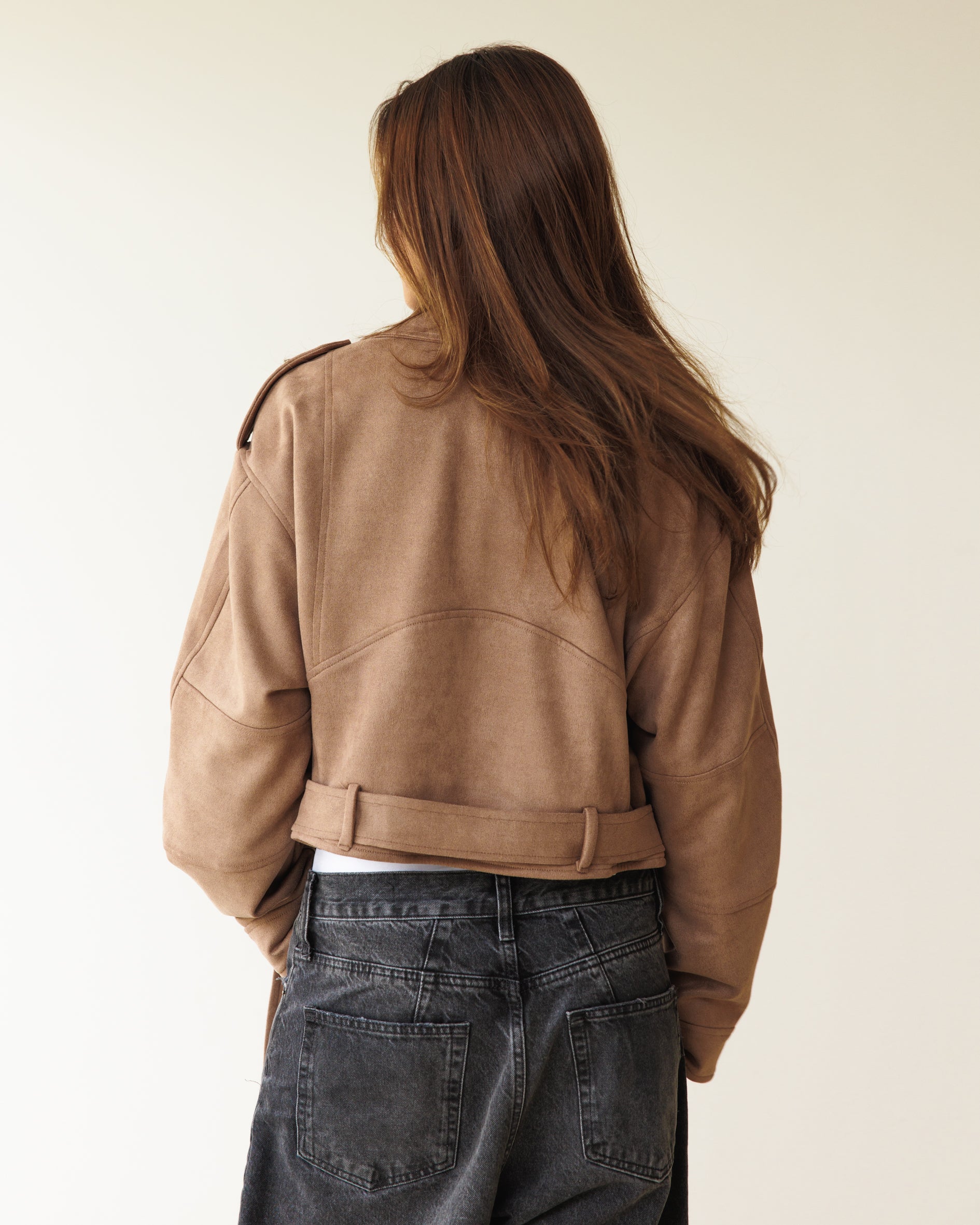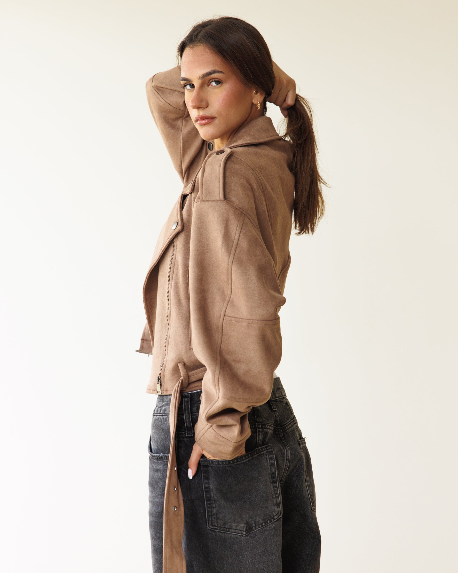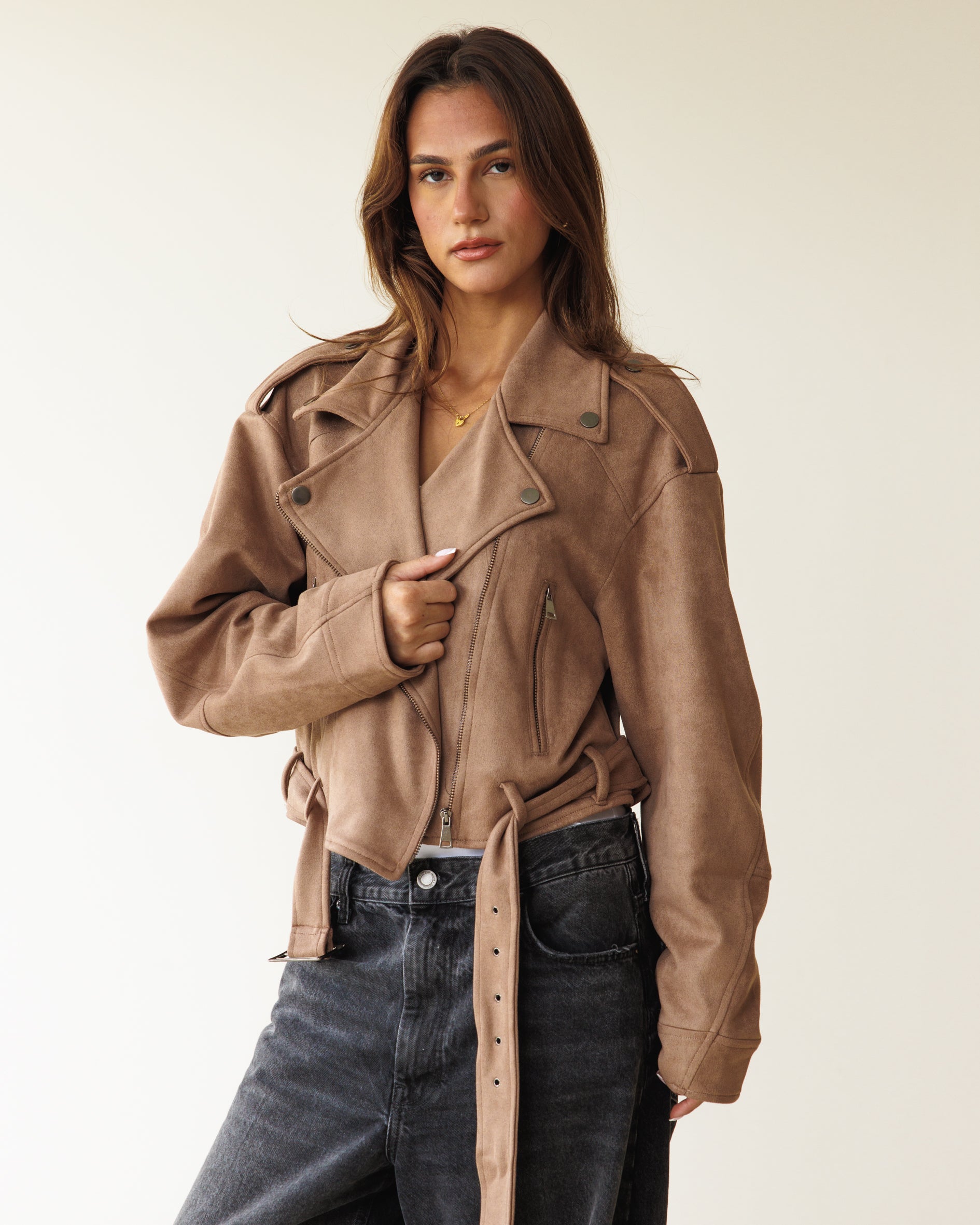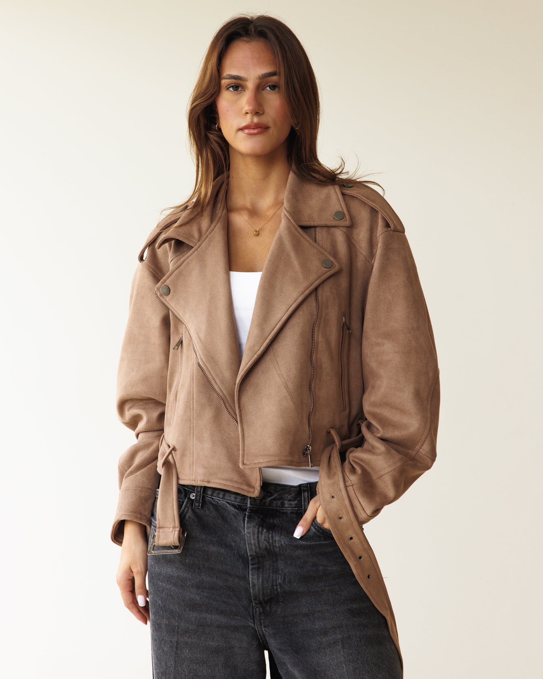 Suede Biker Jacket - Cafe