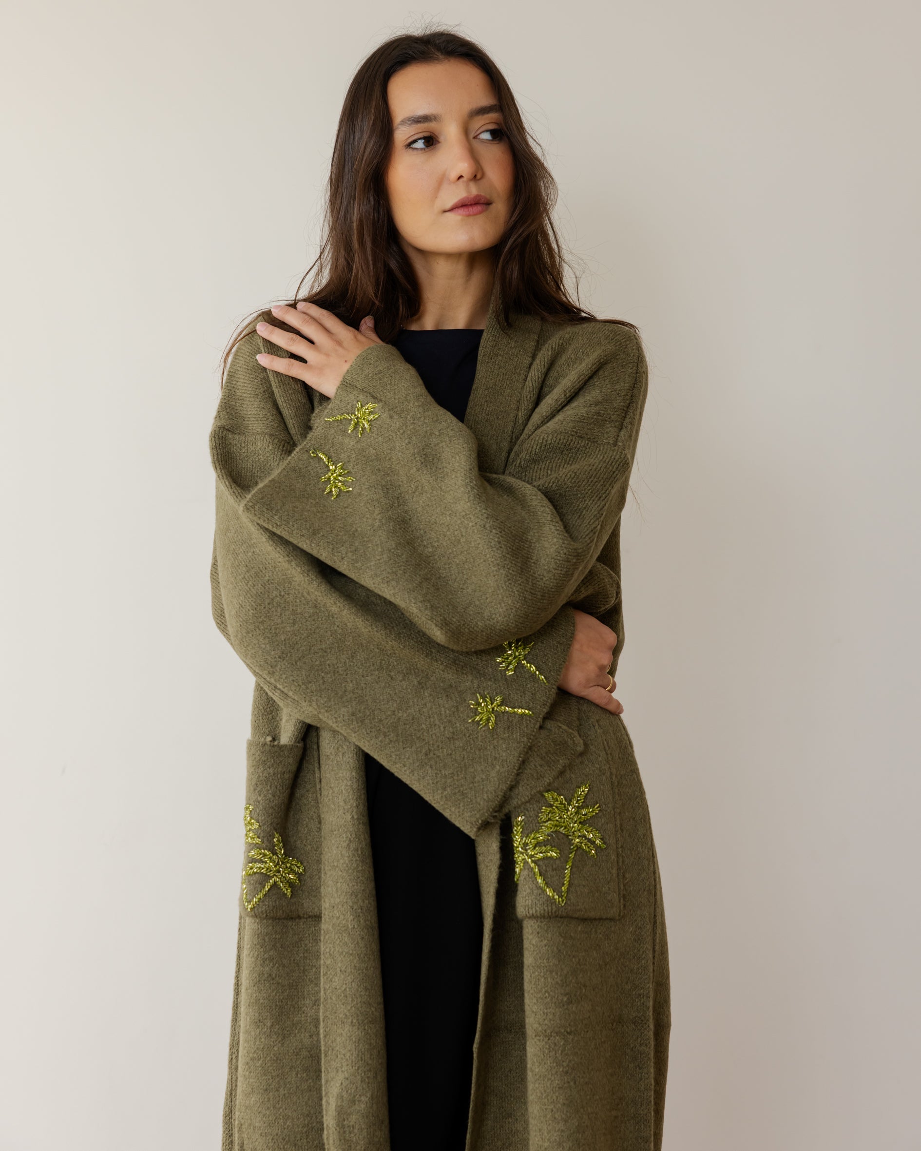 Palm Crafted Knit Cardi - Olive