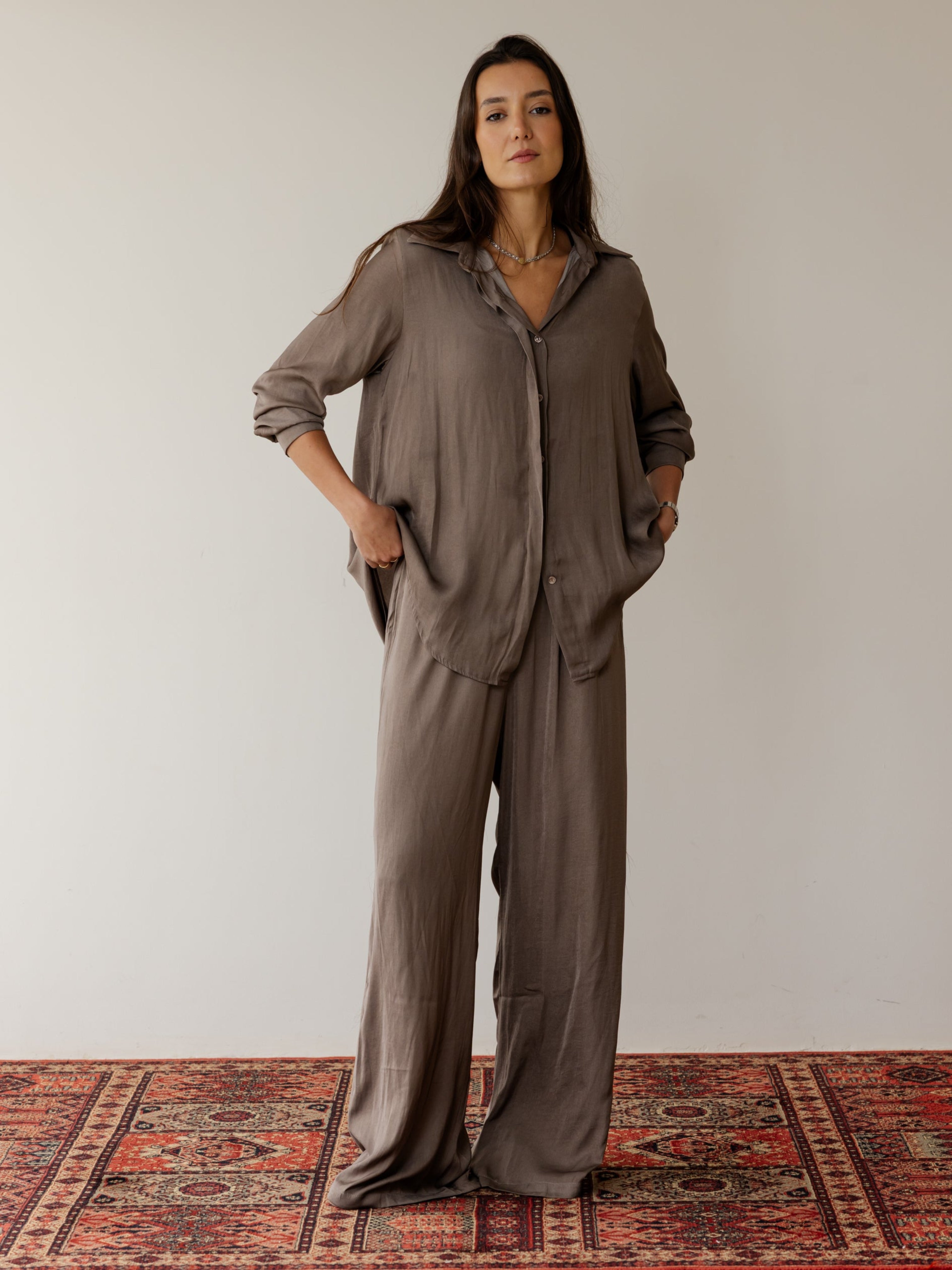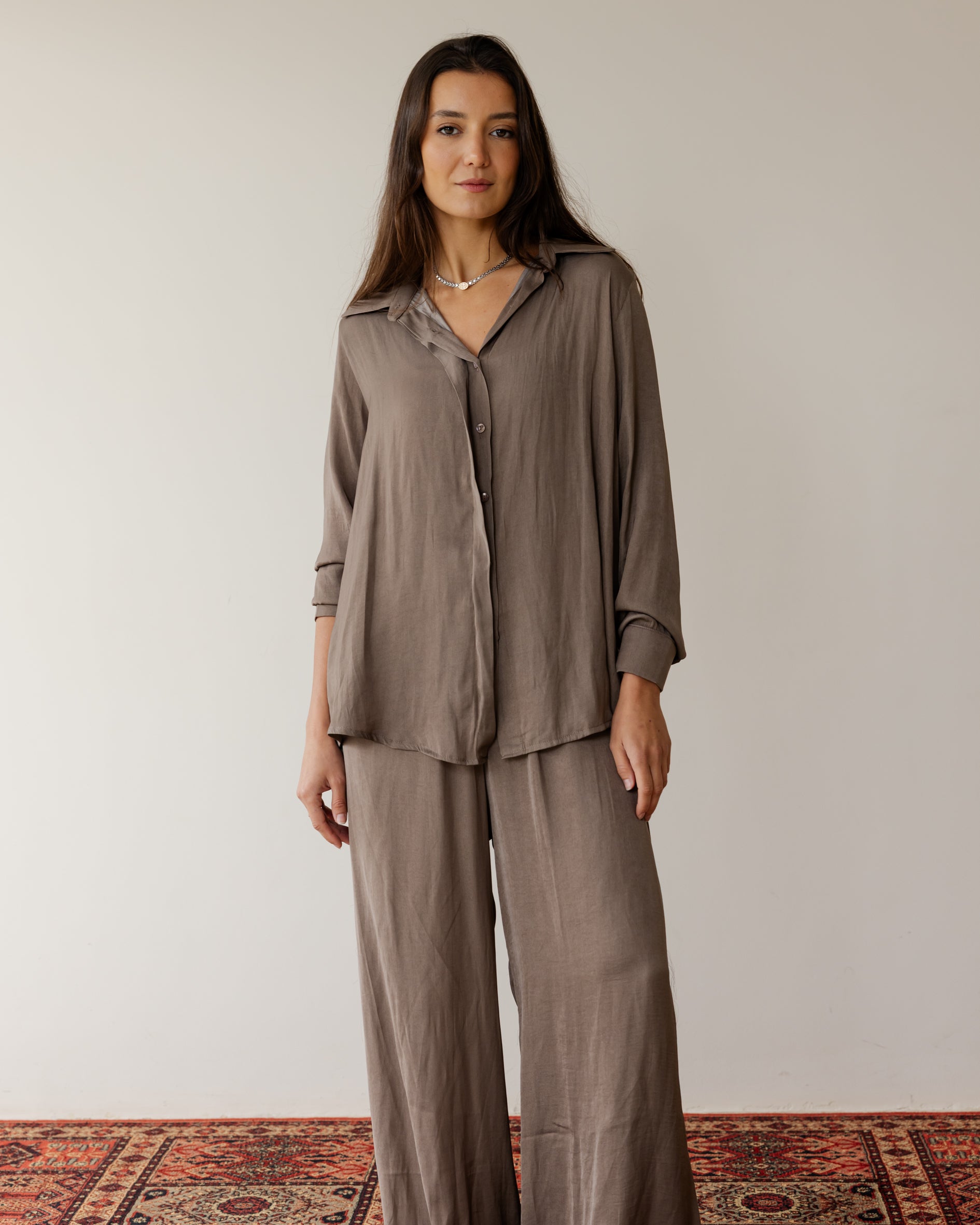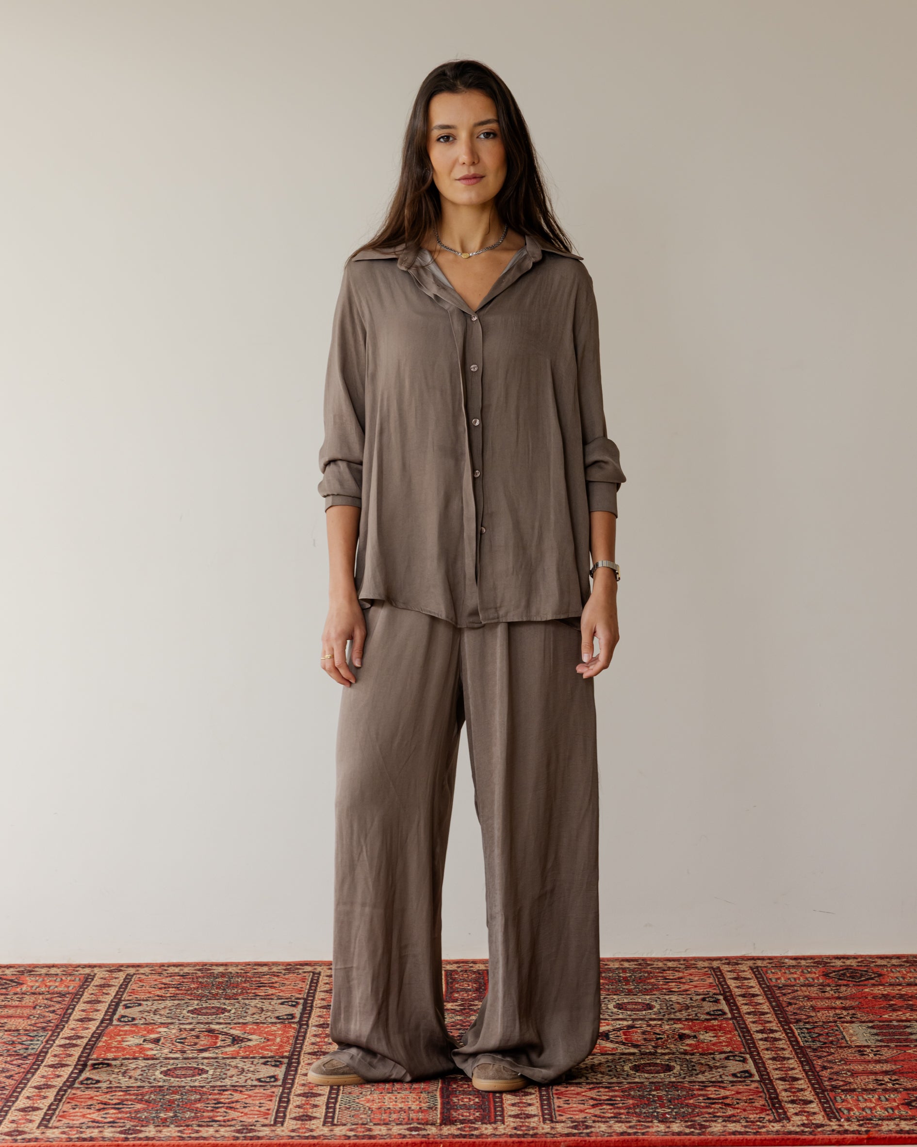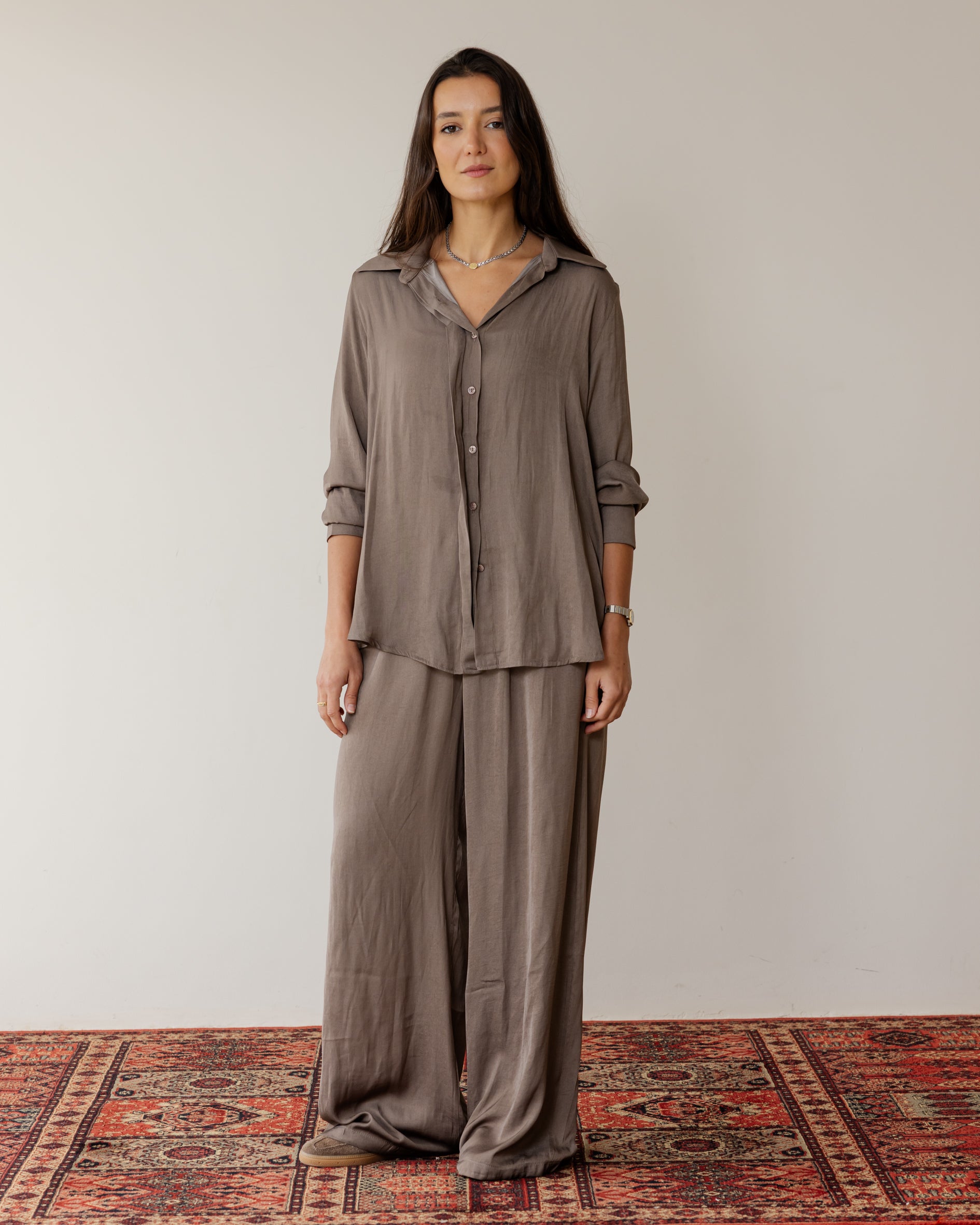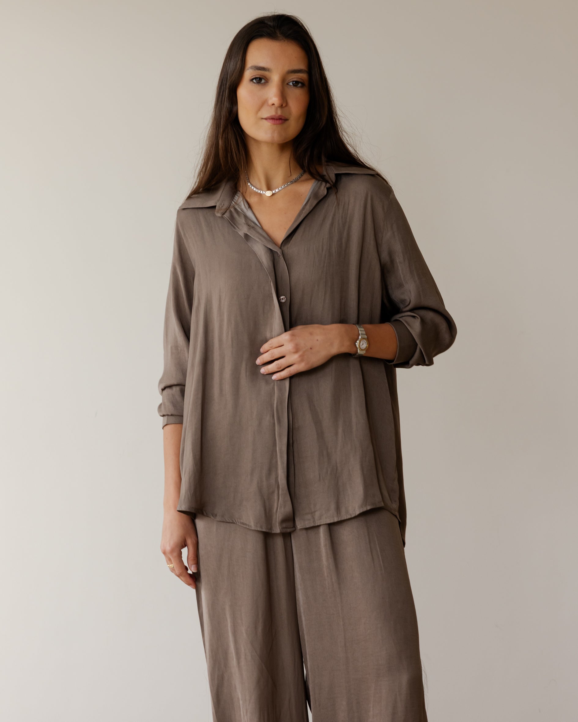 Sleek Satin Set - Cafe