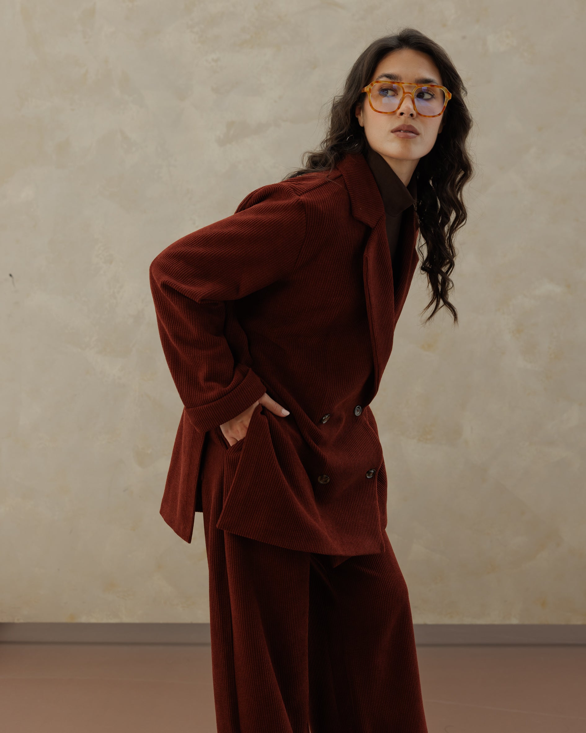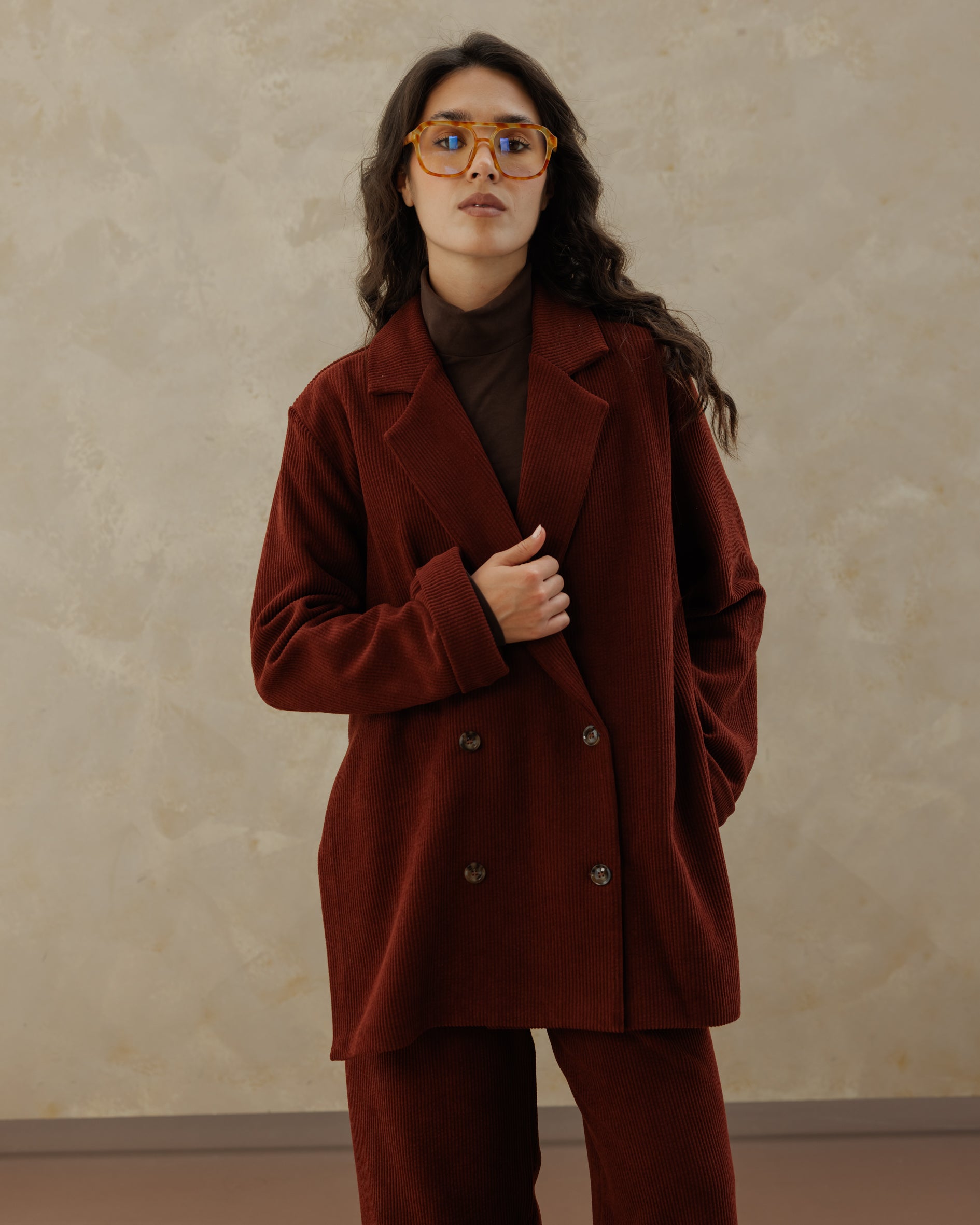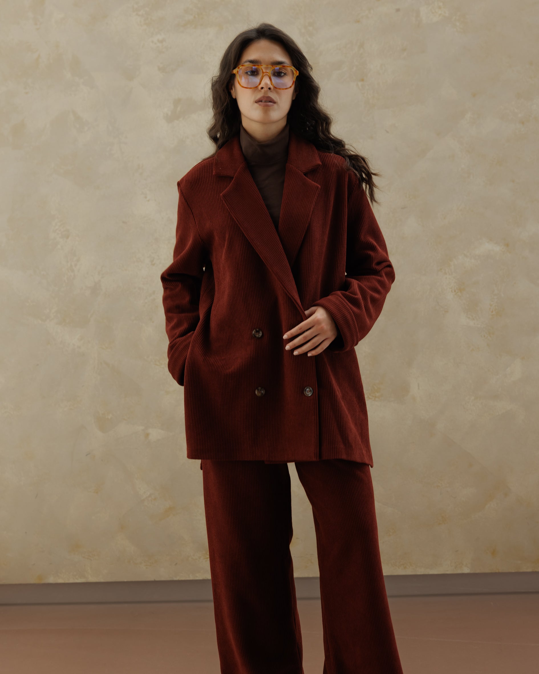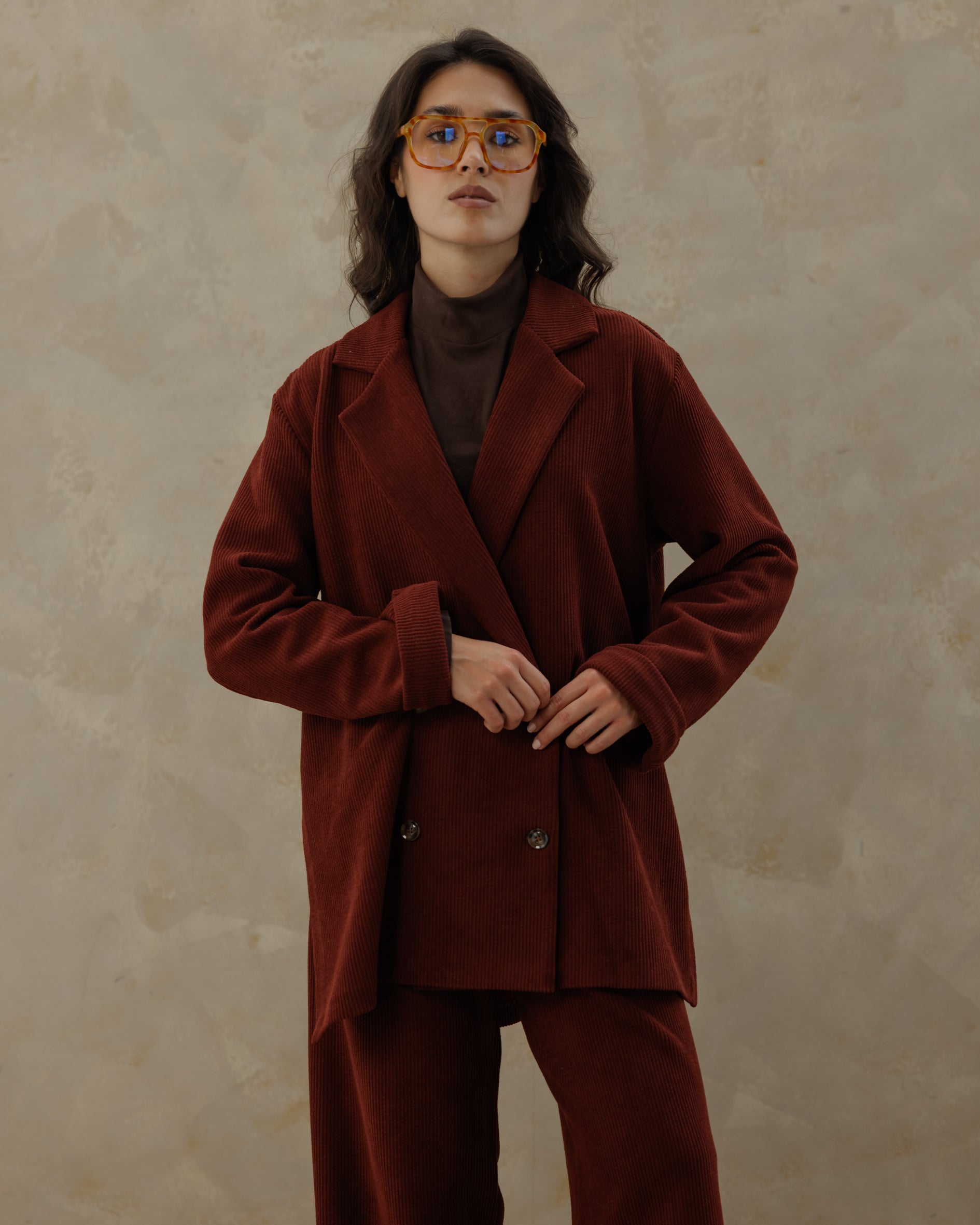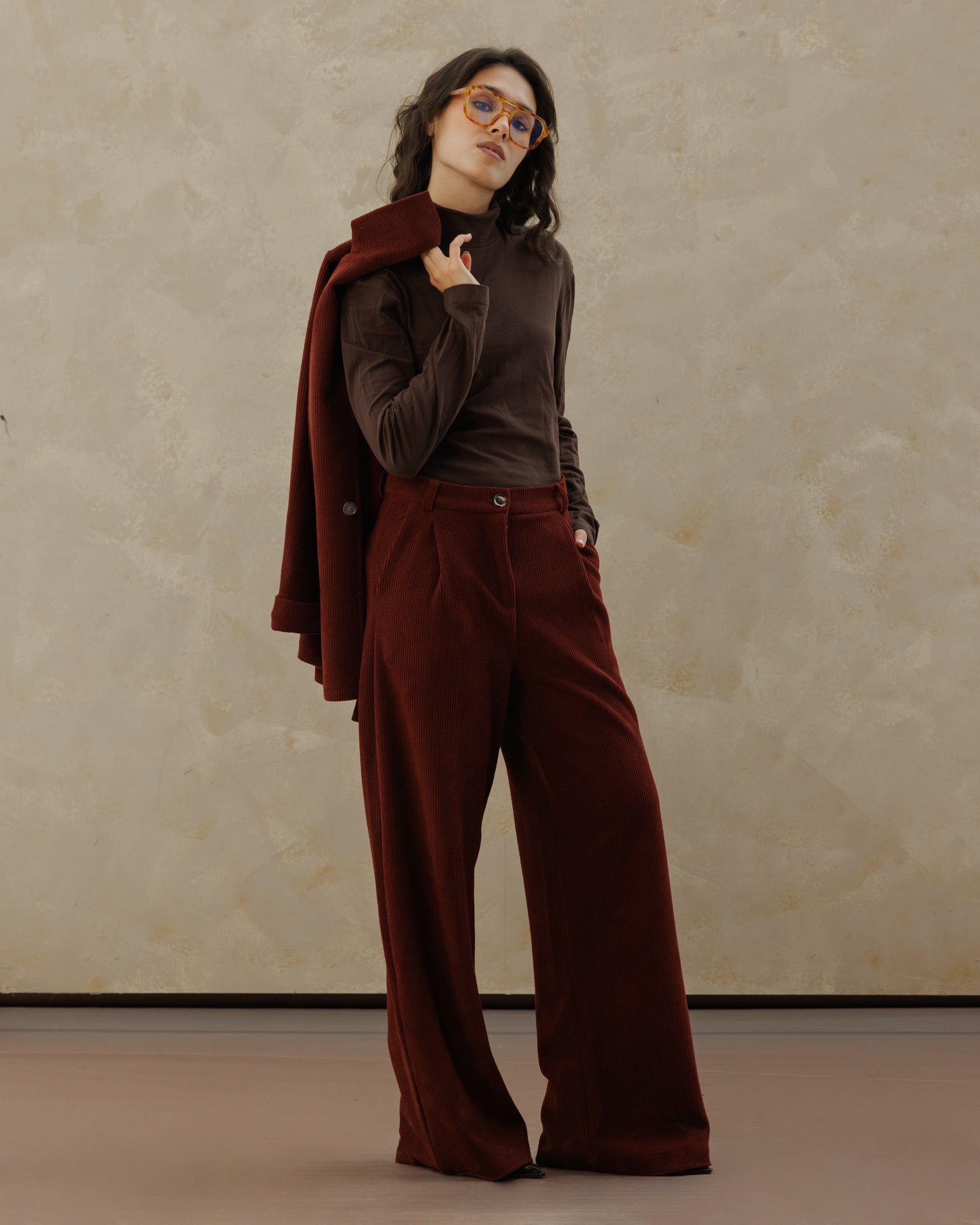 Tailored Suede Set - Burgundy