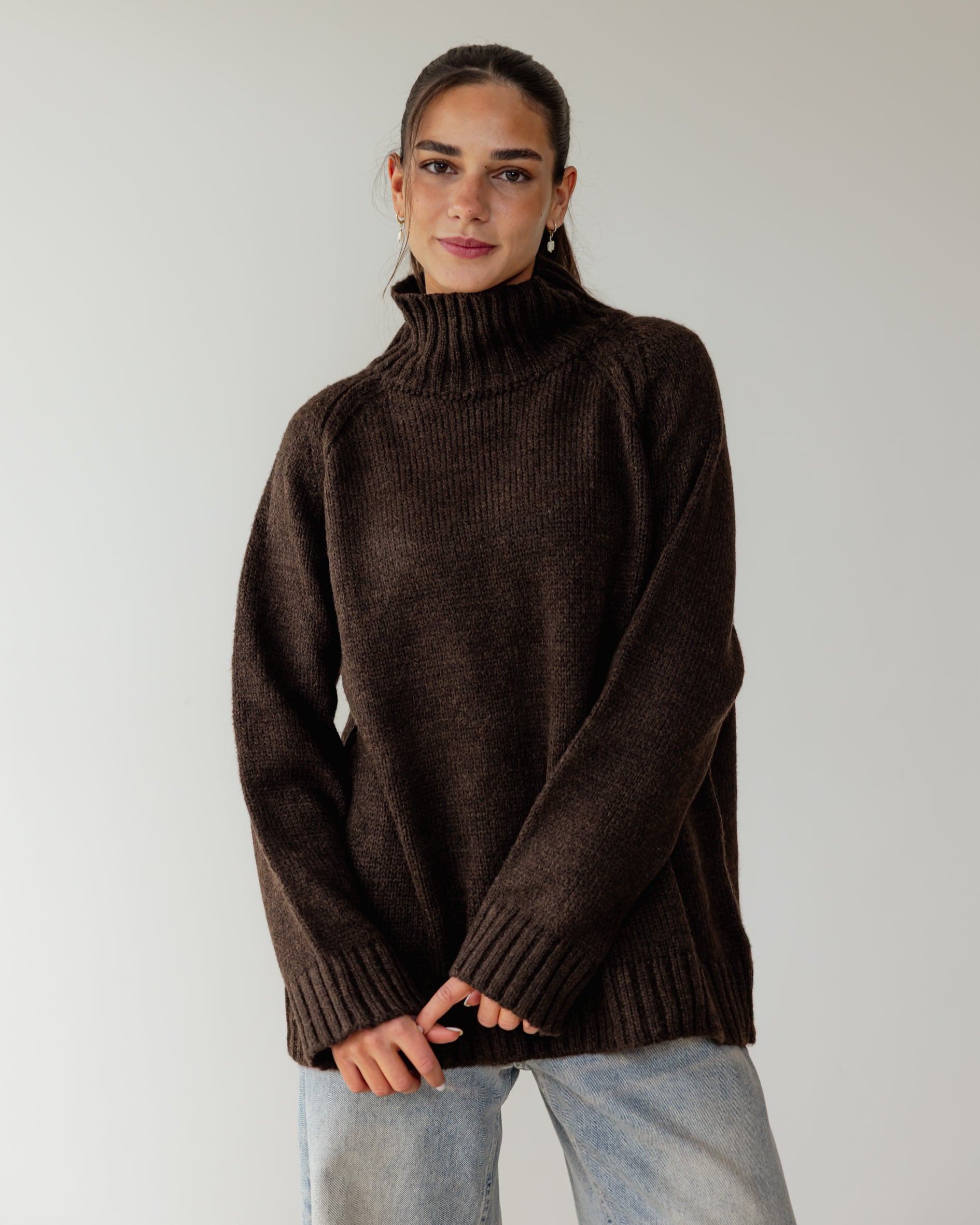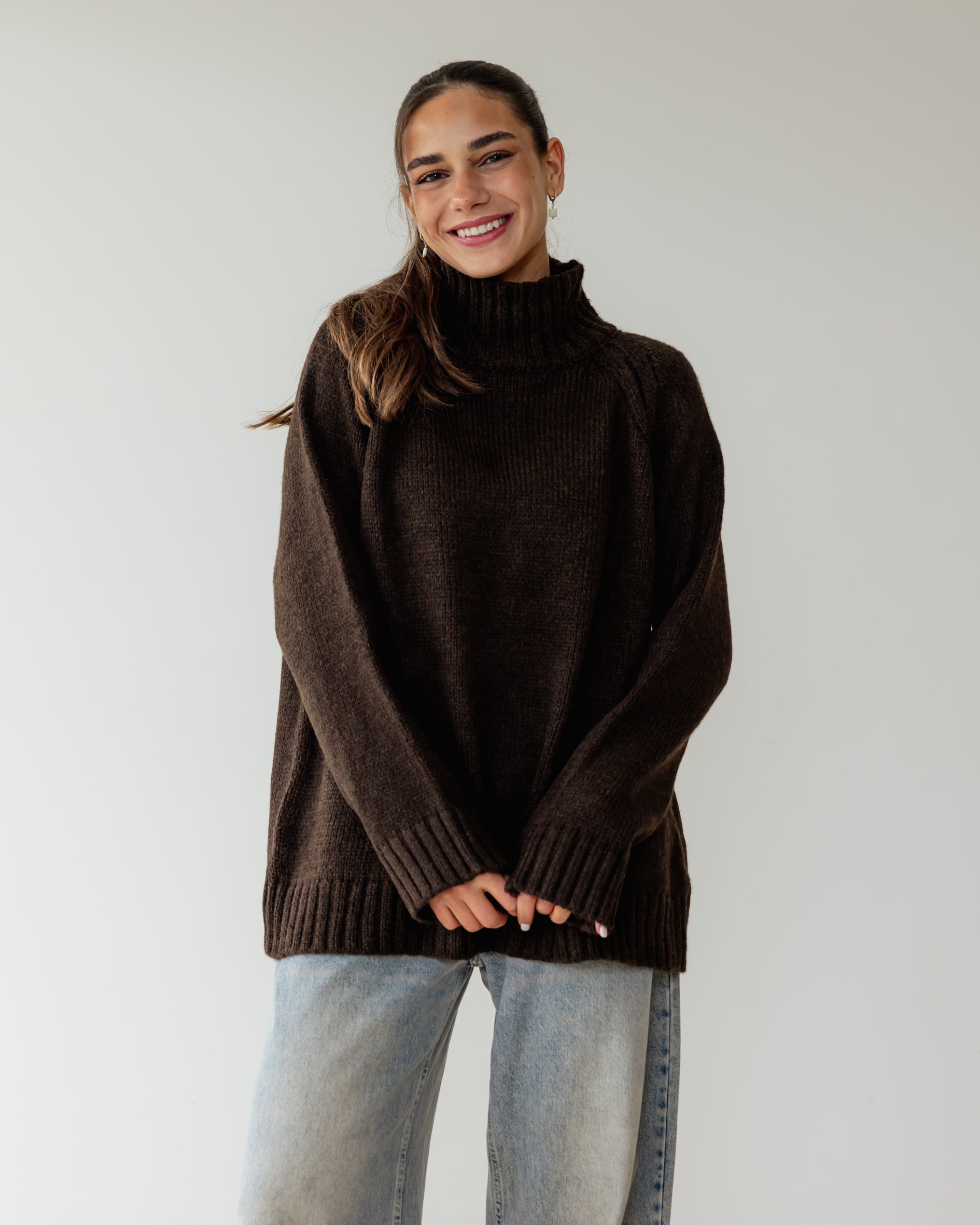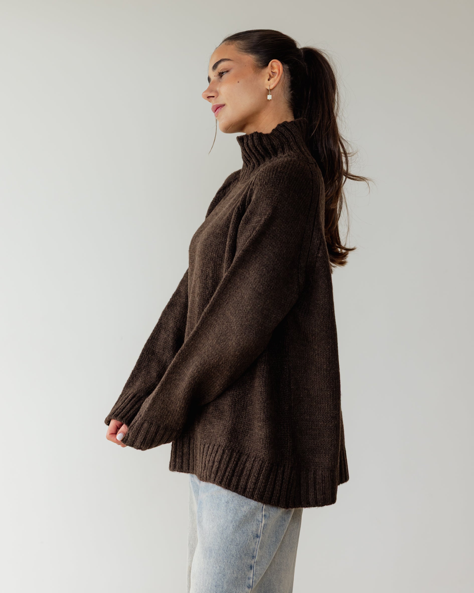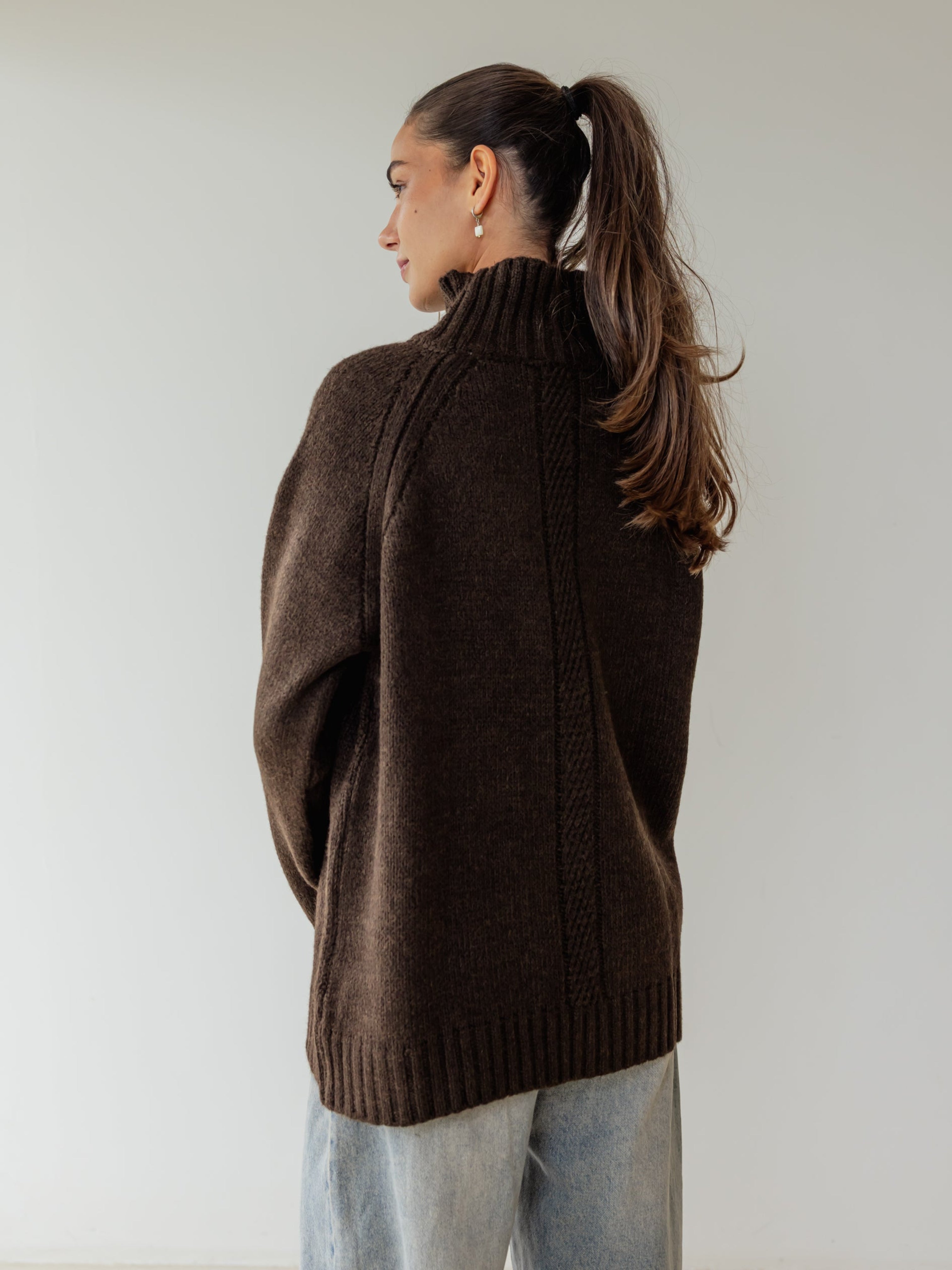 Oversized Knit Sweater - Brown