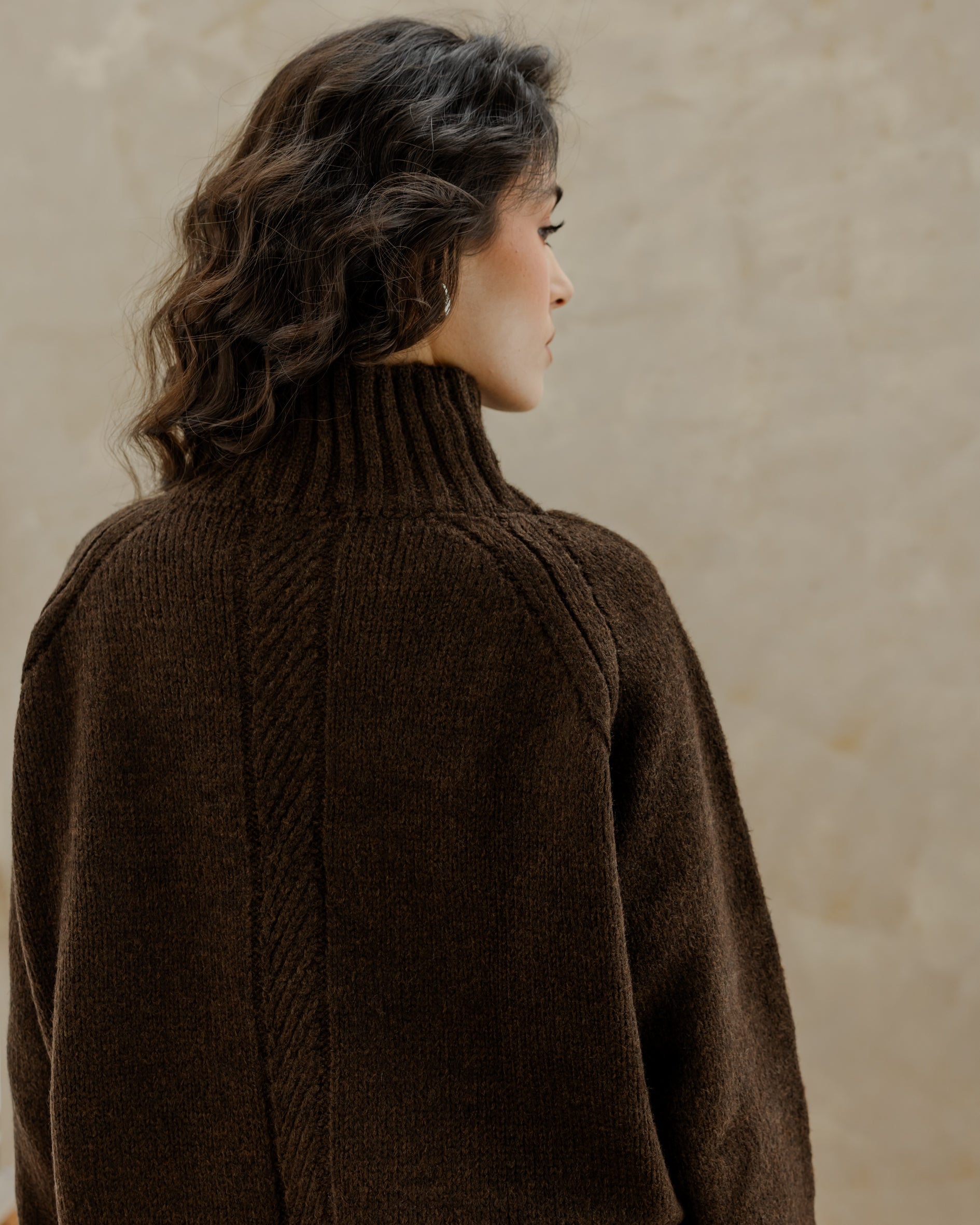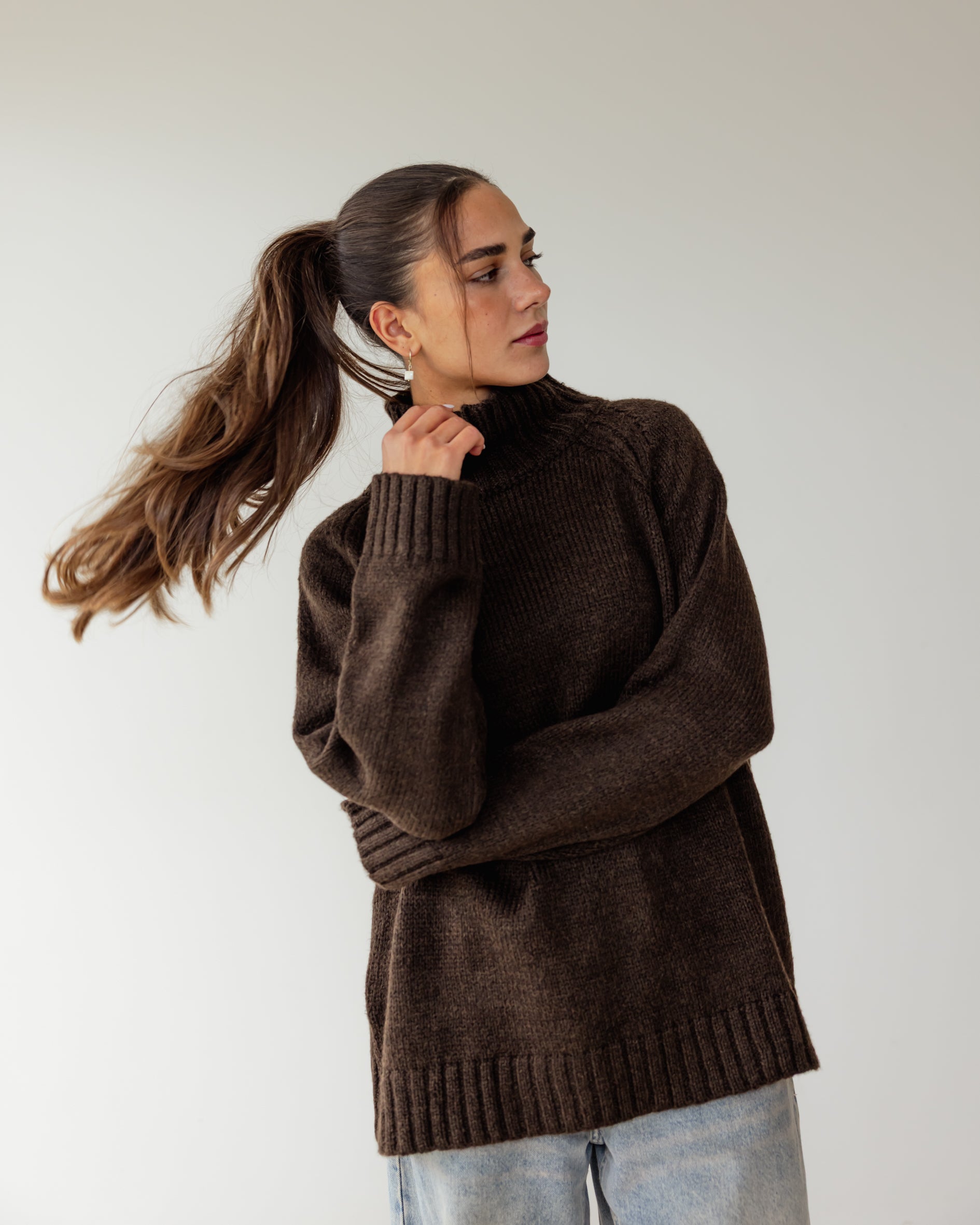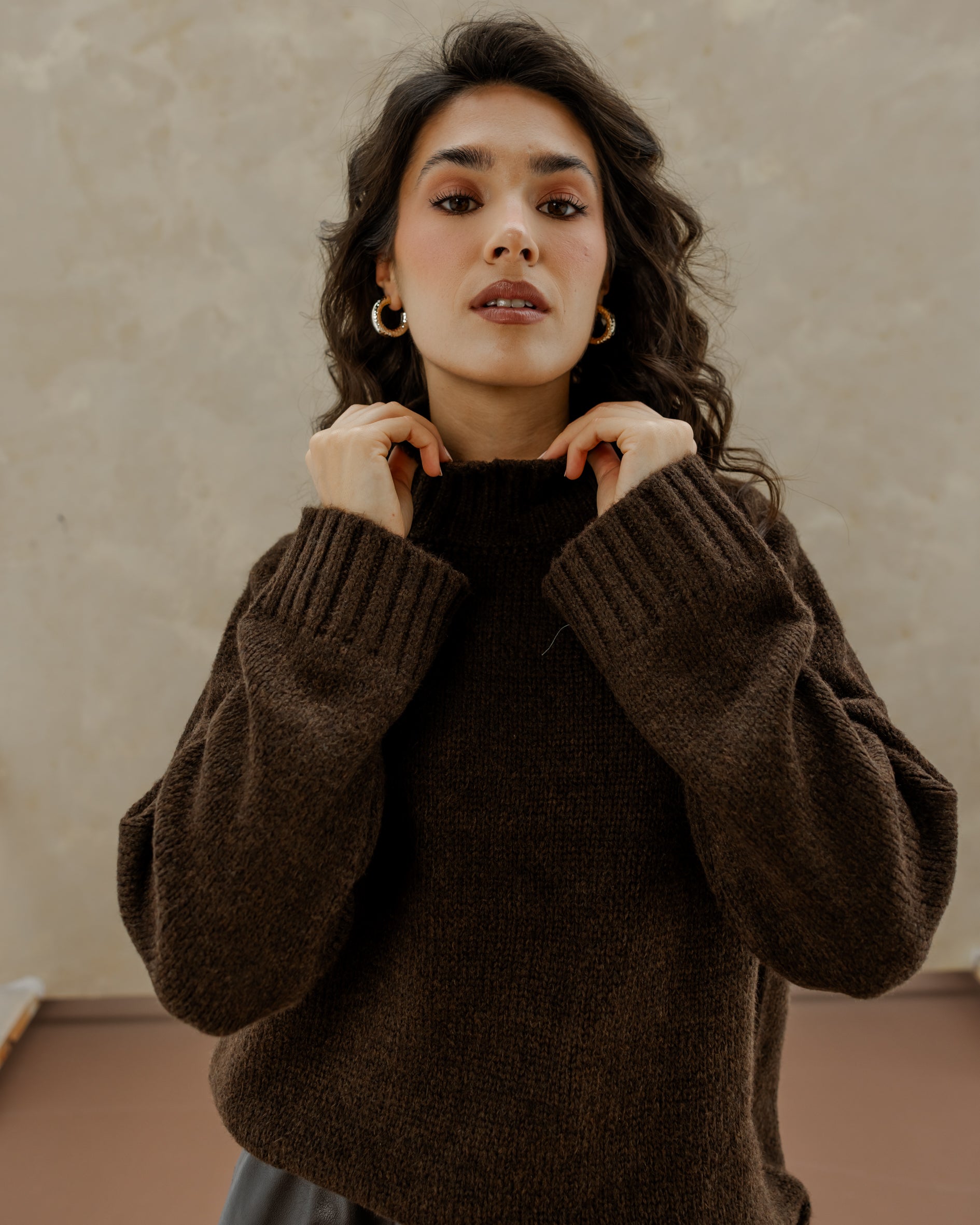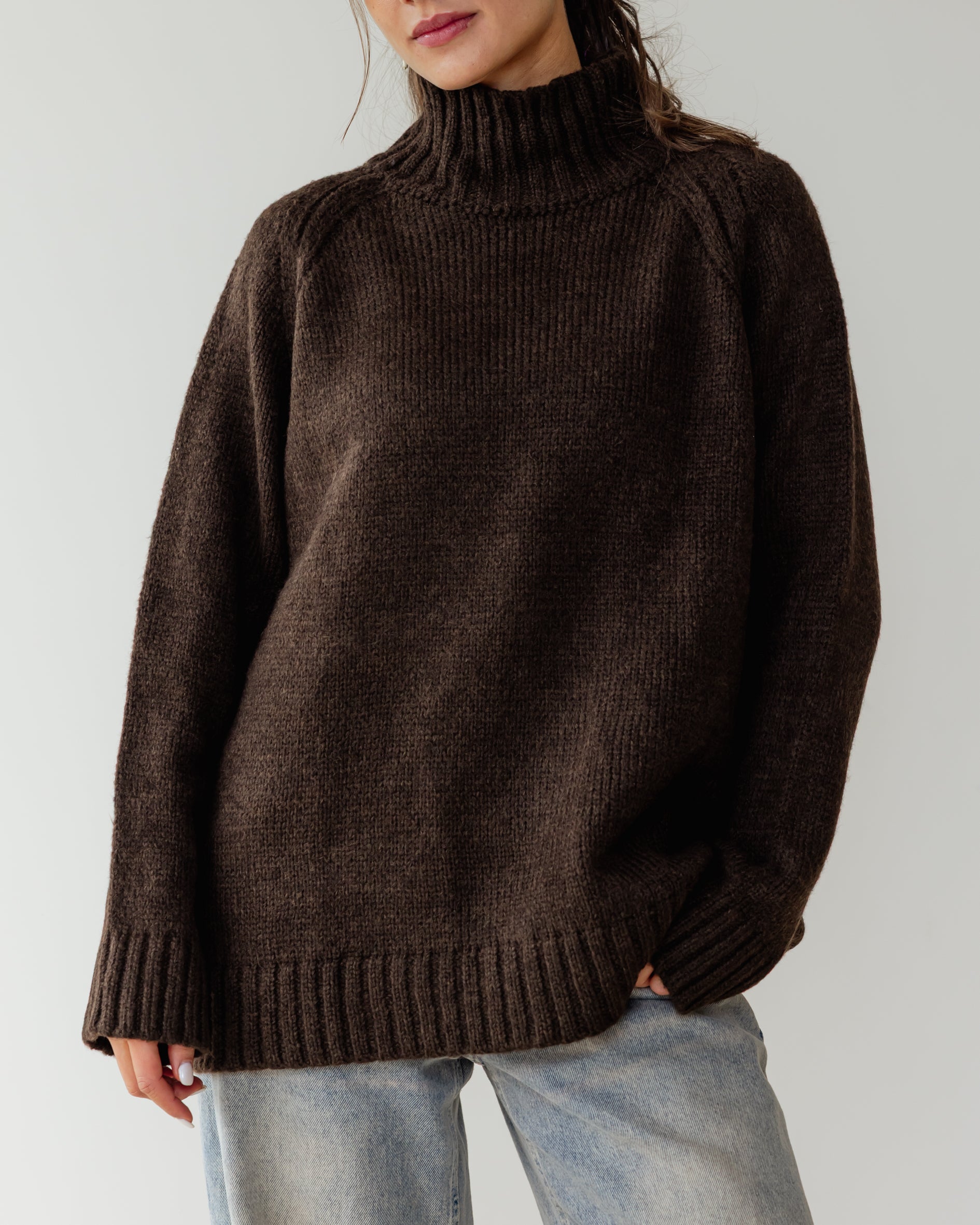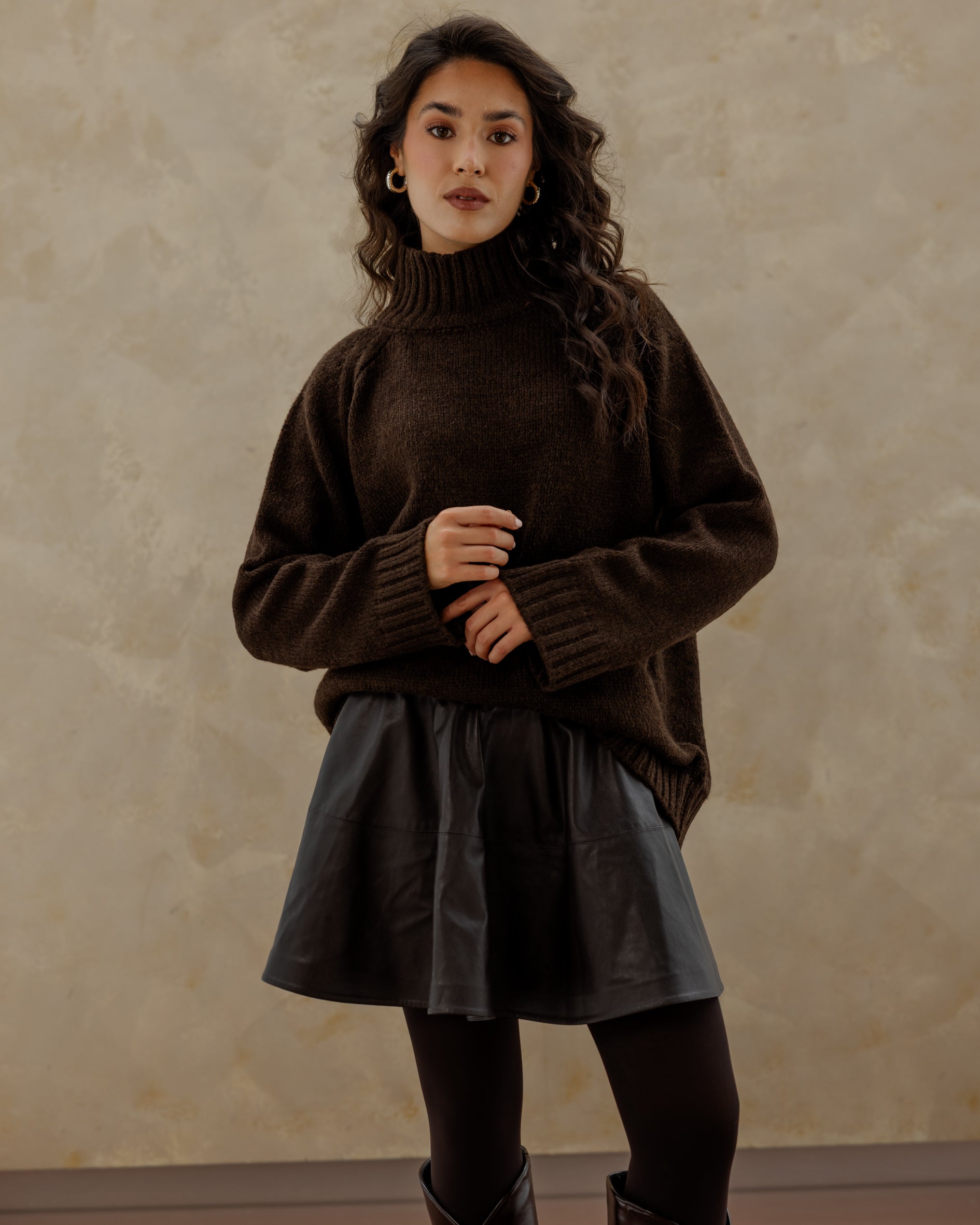 Oversized Knit Sweater - Brown