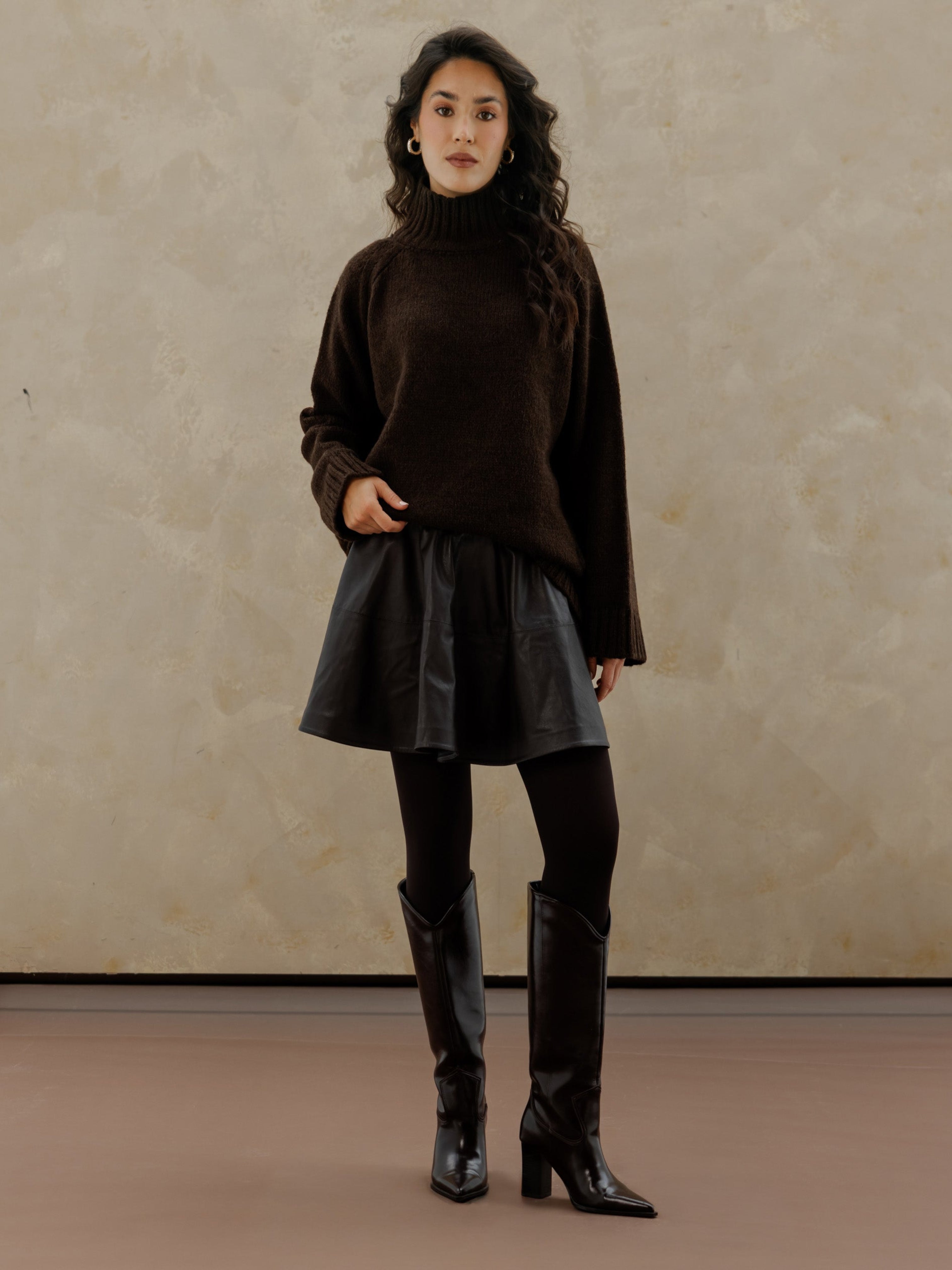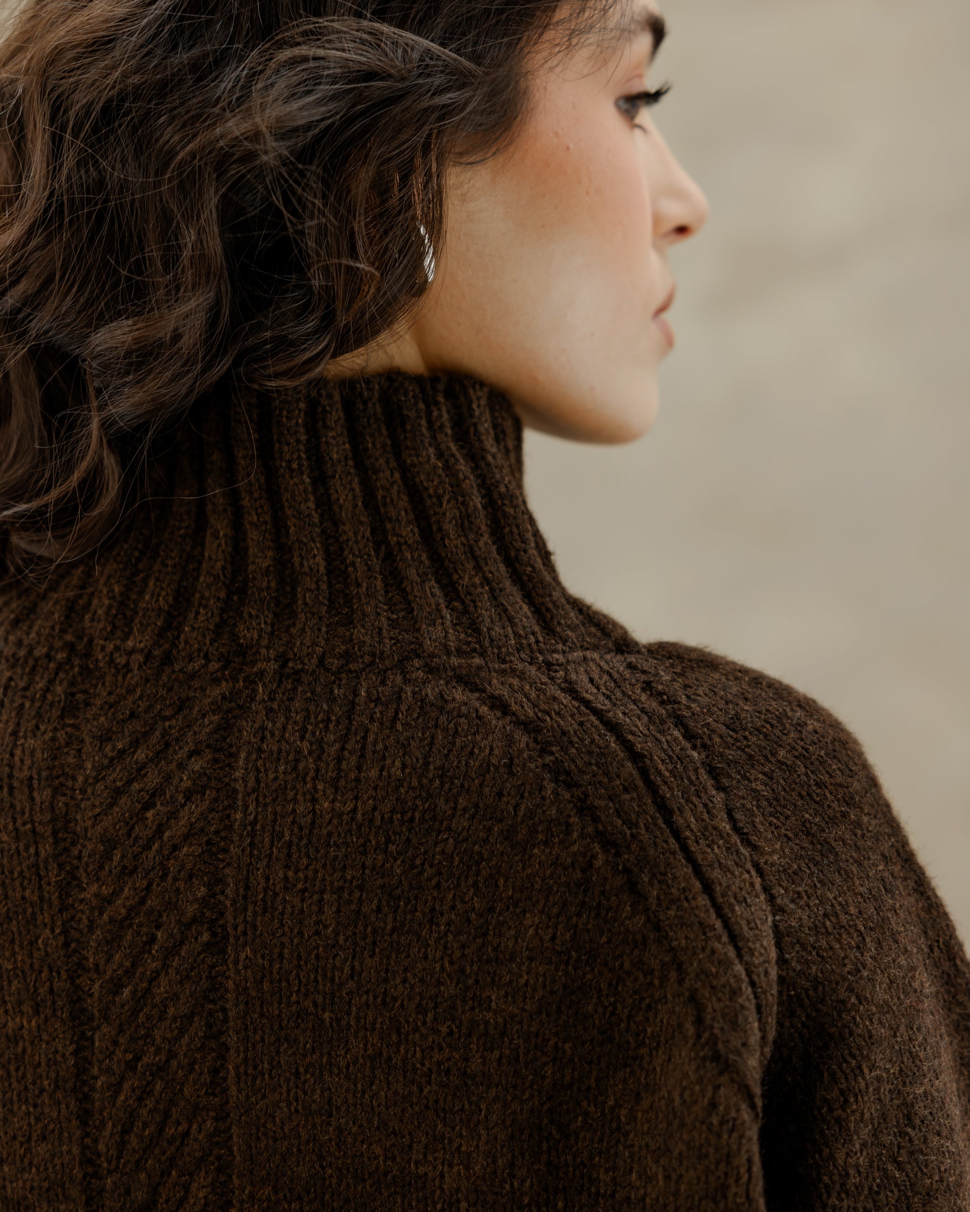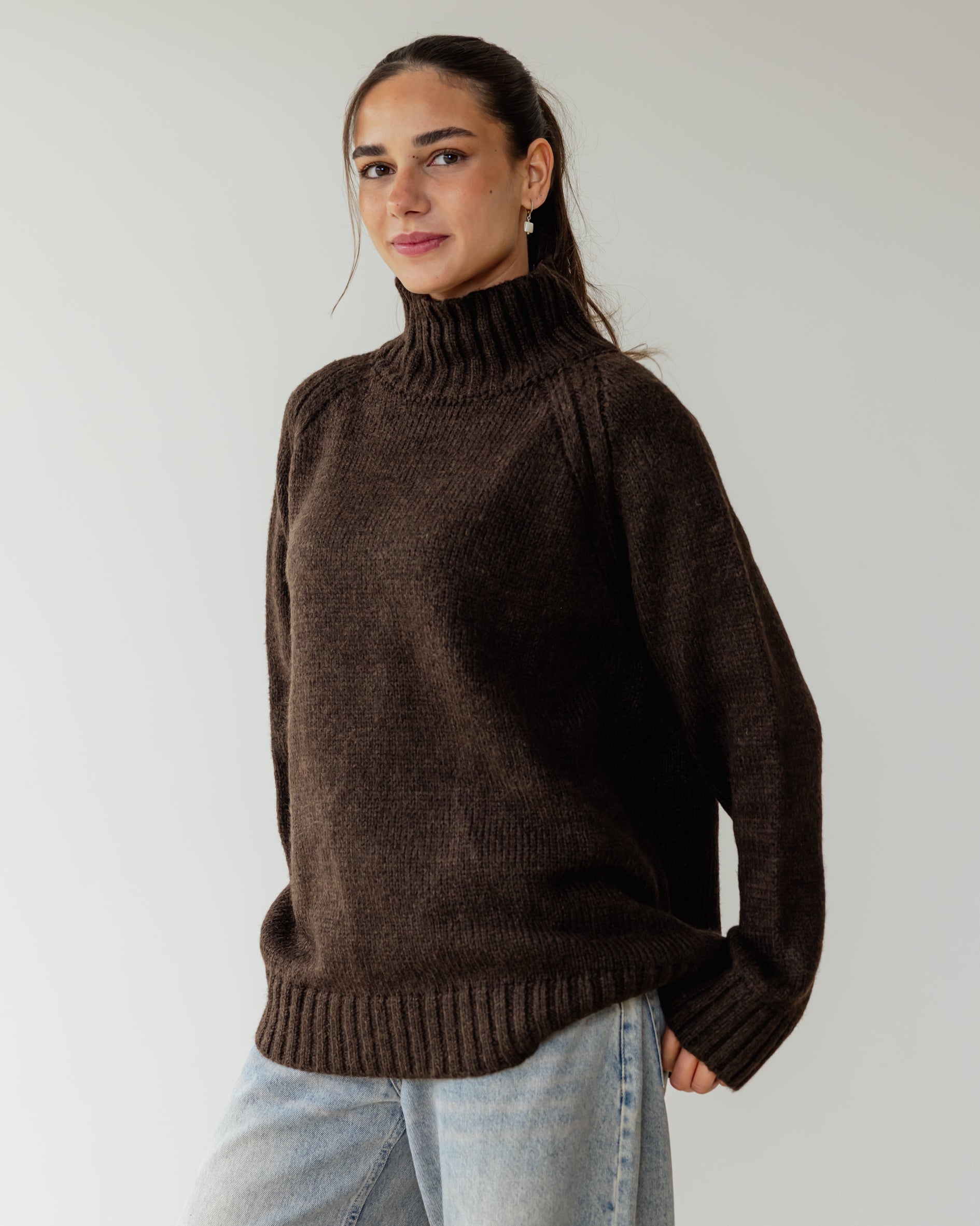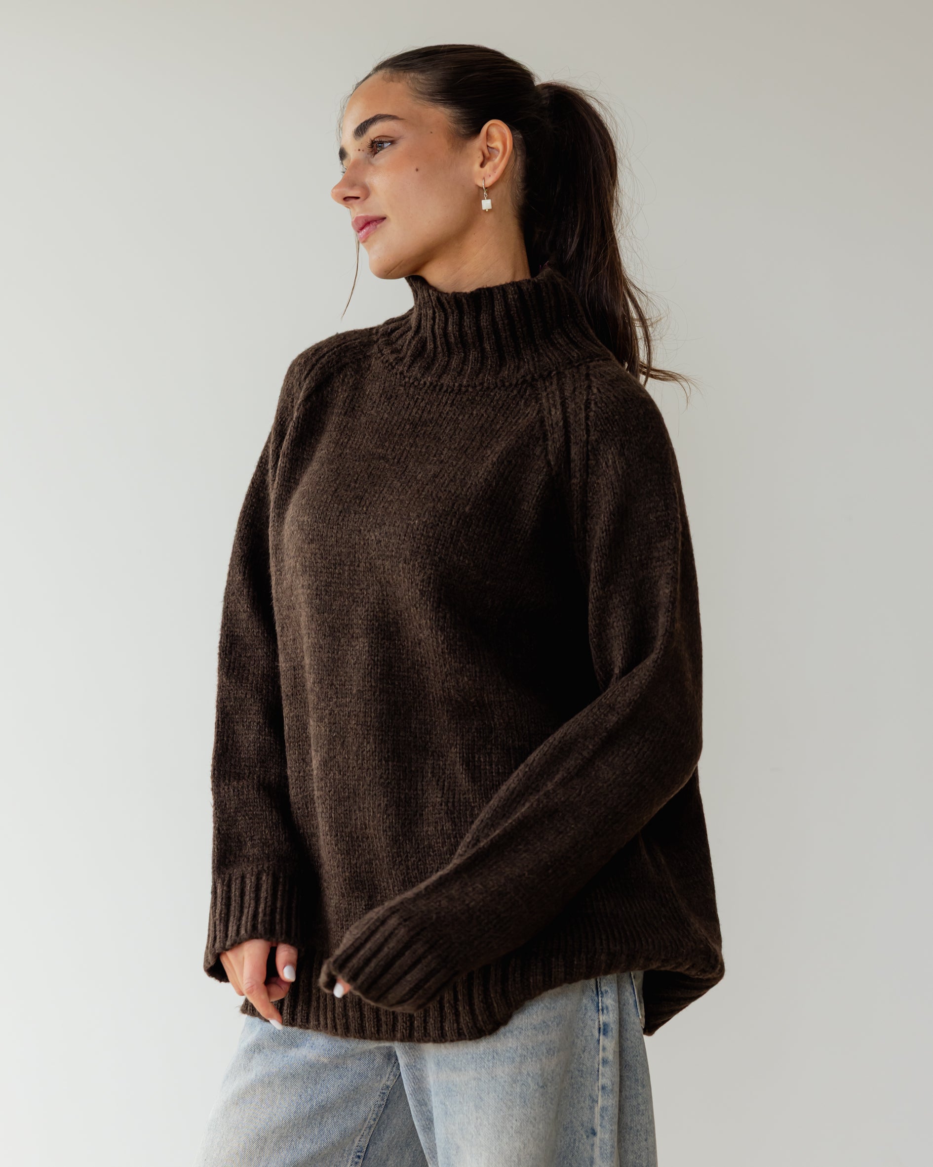 Oversized Knit Sweater - Brown