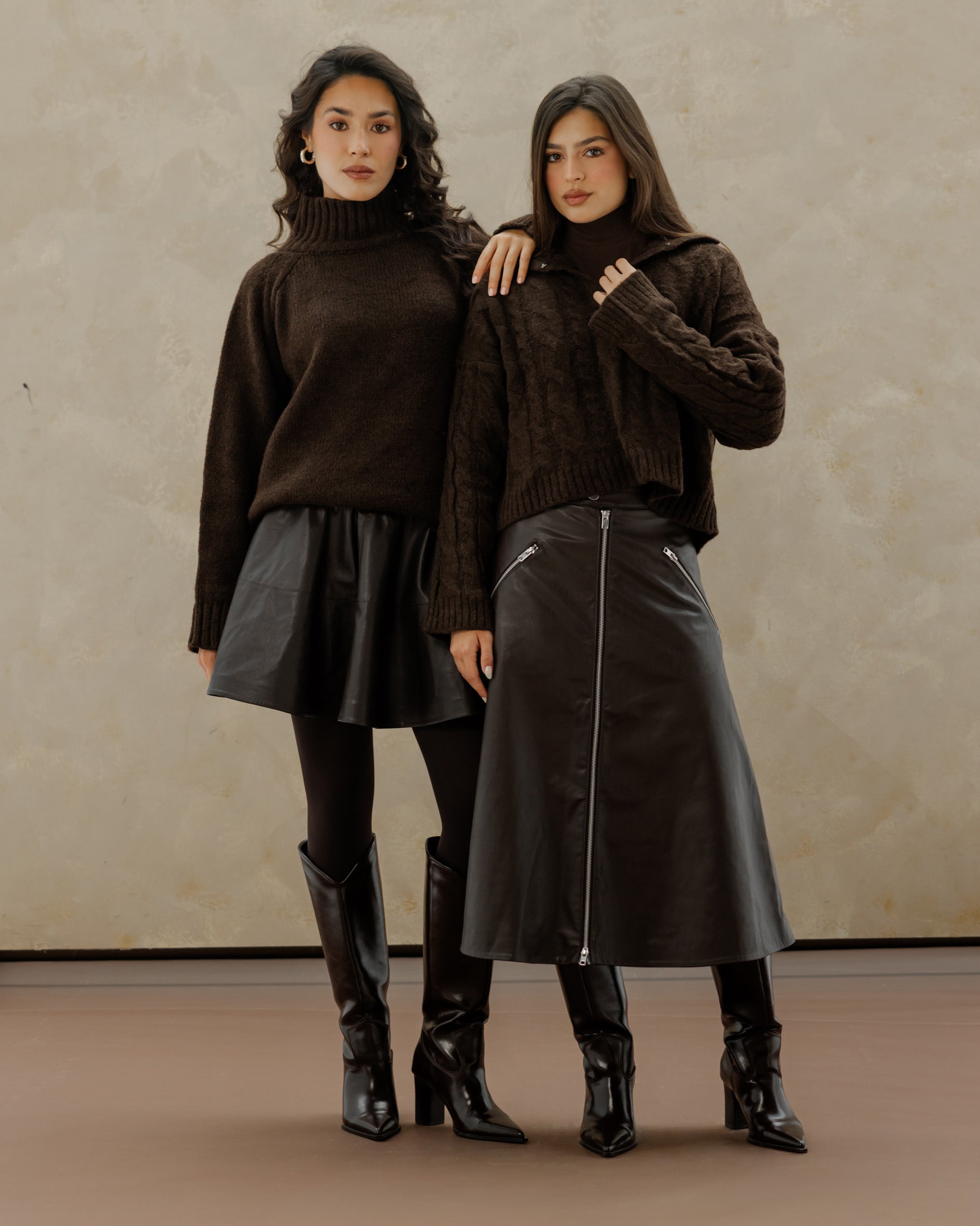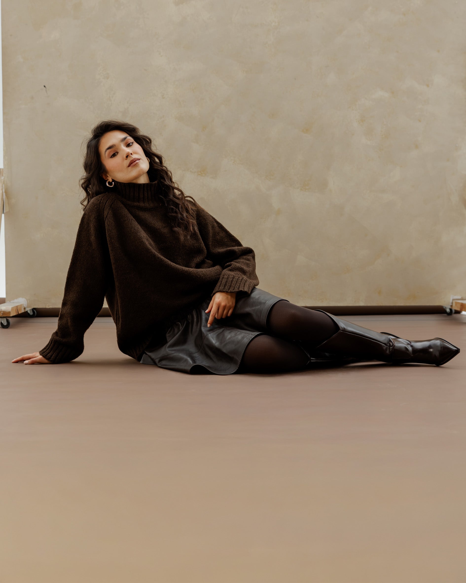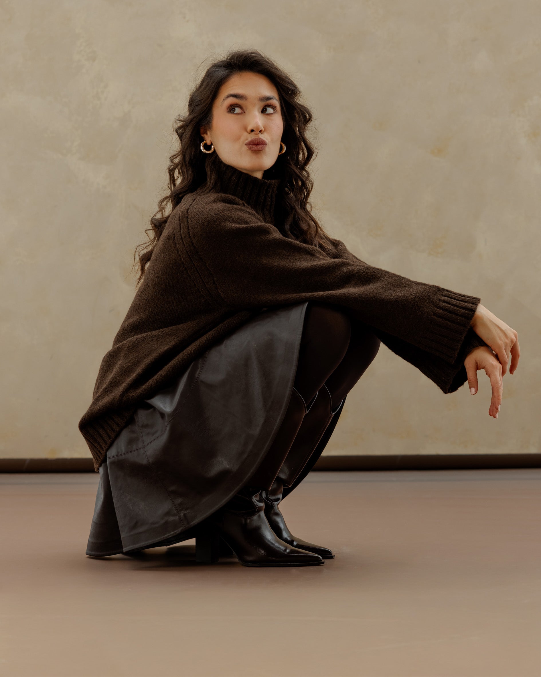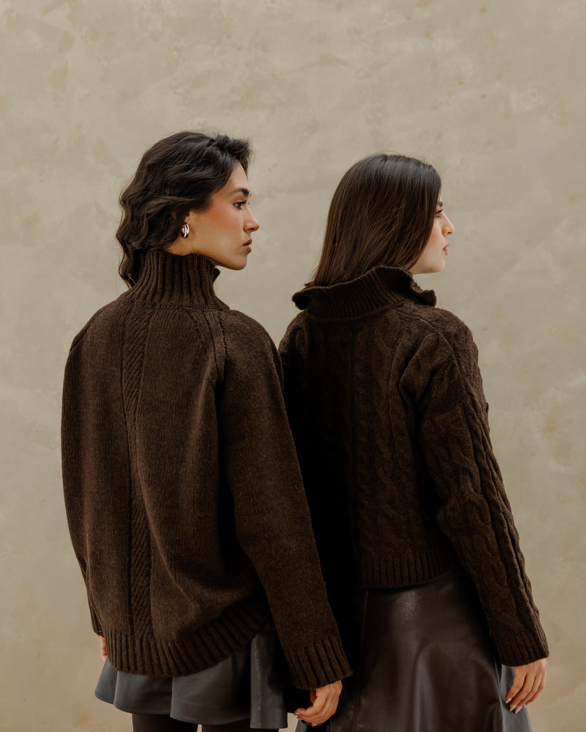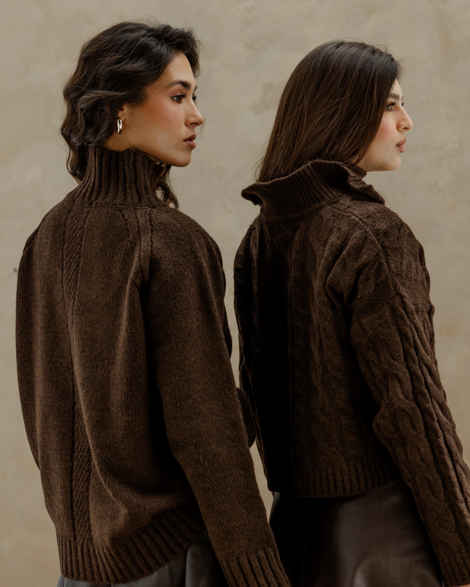 Oversized Knit Sweater - Brown