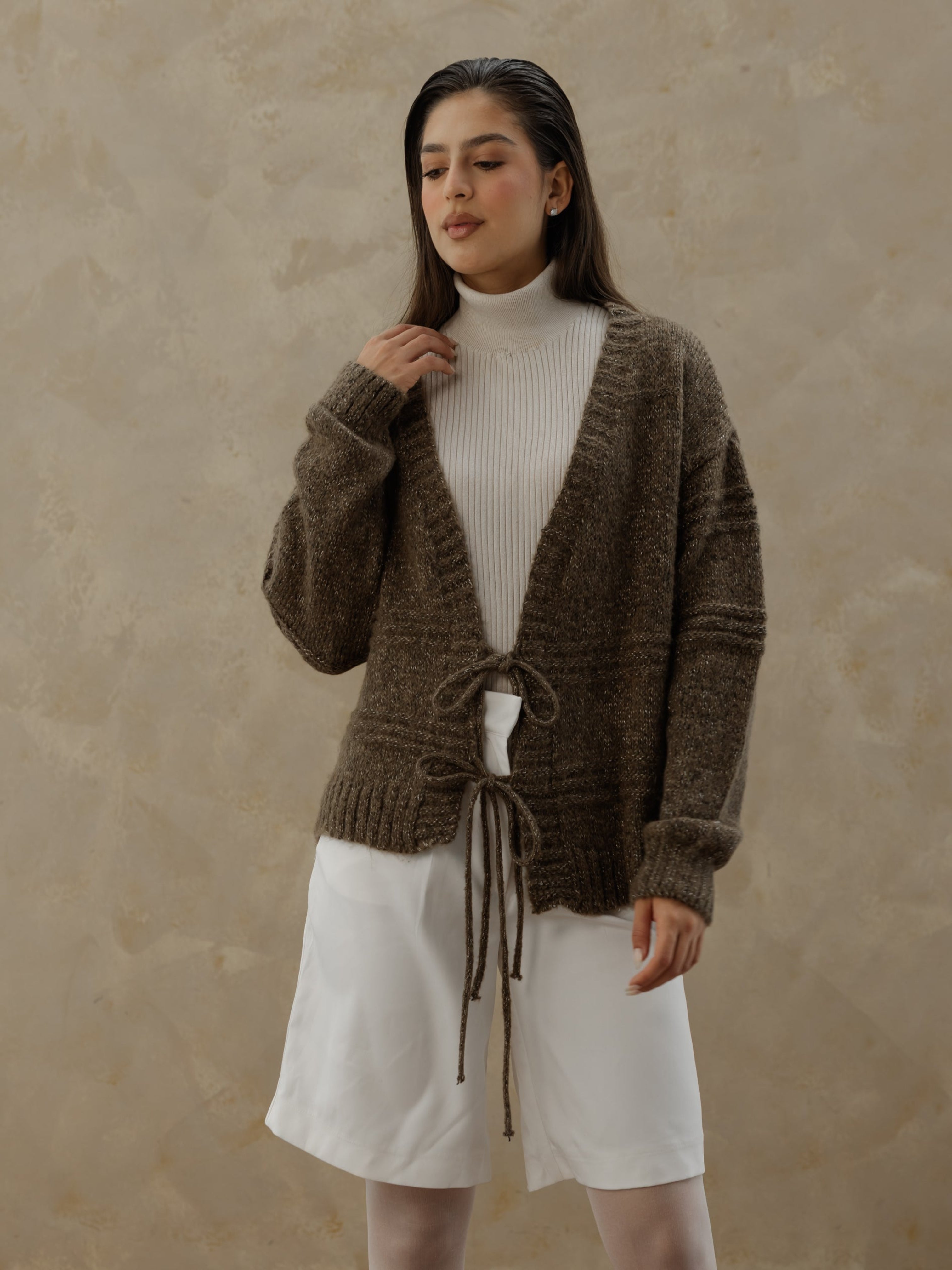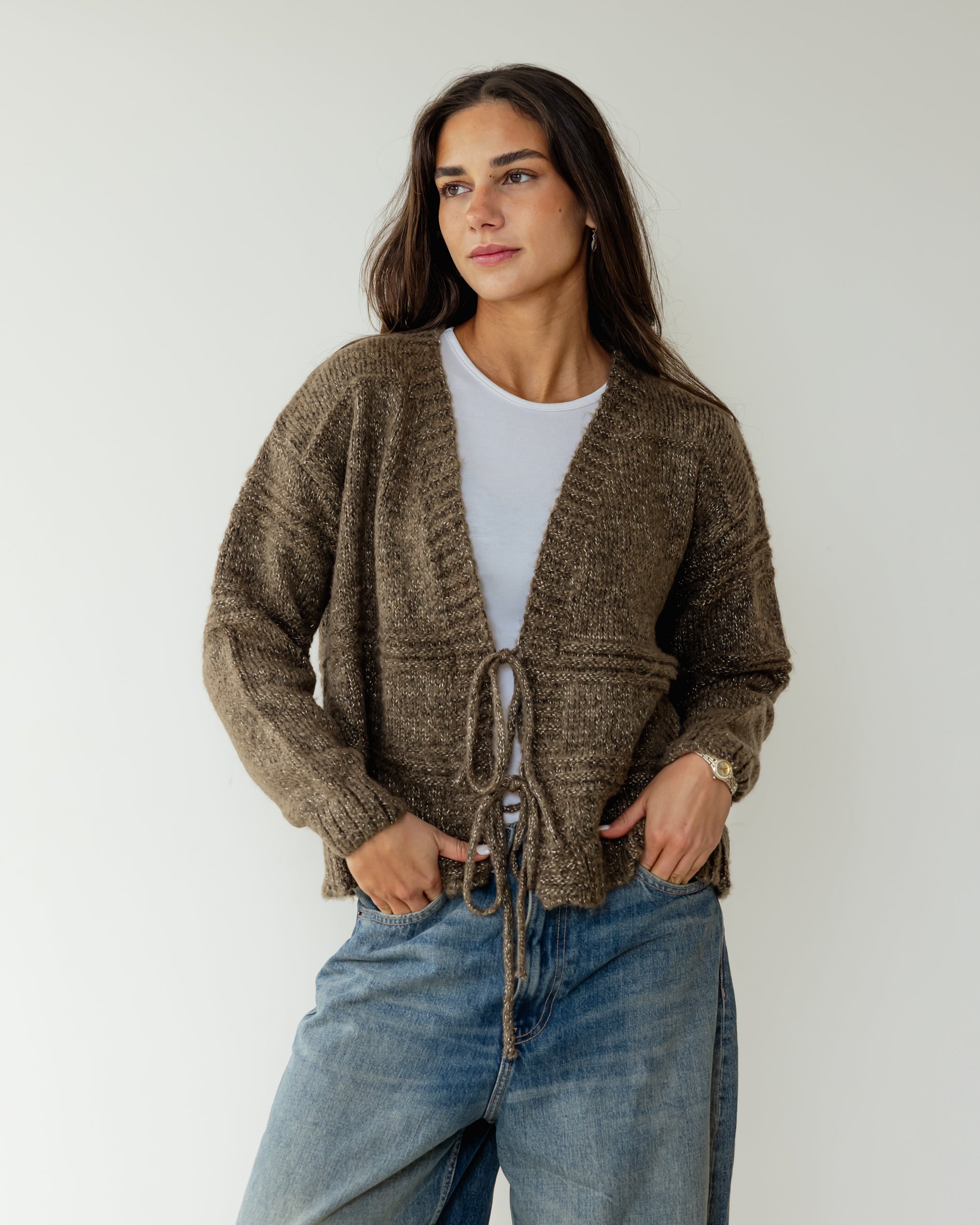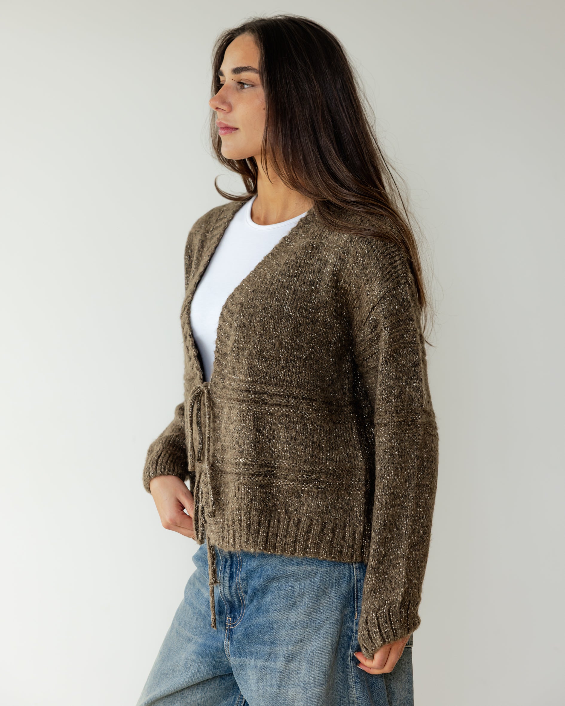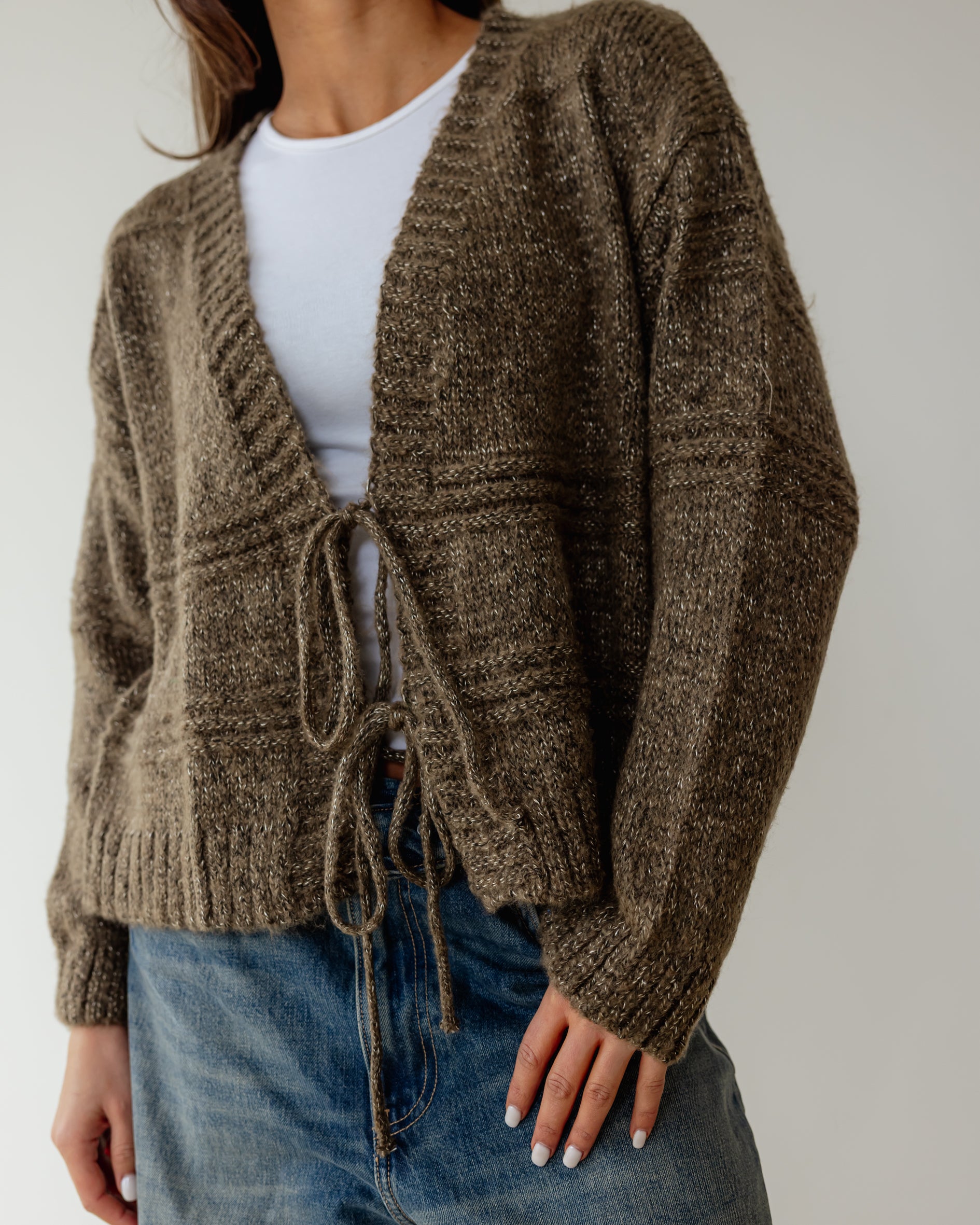 Tie Knit Cardi - Stone Brown