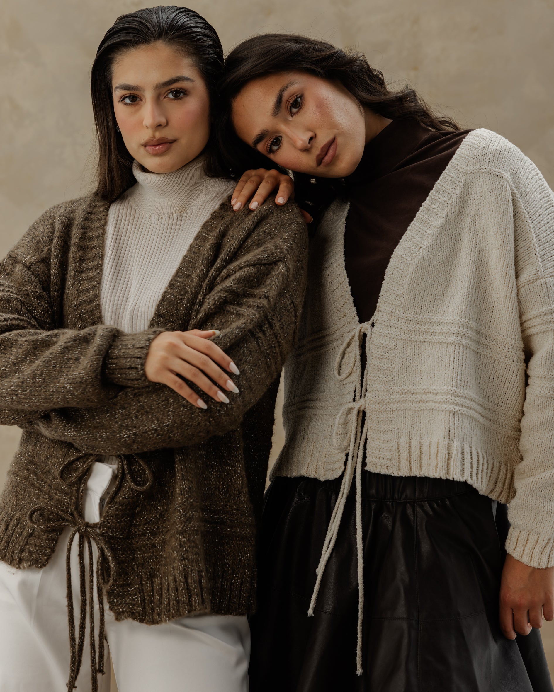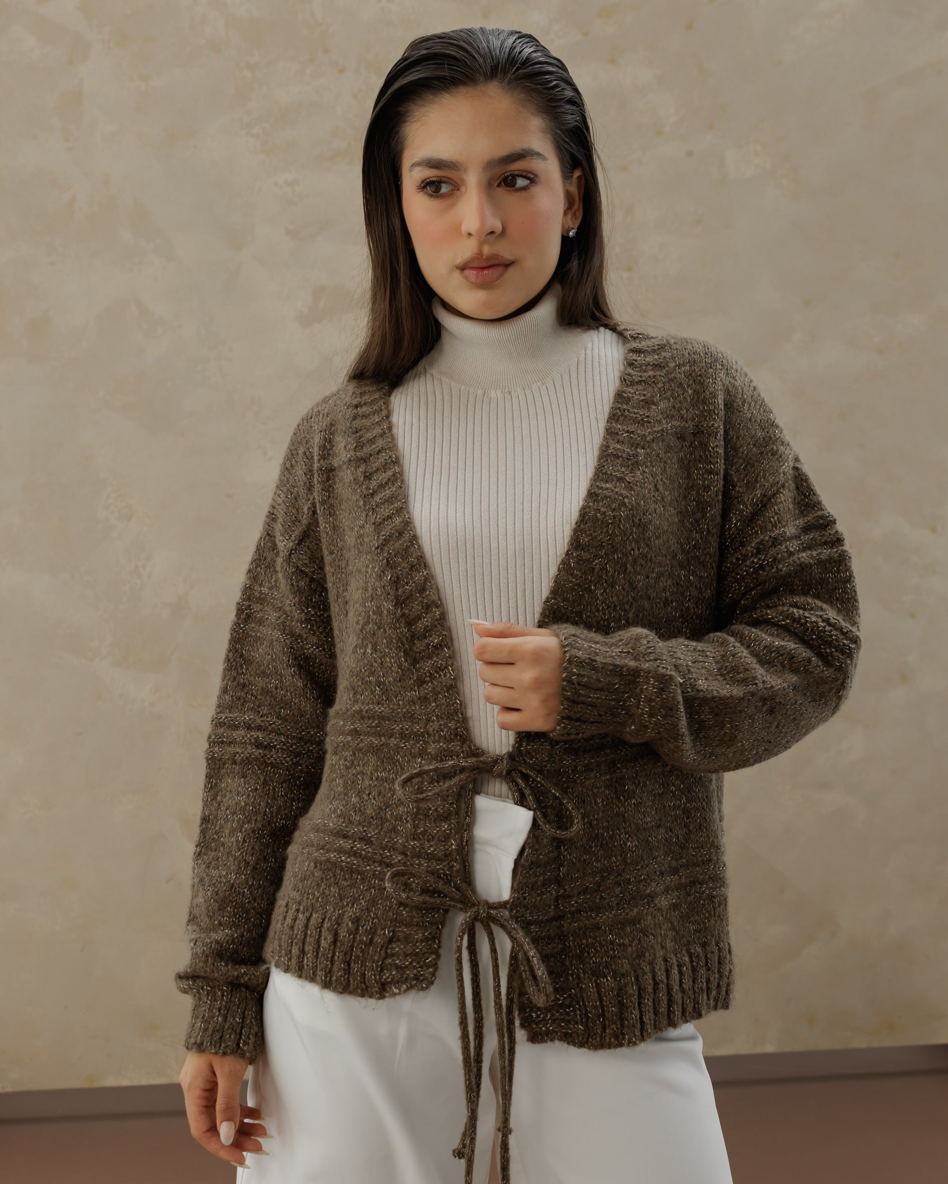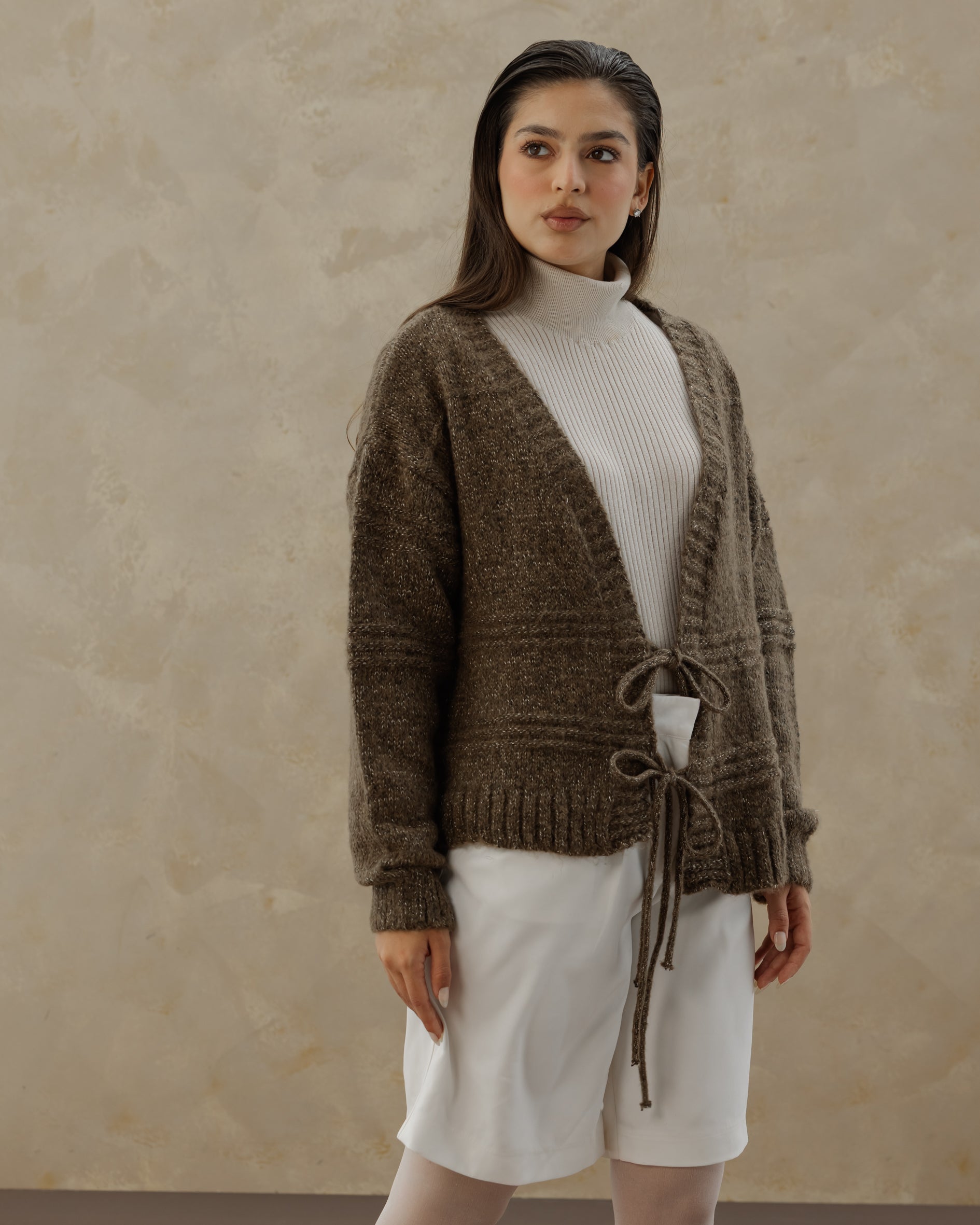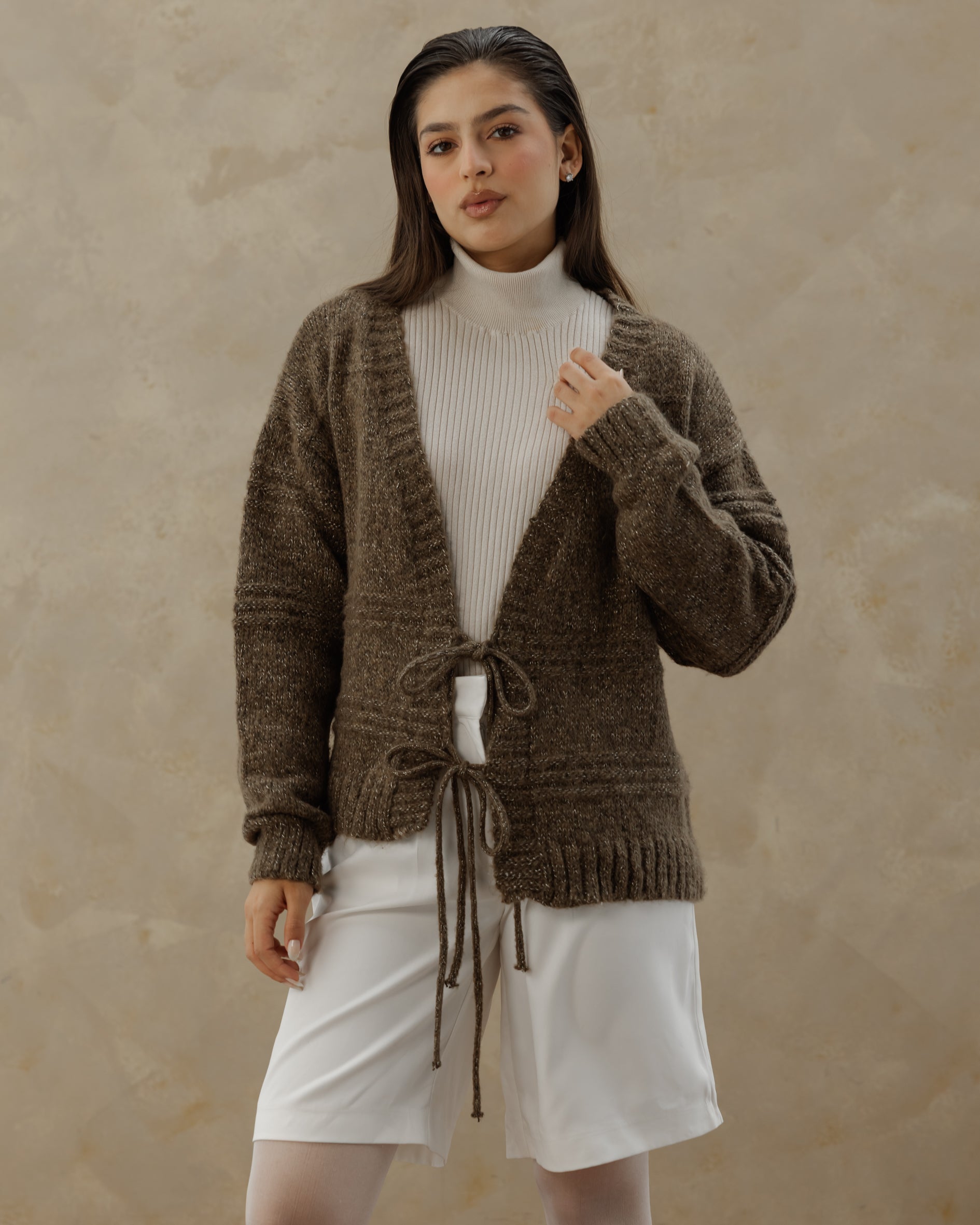 Tie Knit Cardi - Stone Brown