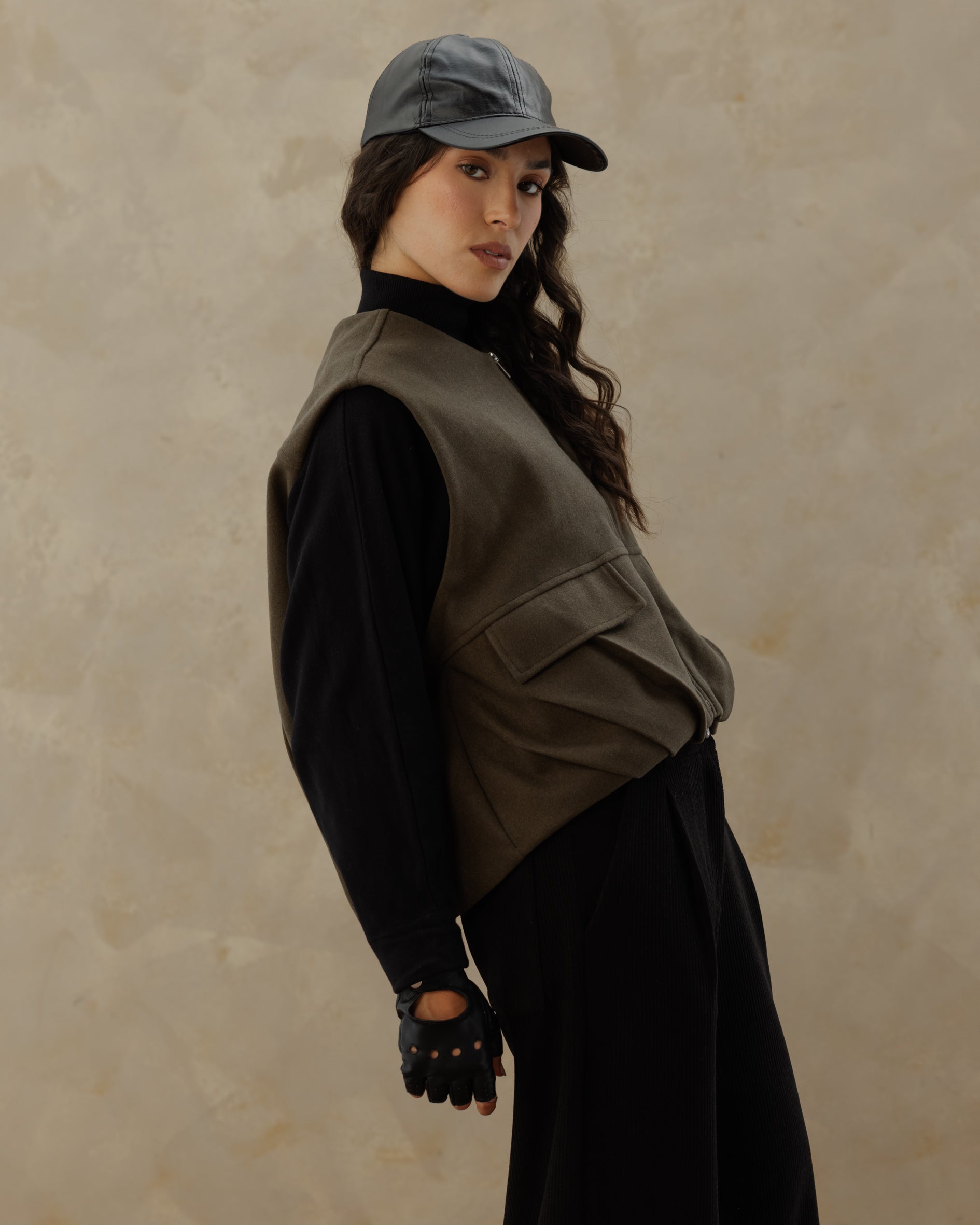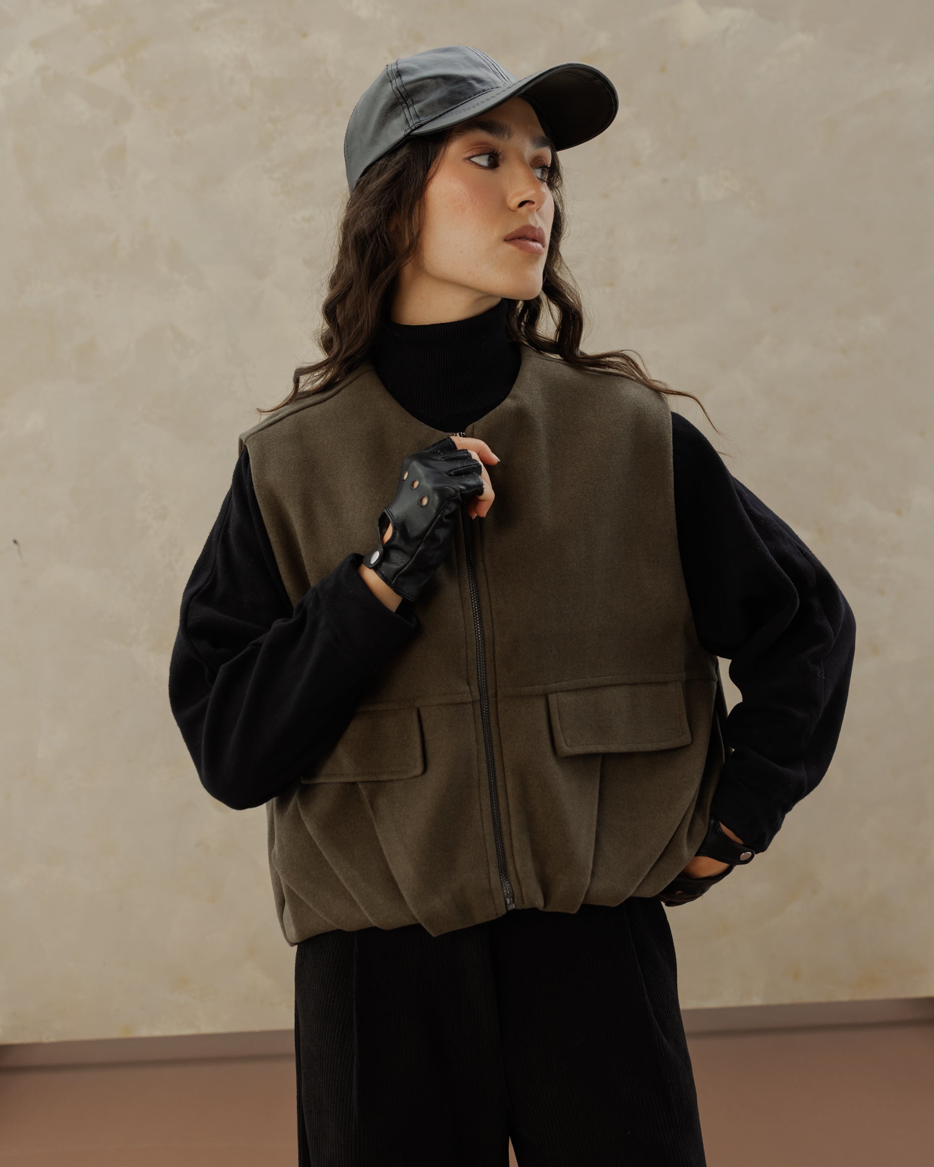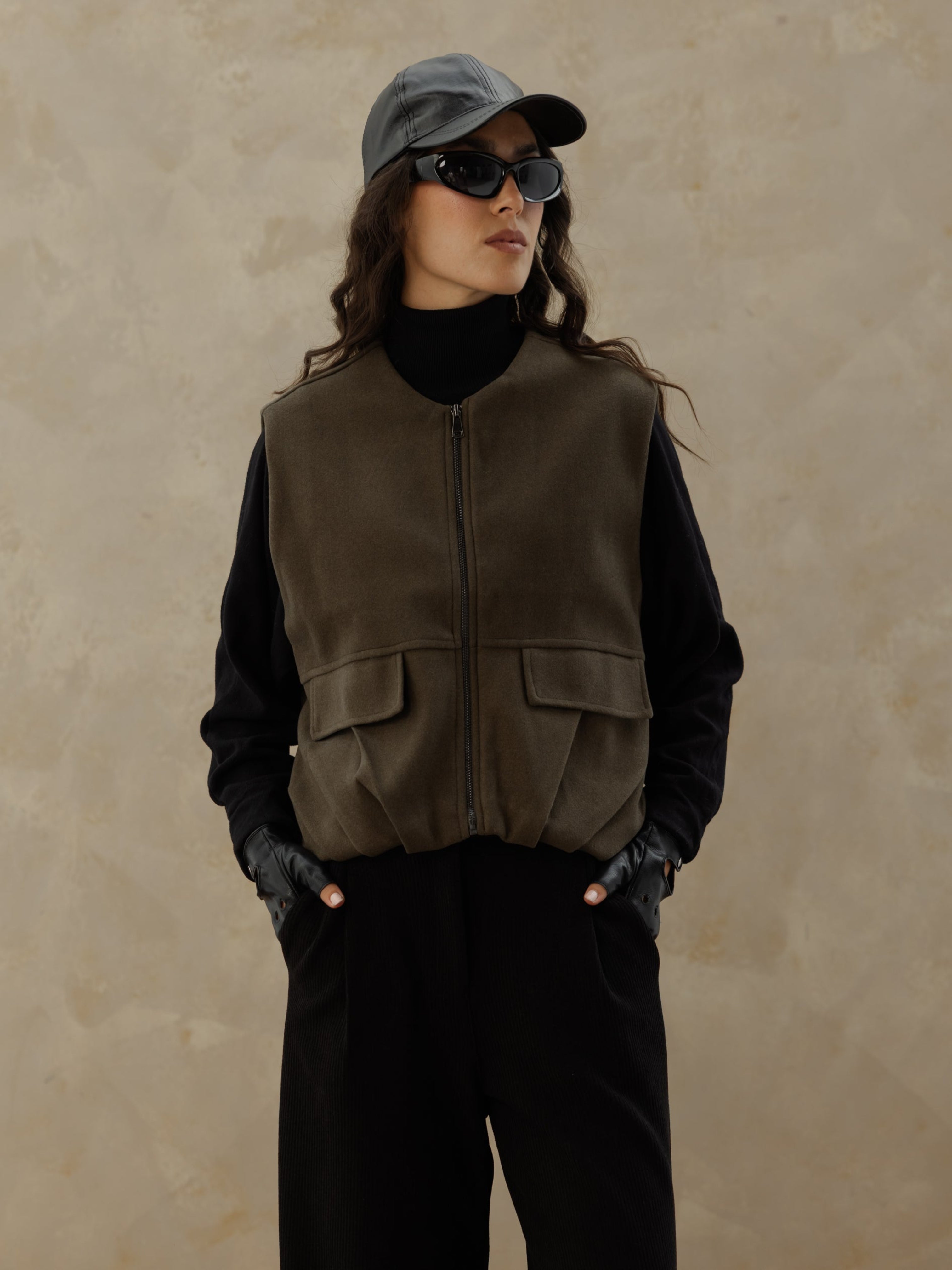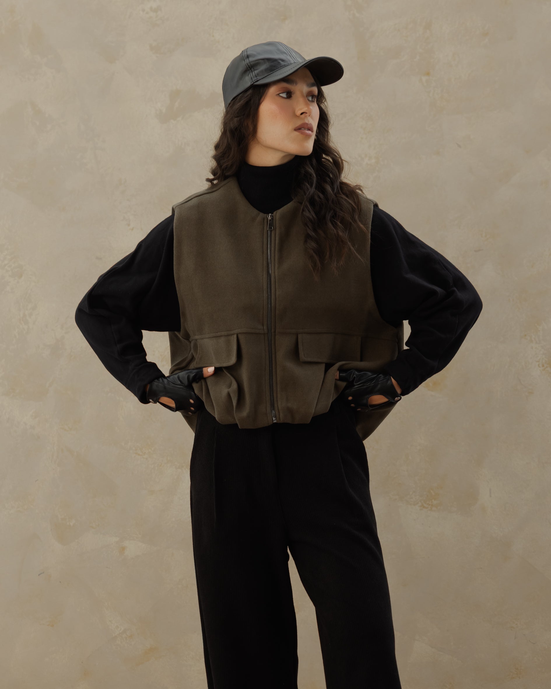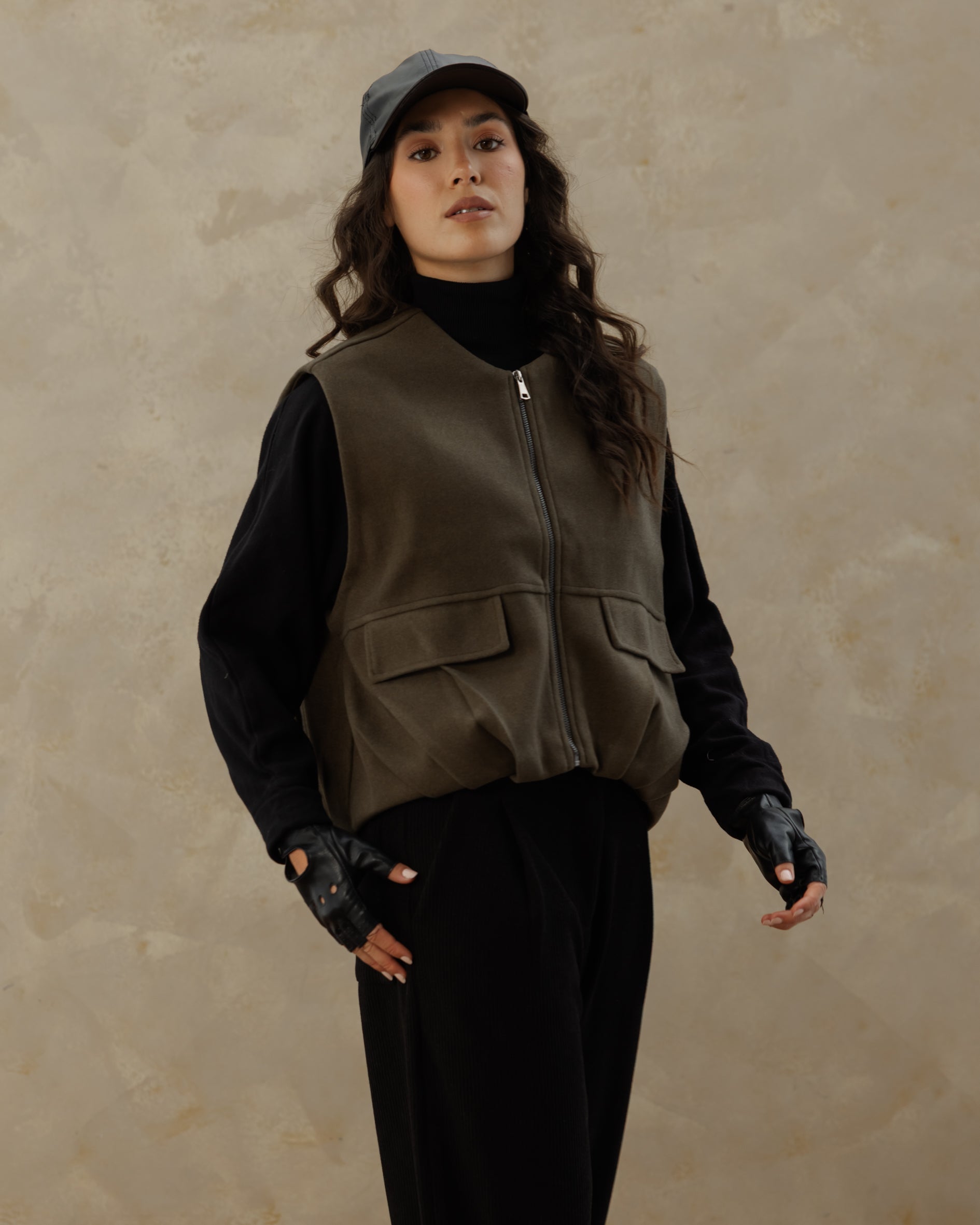 The Zip UP Vest - olive