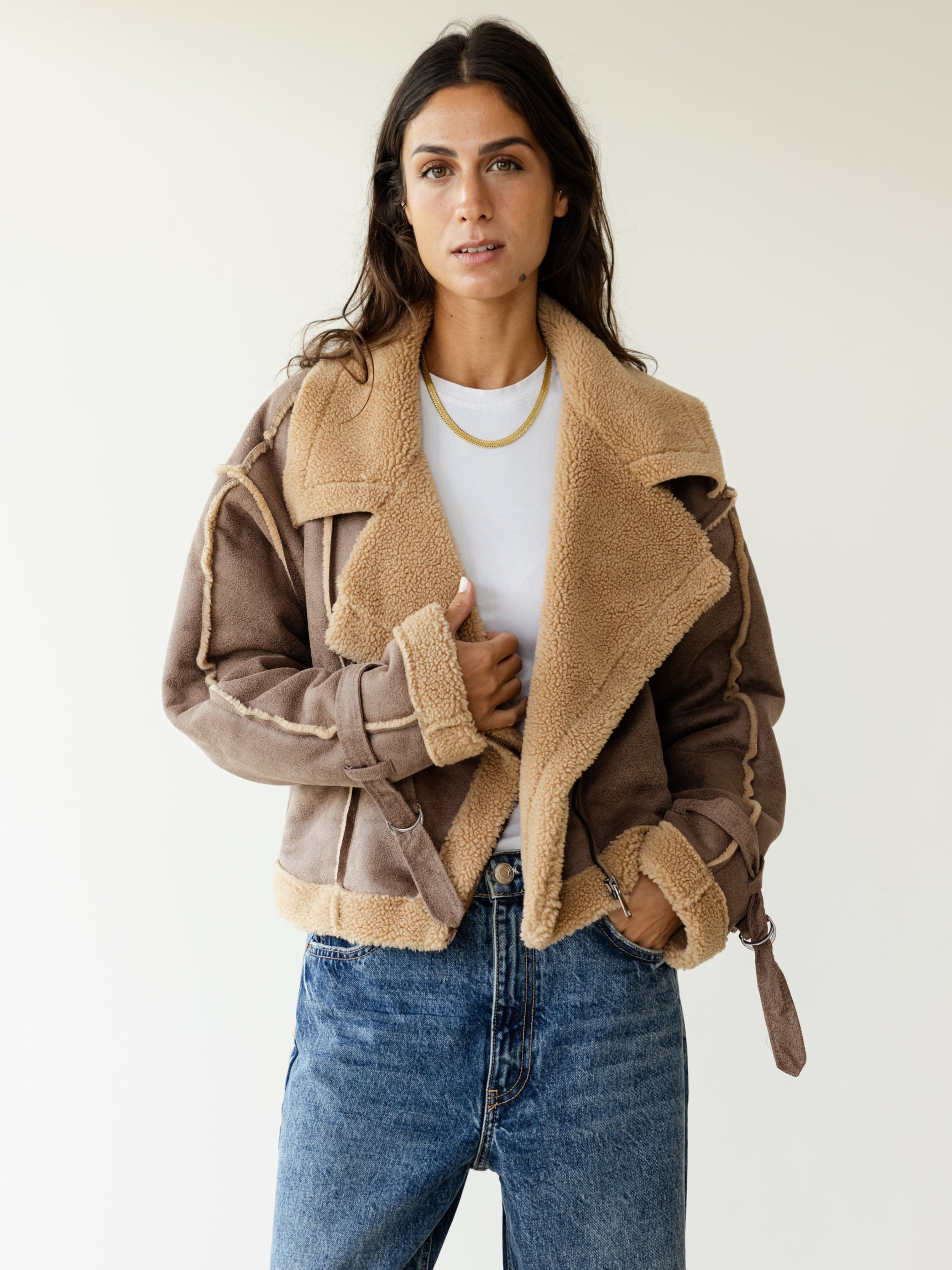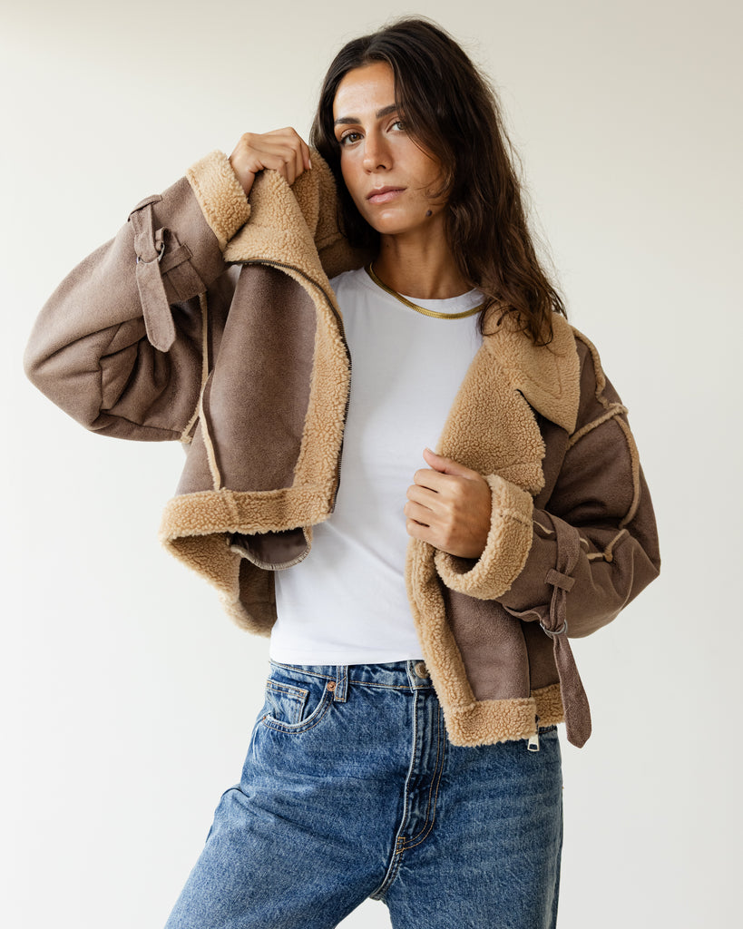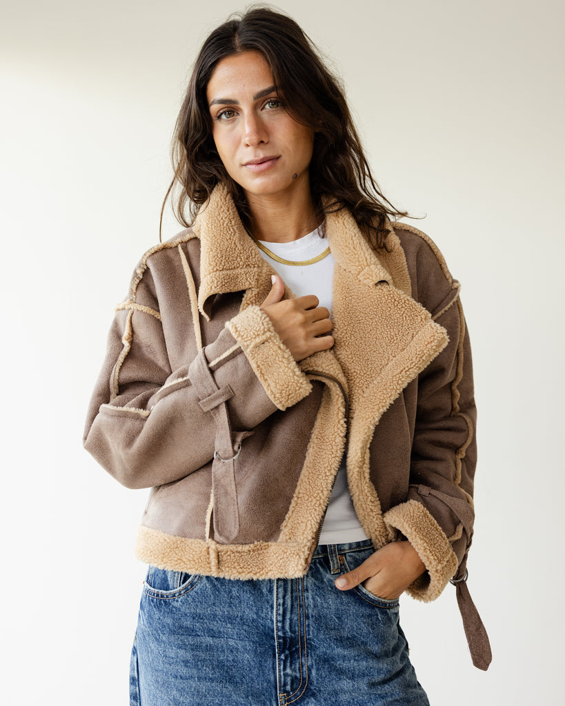 Fleece Biker Jacket - Sandstone