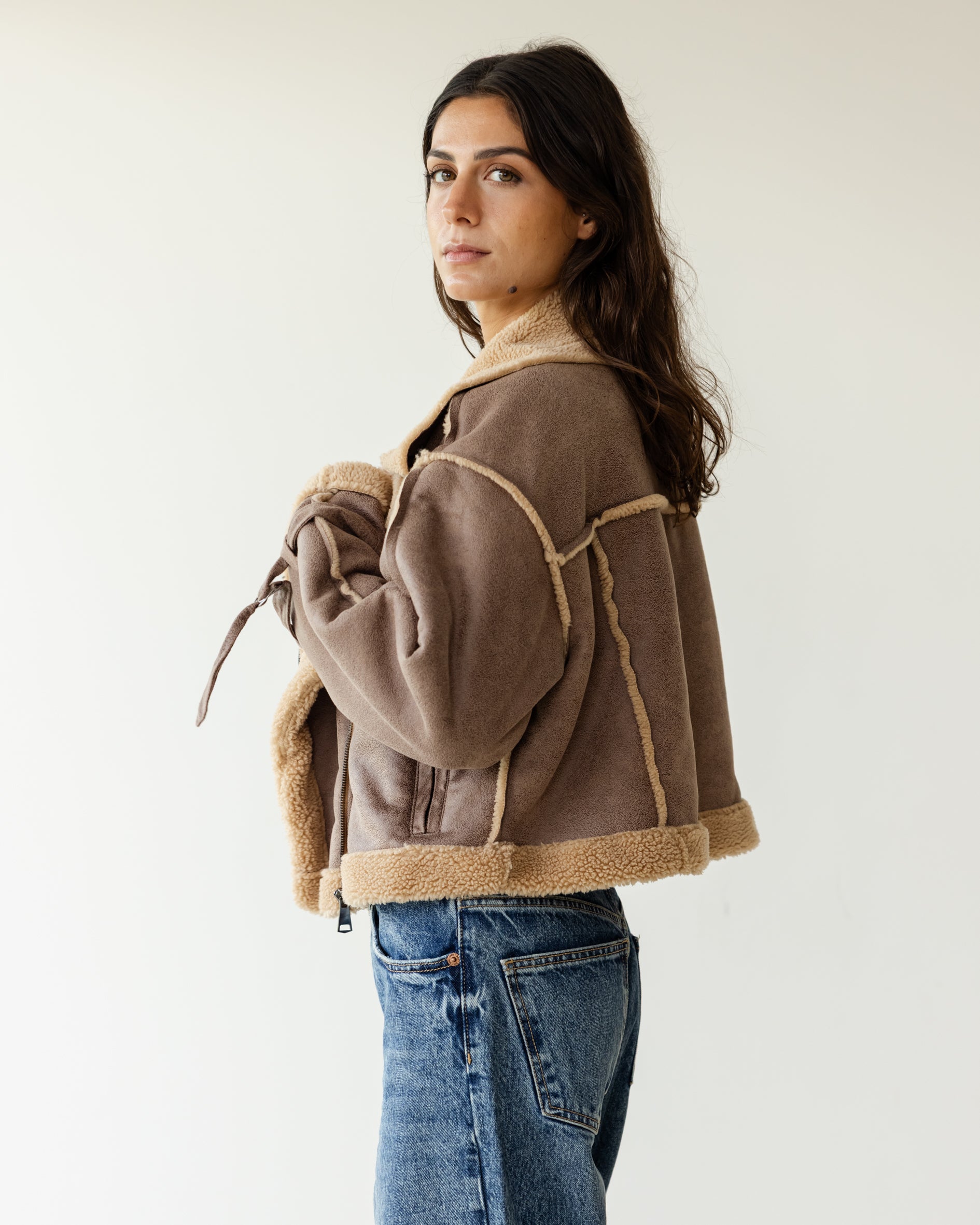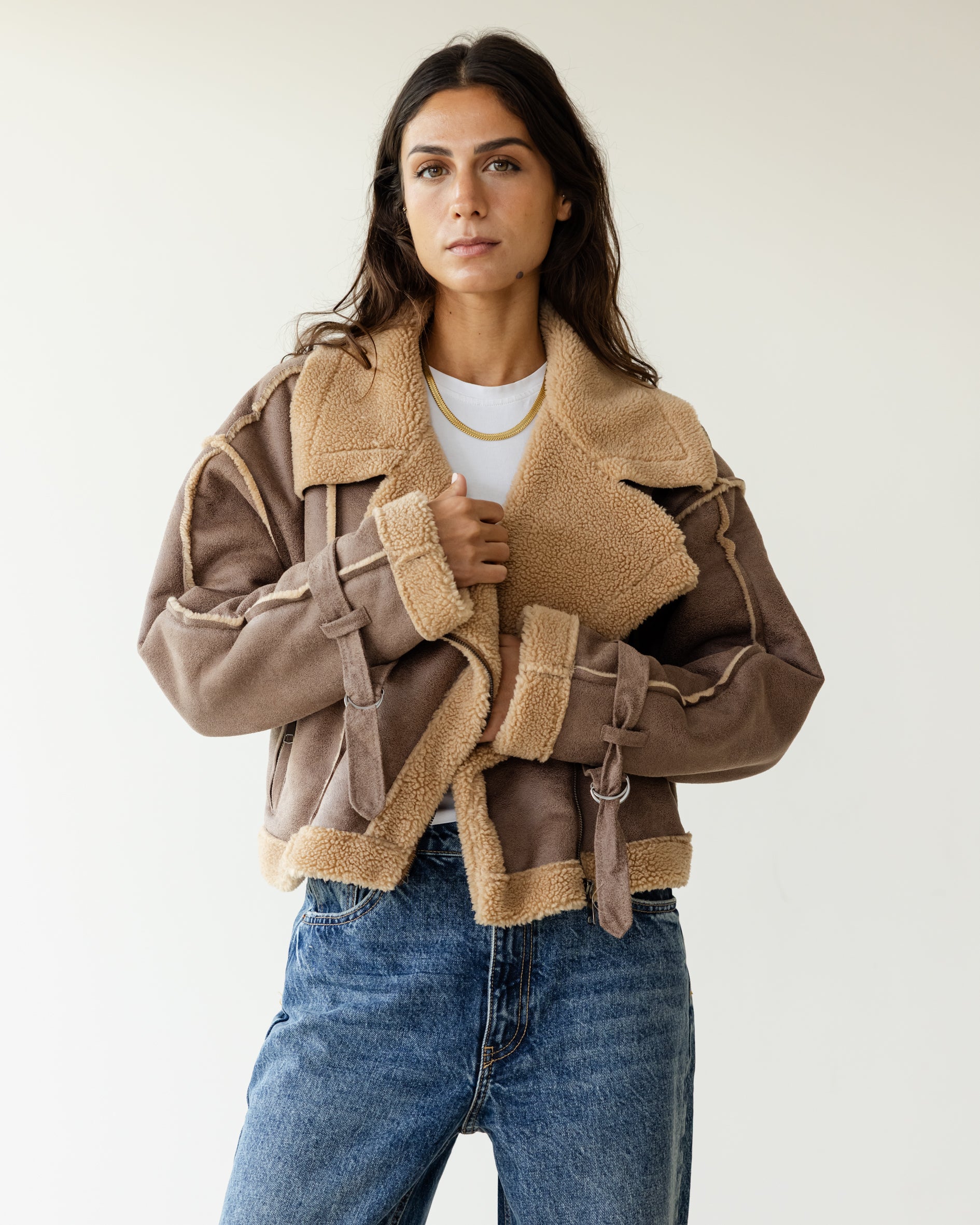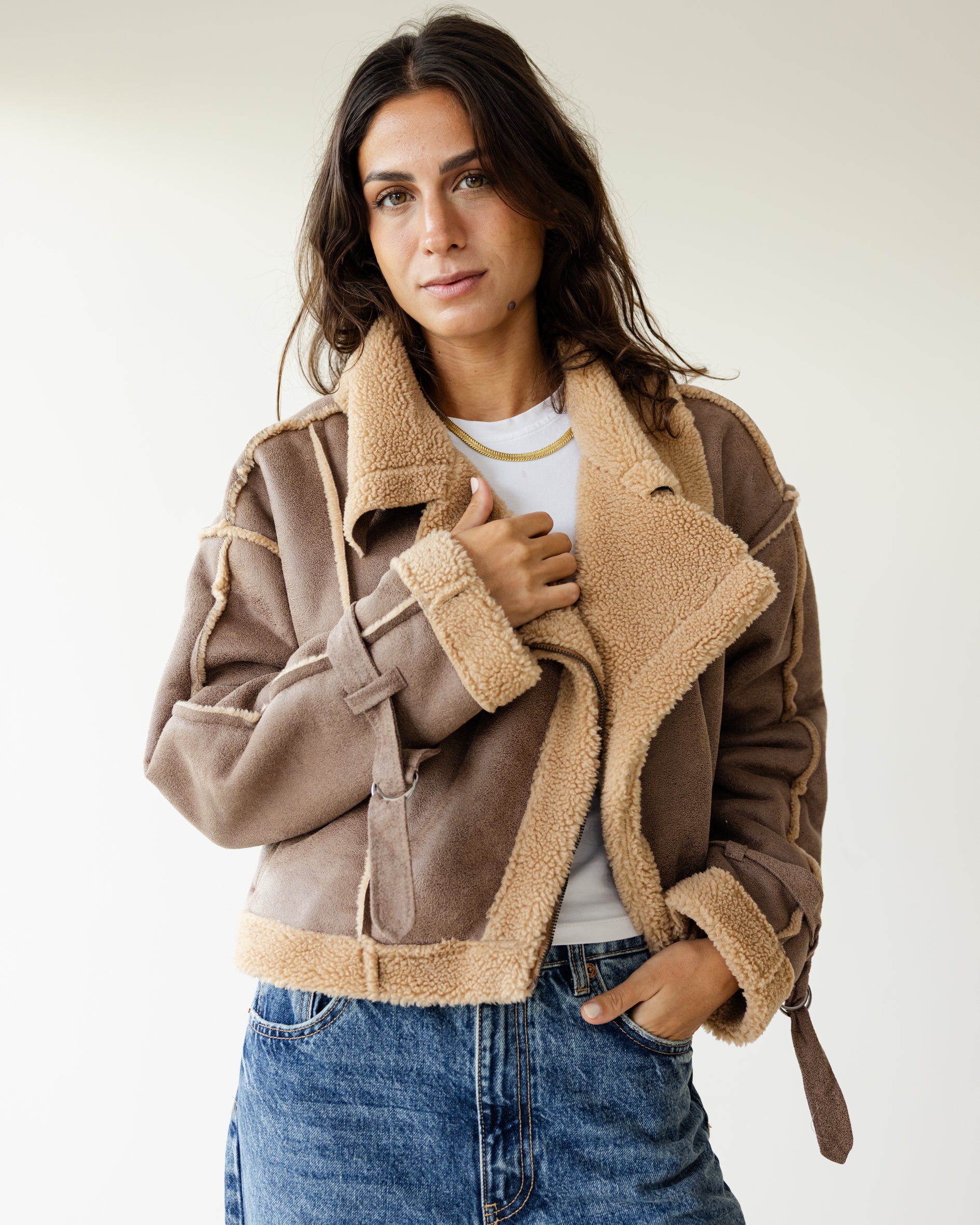 Fleece Biker Jacket - Sandstone