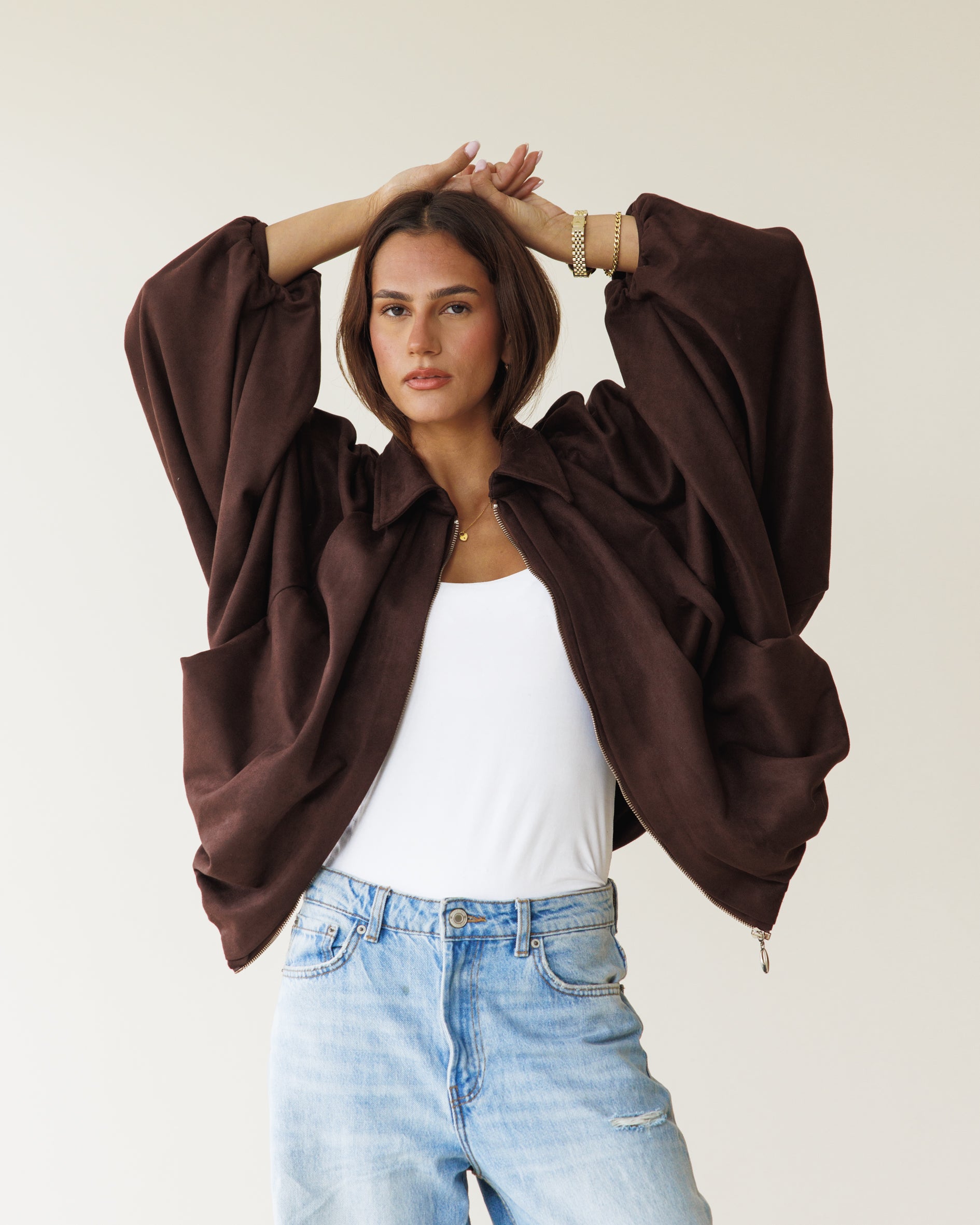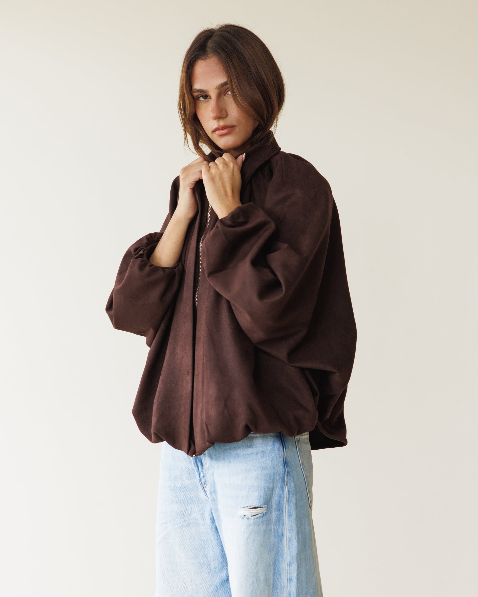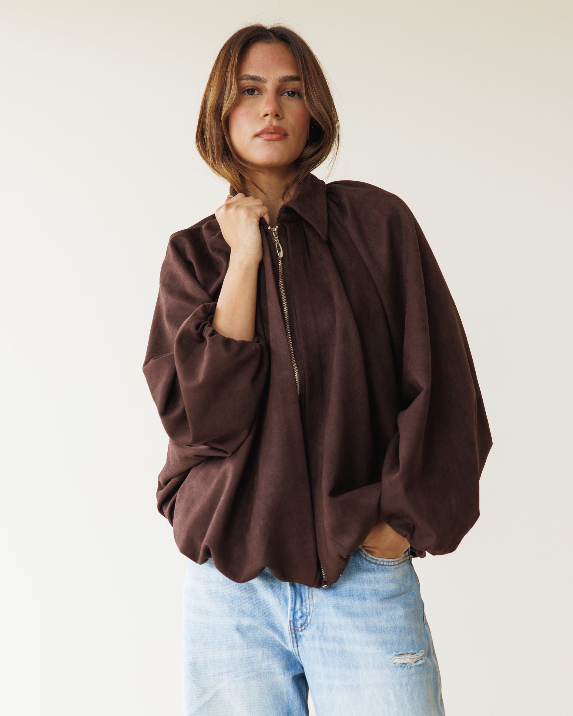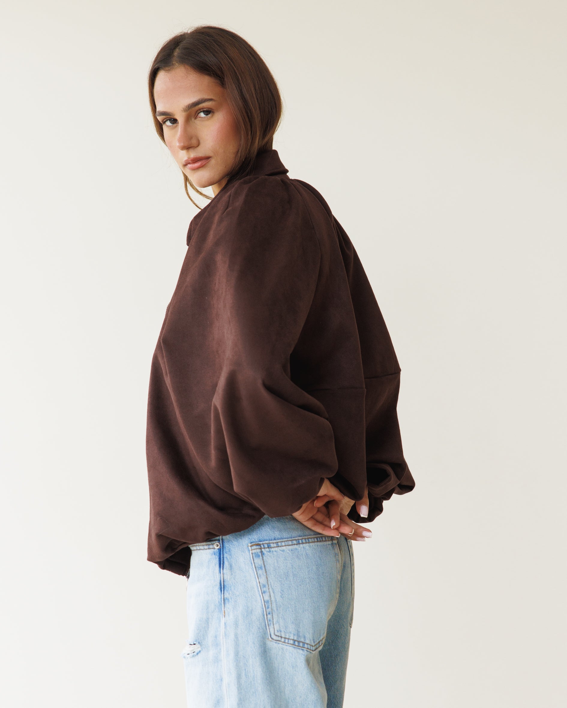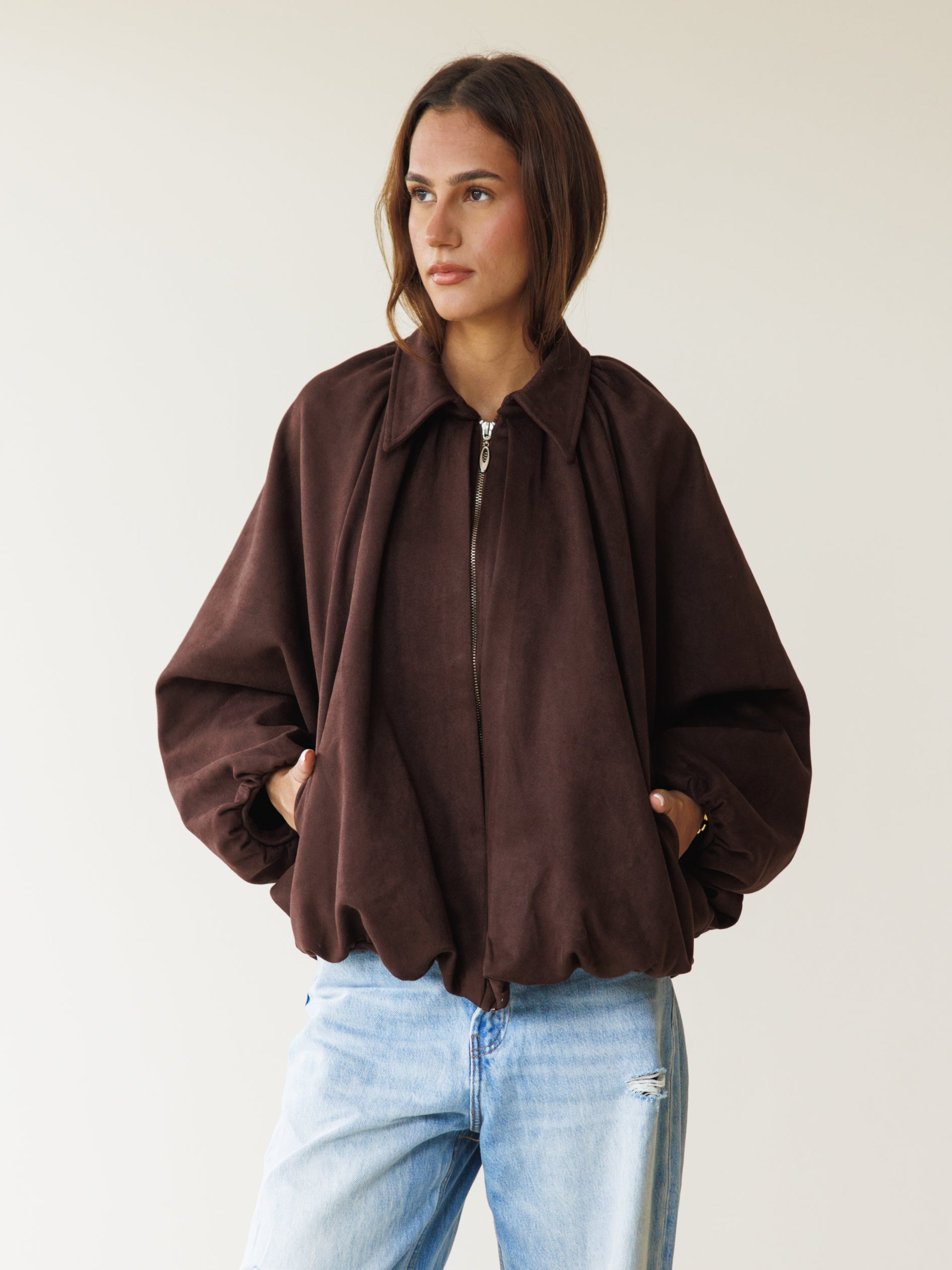 Suede Bomber Jacket - Brown