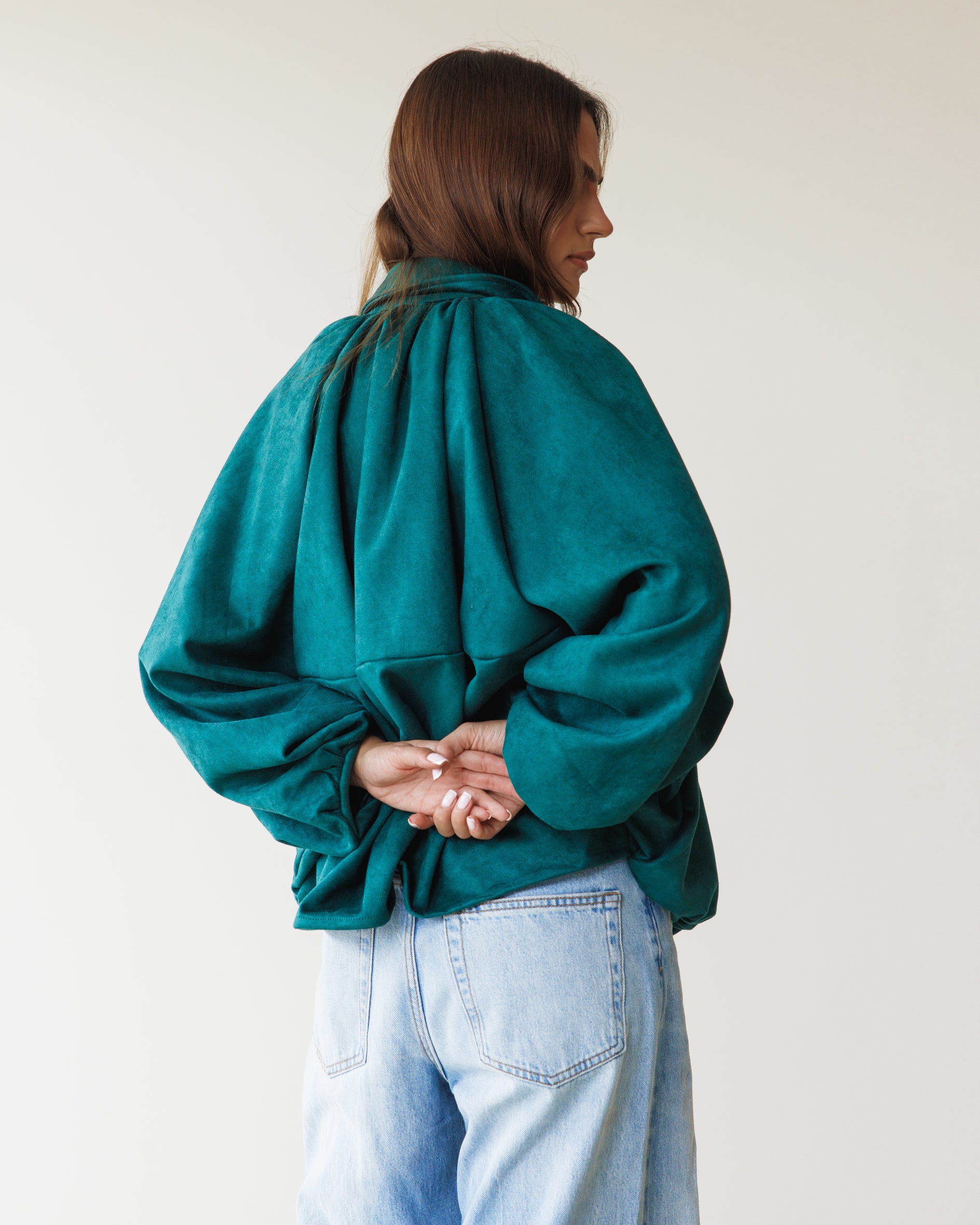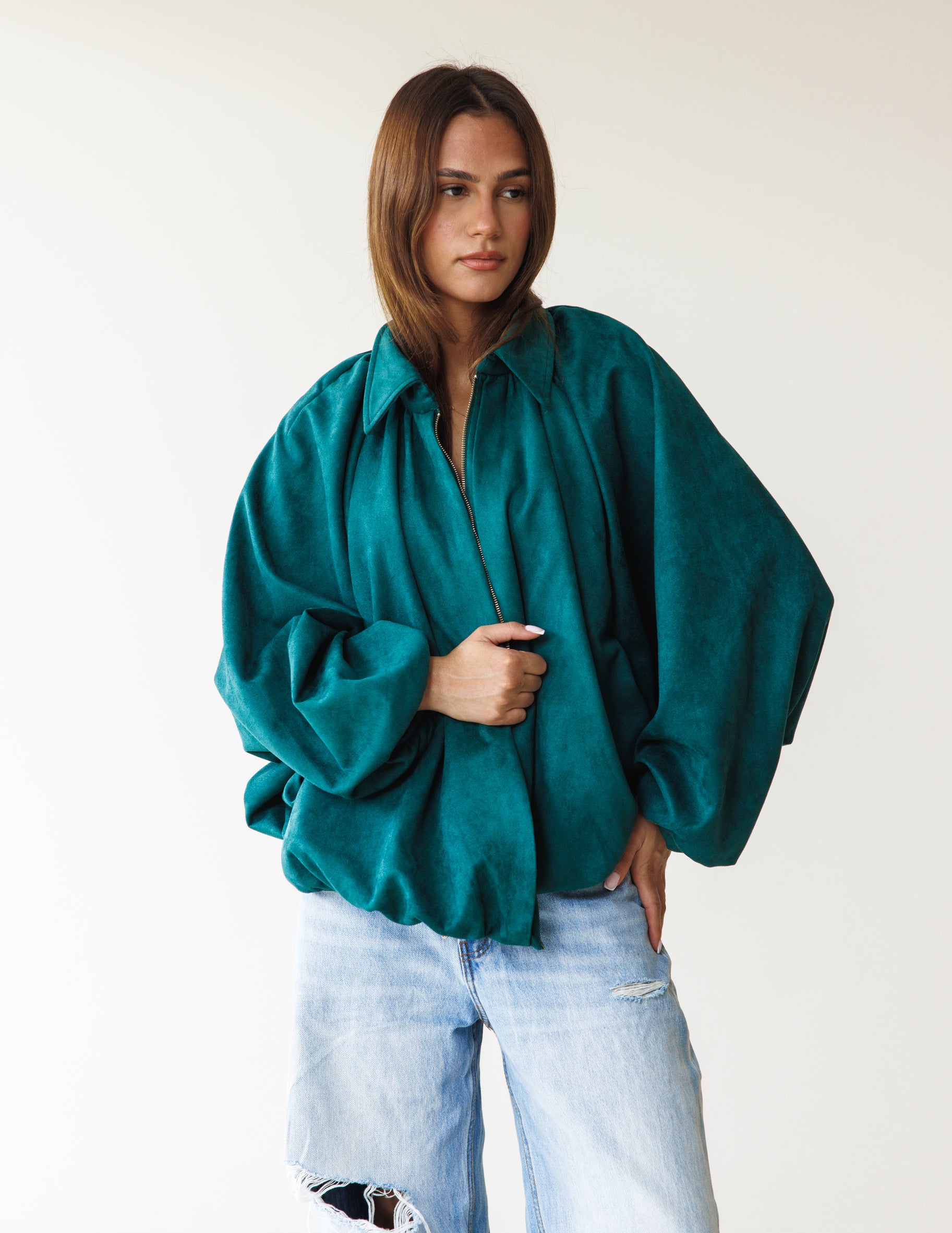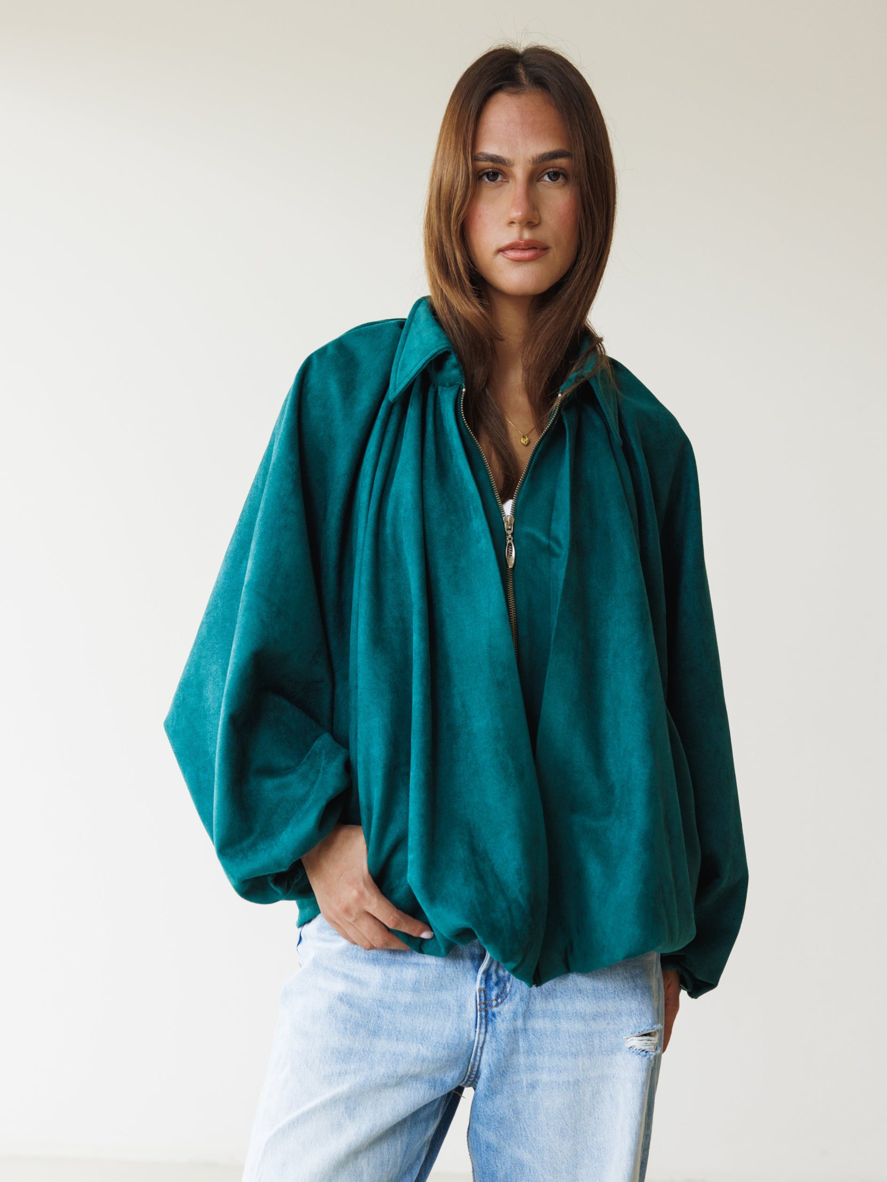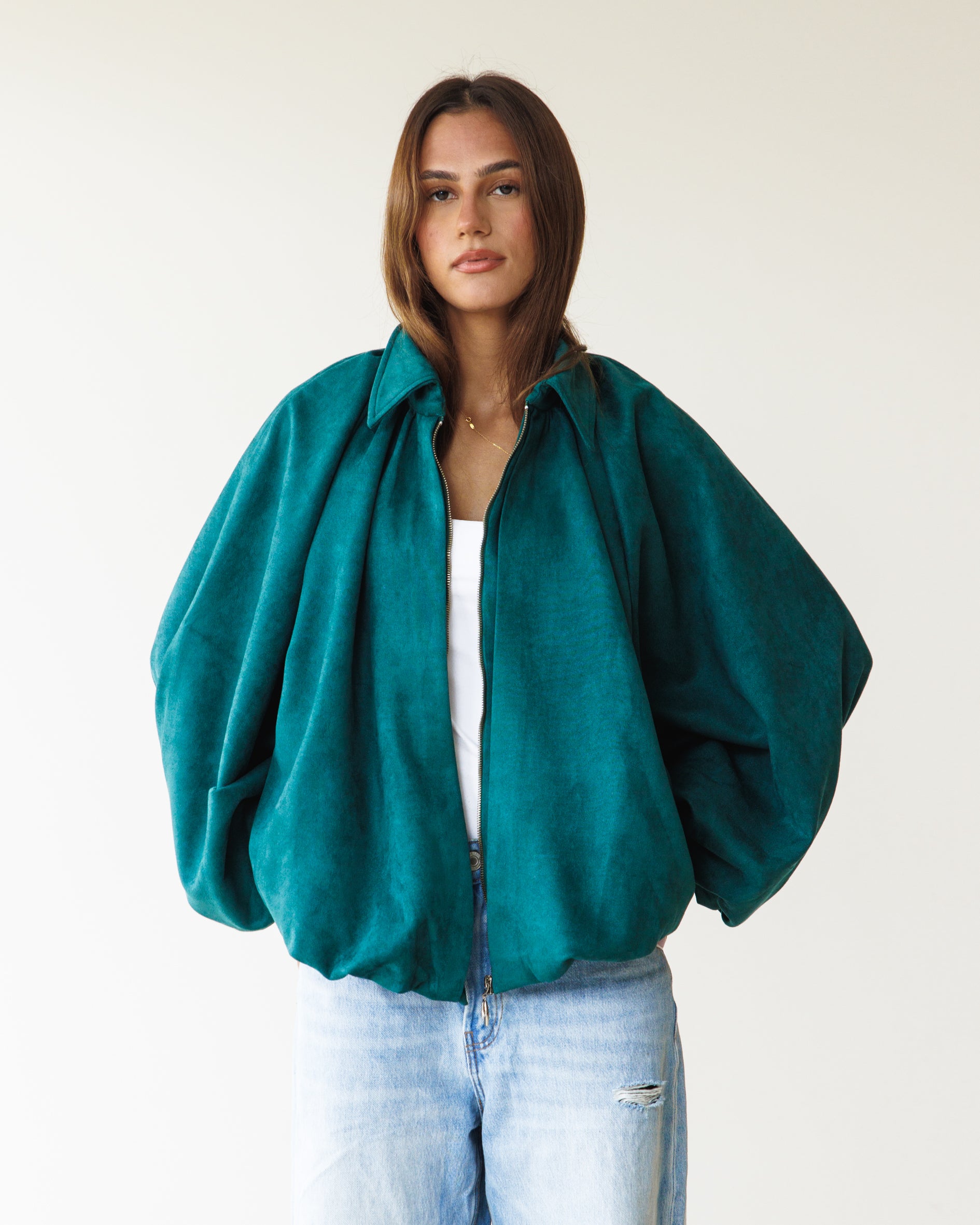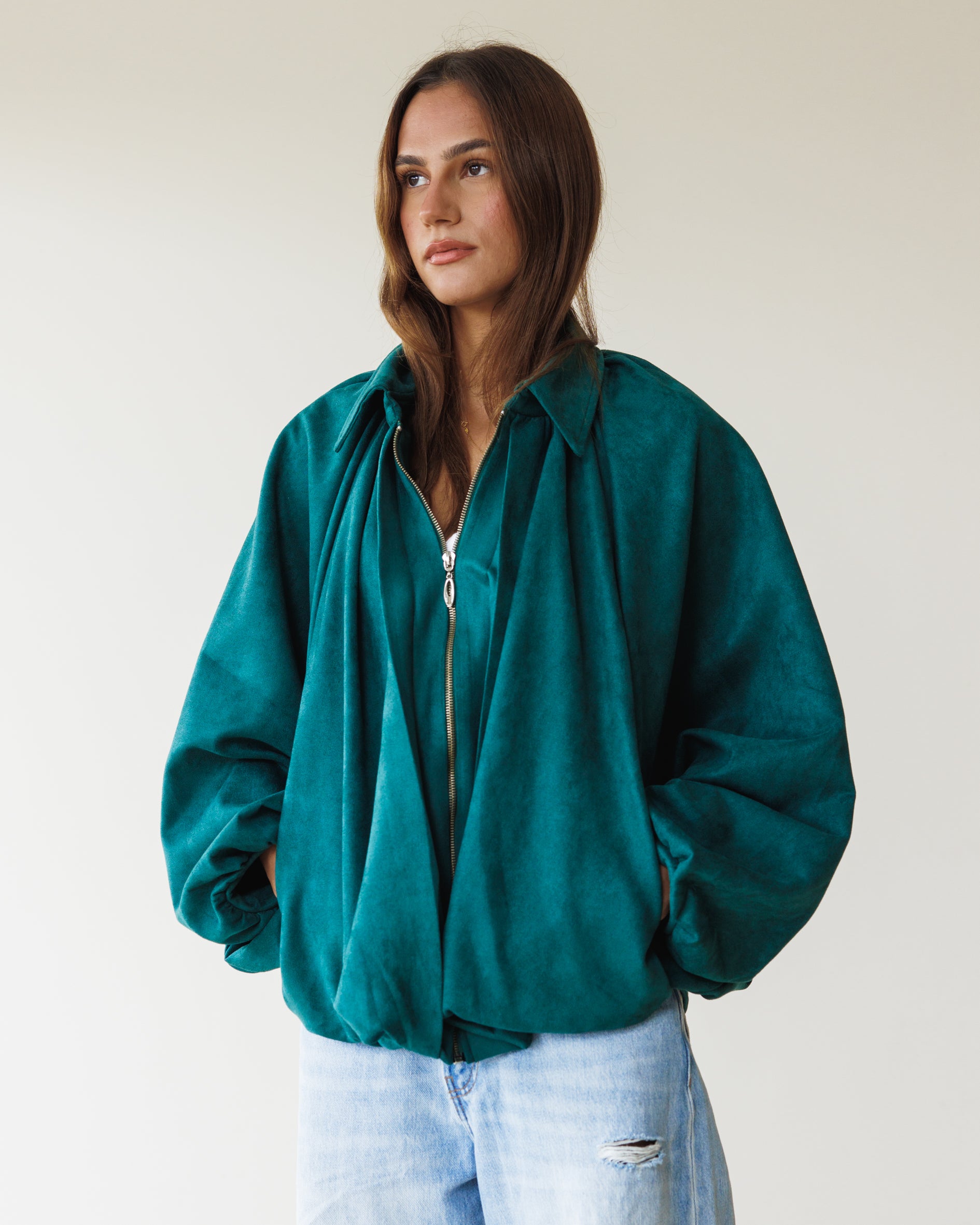 Suede Bomber Jacket - Teal Green